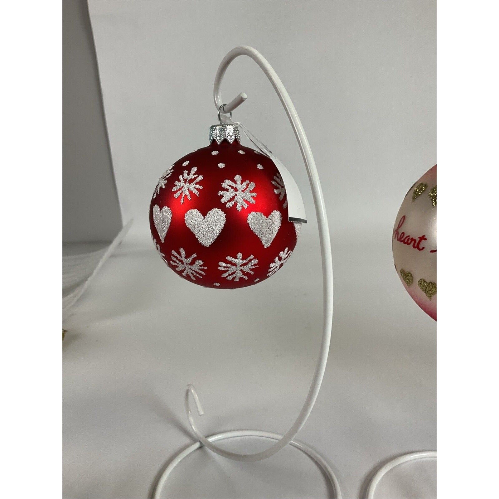 Lot Of 4 Glass Ball Ornaments : Snowy Hearts, San Fran, Miami, Floral Christmas