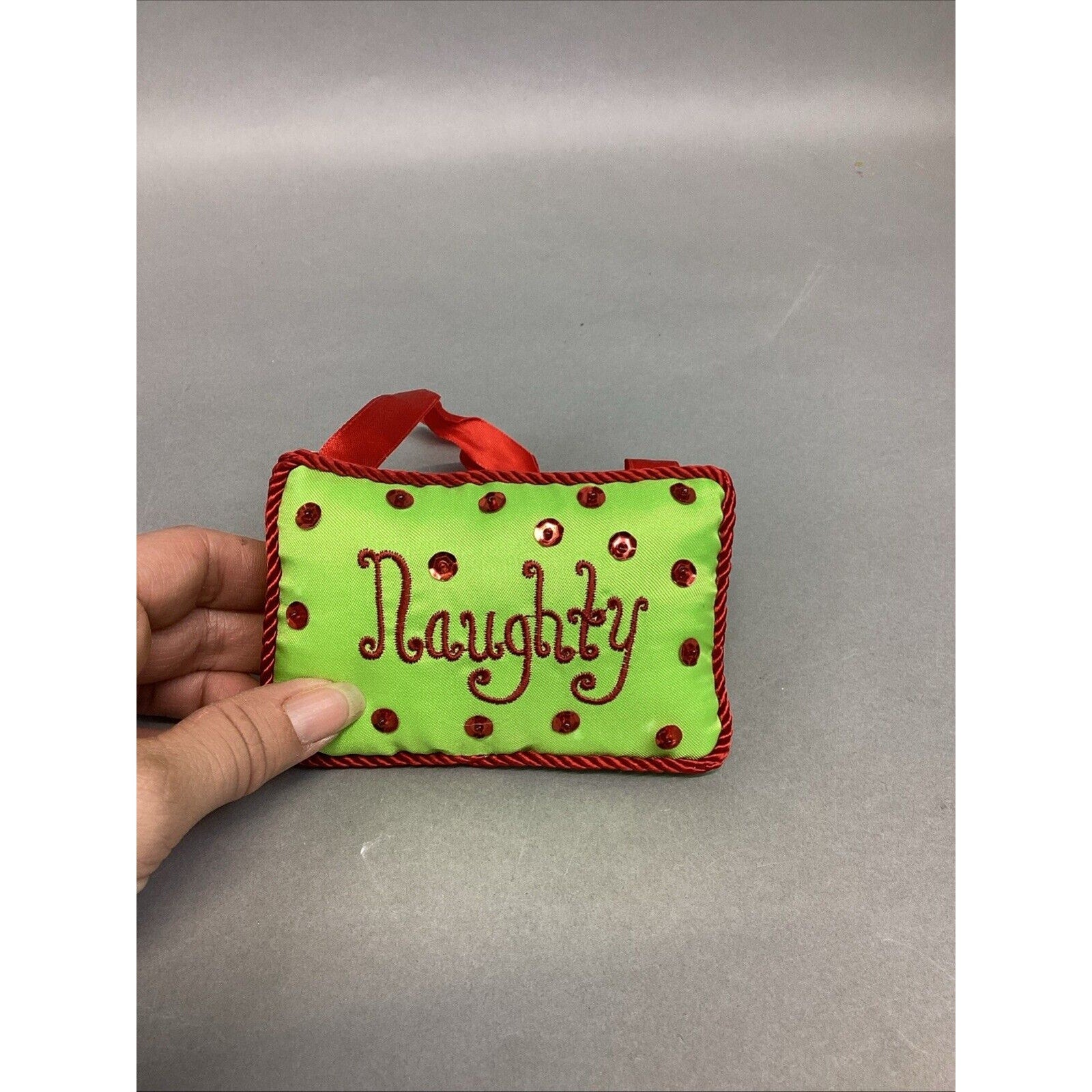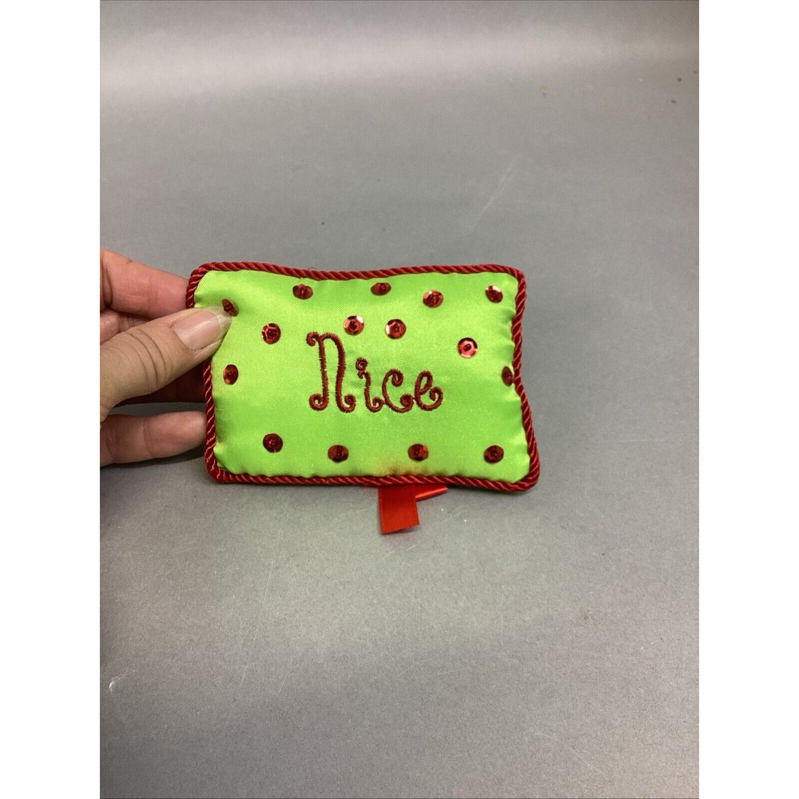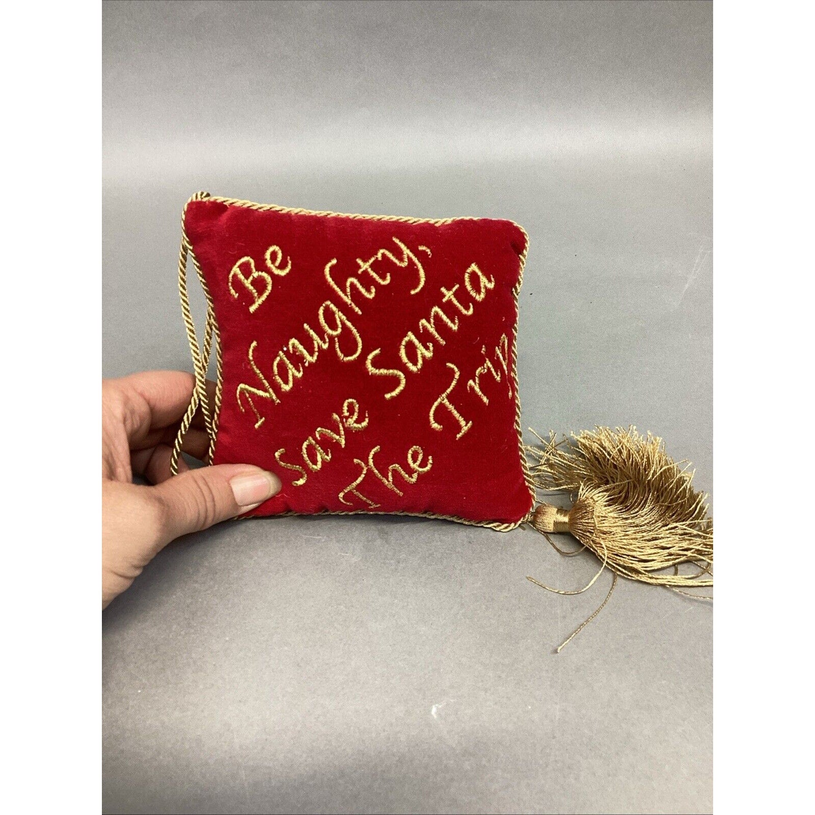 4. Naughty and nice pillow set. Measures 4.5”x3”. Naughty pillow has mini stain on backside.