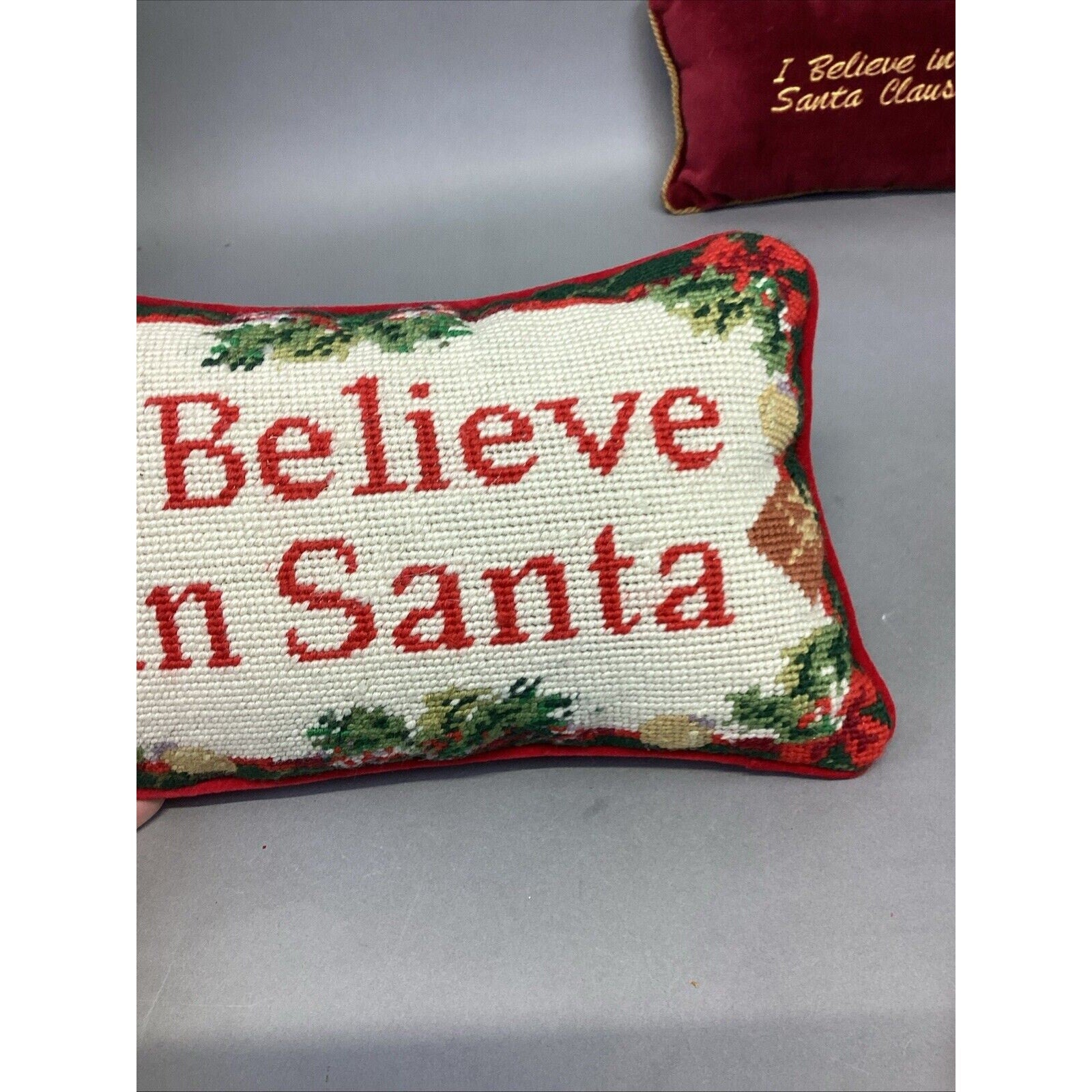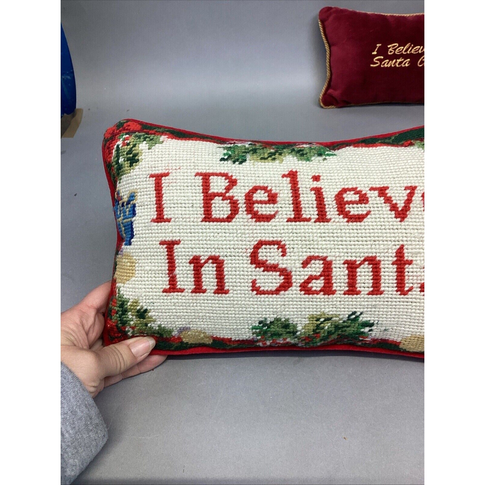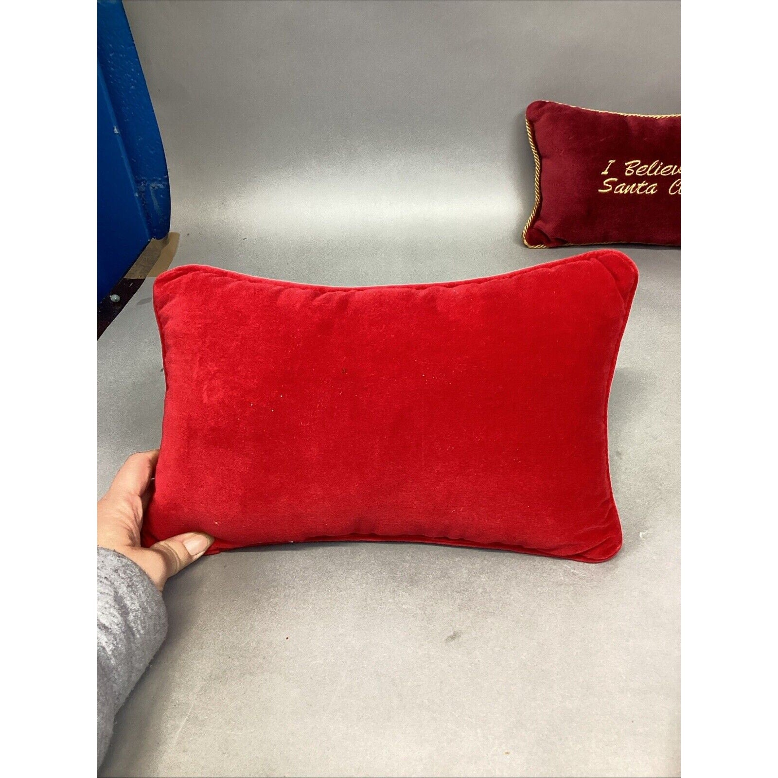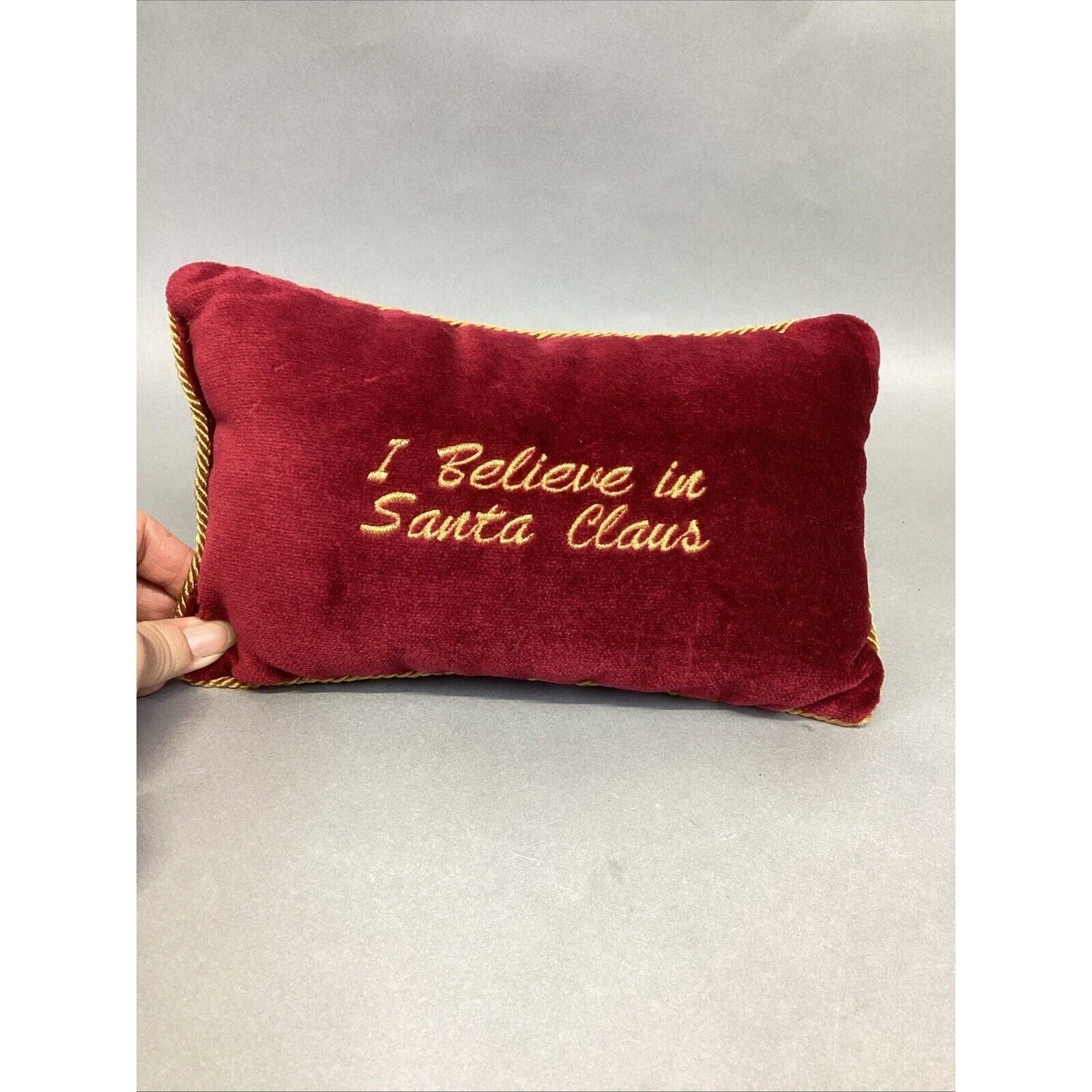 2. I believe in Santa Claus maroon pillow. Measures 10x5.5”