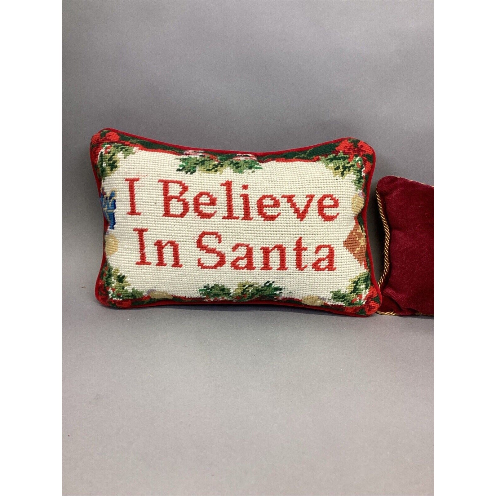 1. Cross stitch I believe in Santa pillow. Measures 11x7