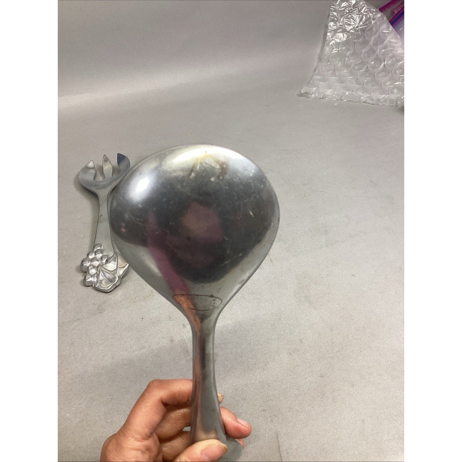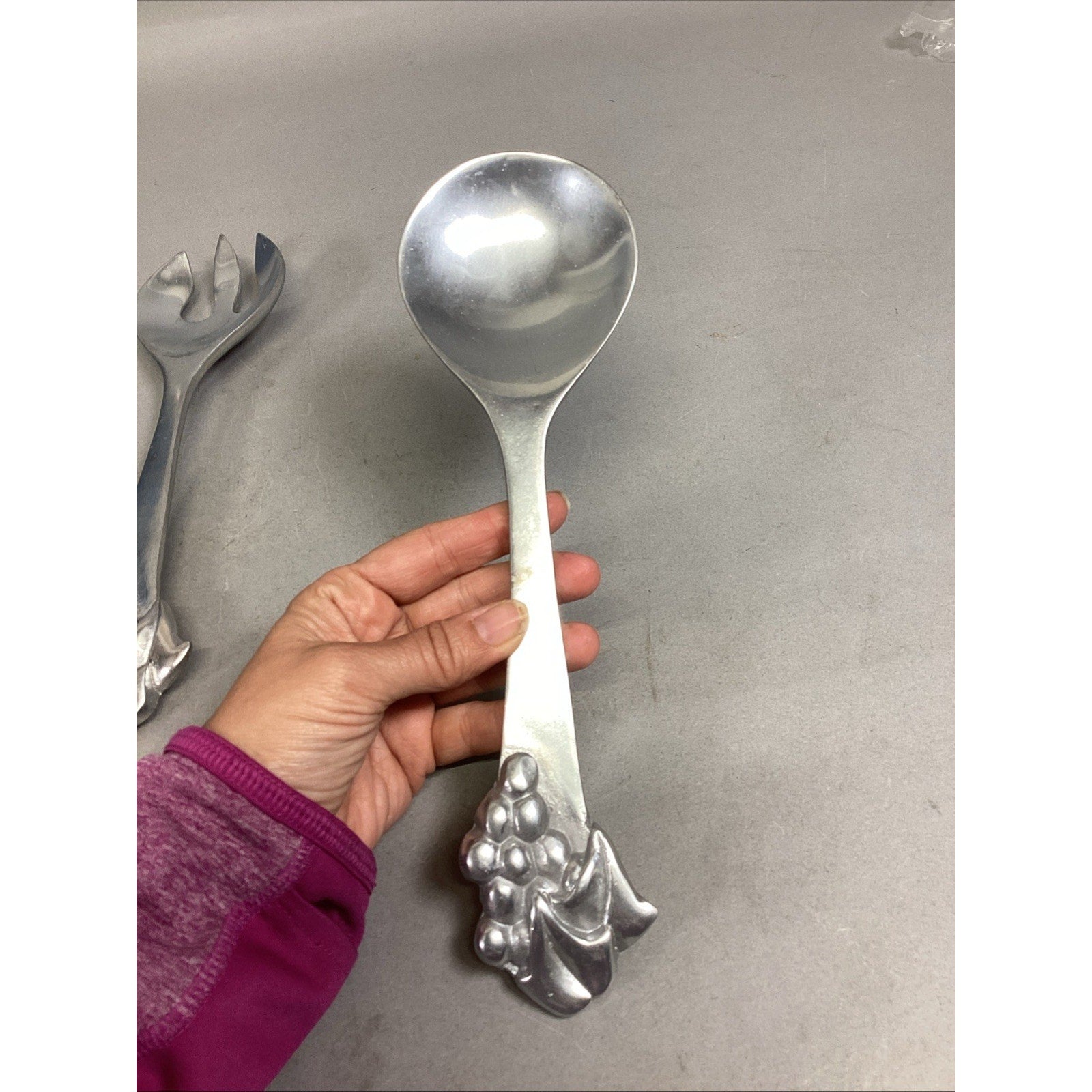 Mariposa Pewter Salad Serving Set Fork Spoon Grapes Grapevine Utensils 1990
