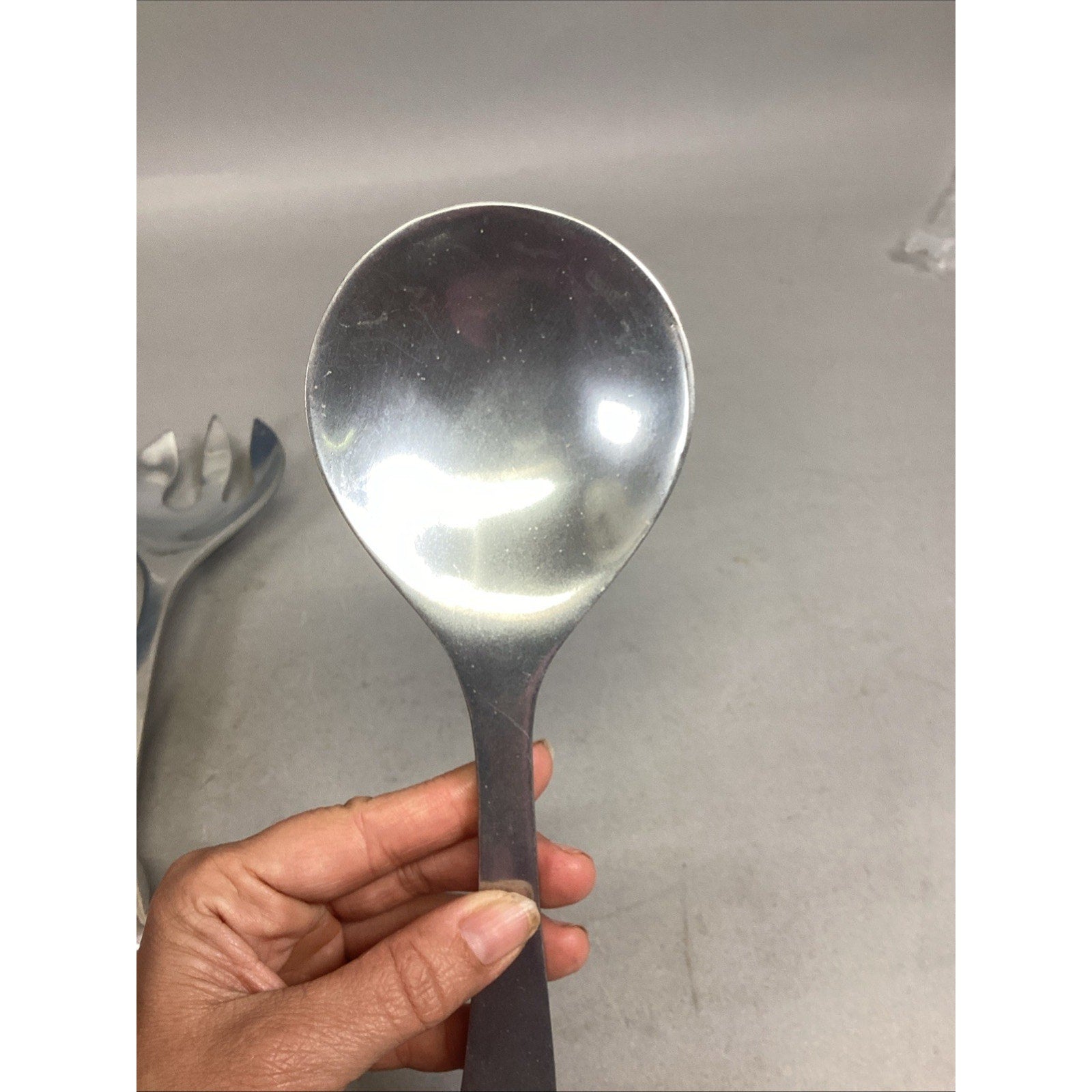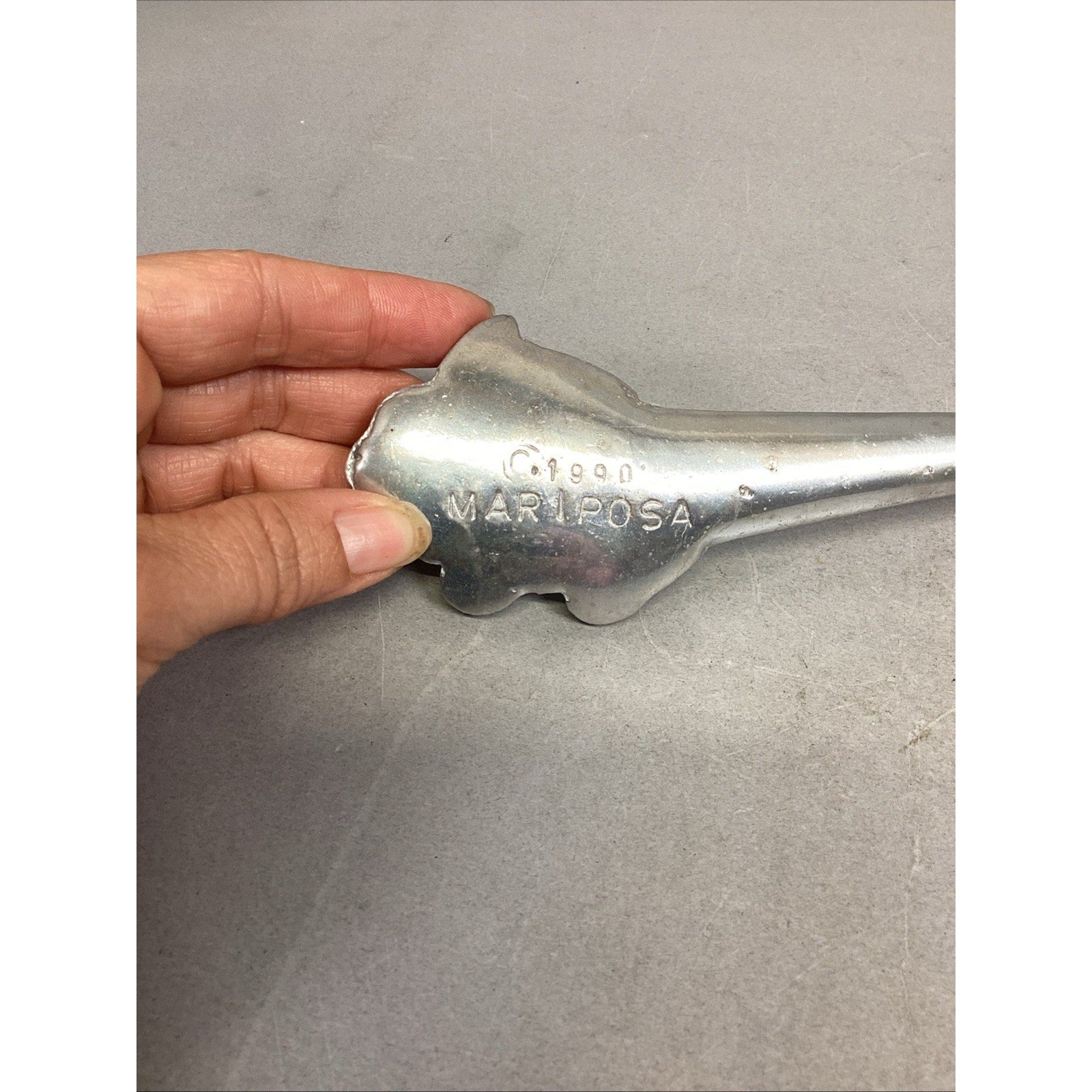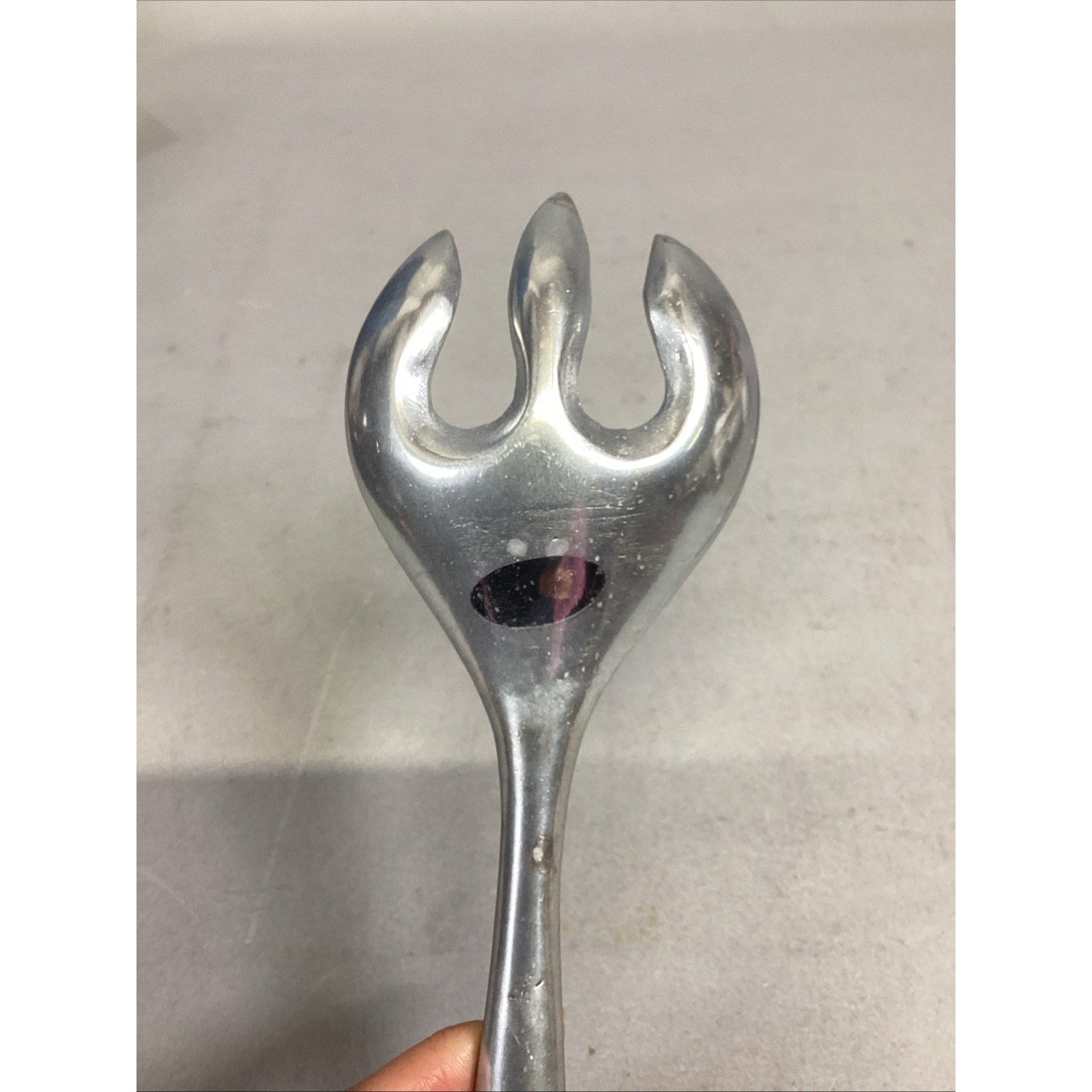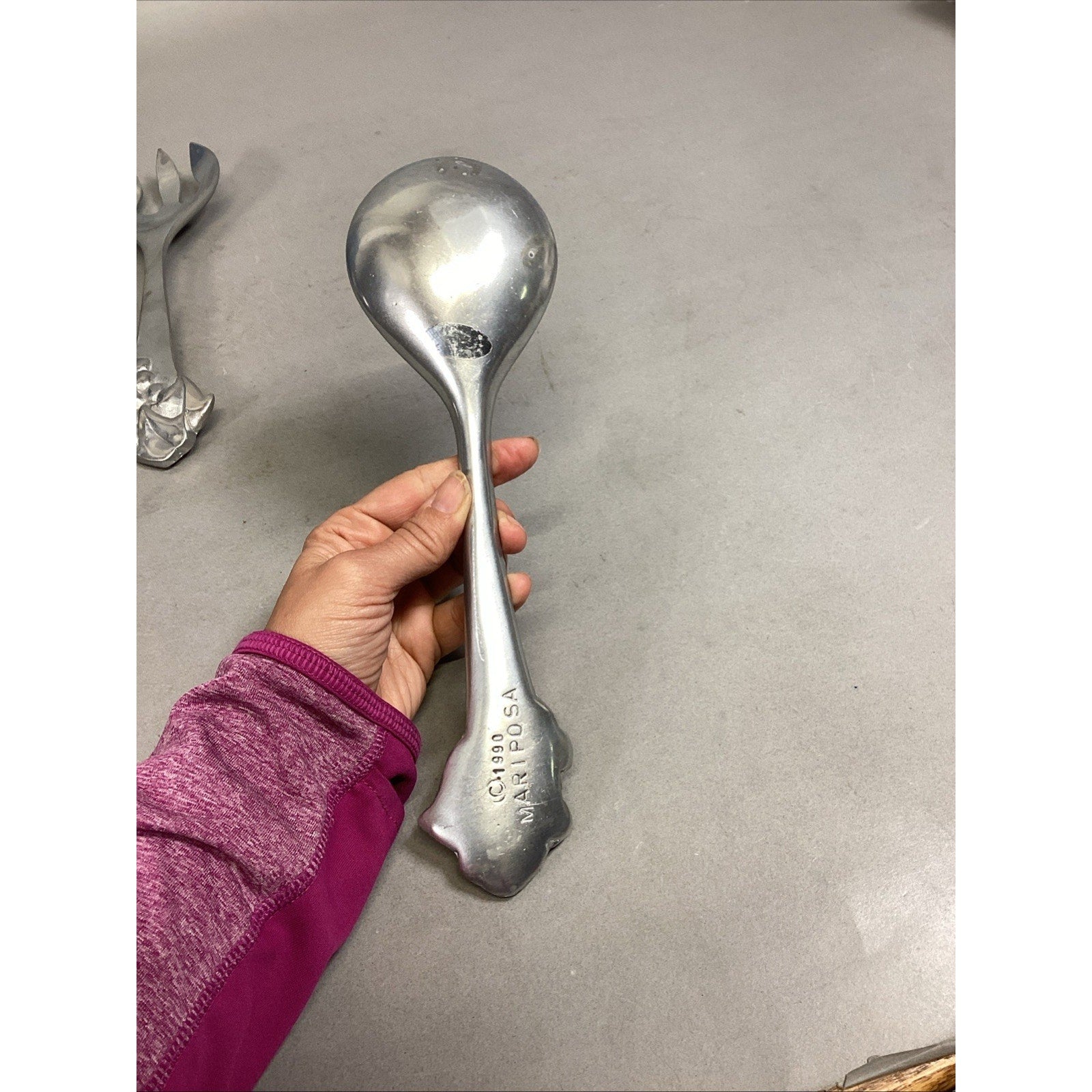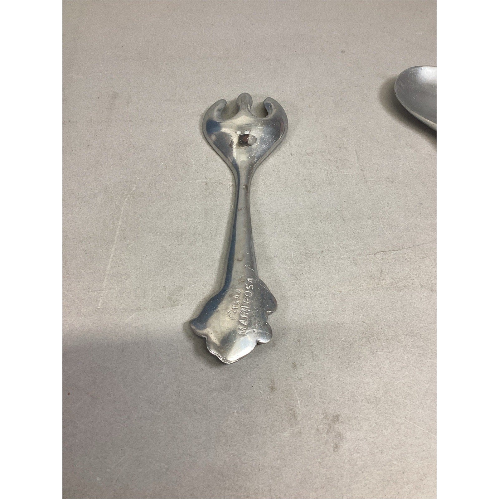 Mariposa Pewter Salad Serving Set Fork Spoon Grapes Grapevine Utensils 1990. In used condition. Each has a few scratches and marks on it. The fork measures 10.75” long. The spoon measures 10.5” long.