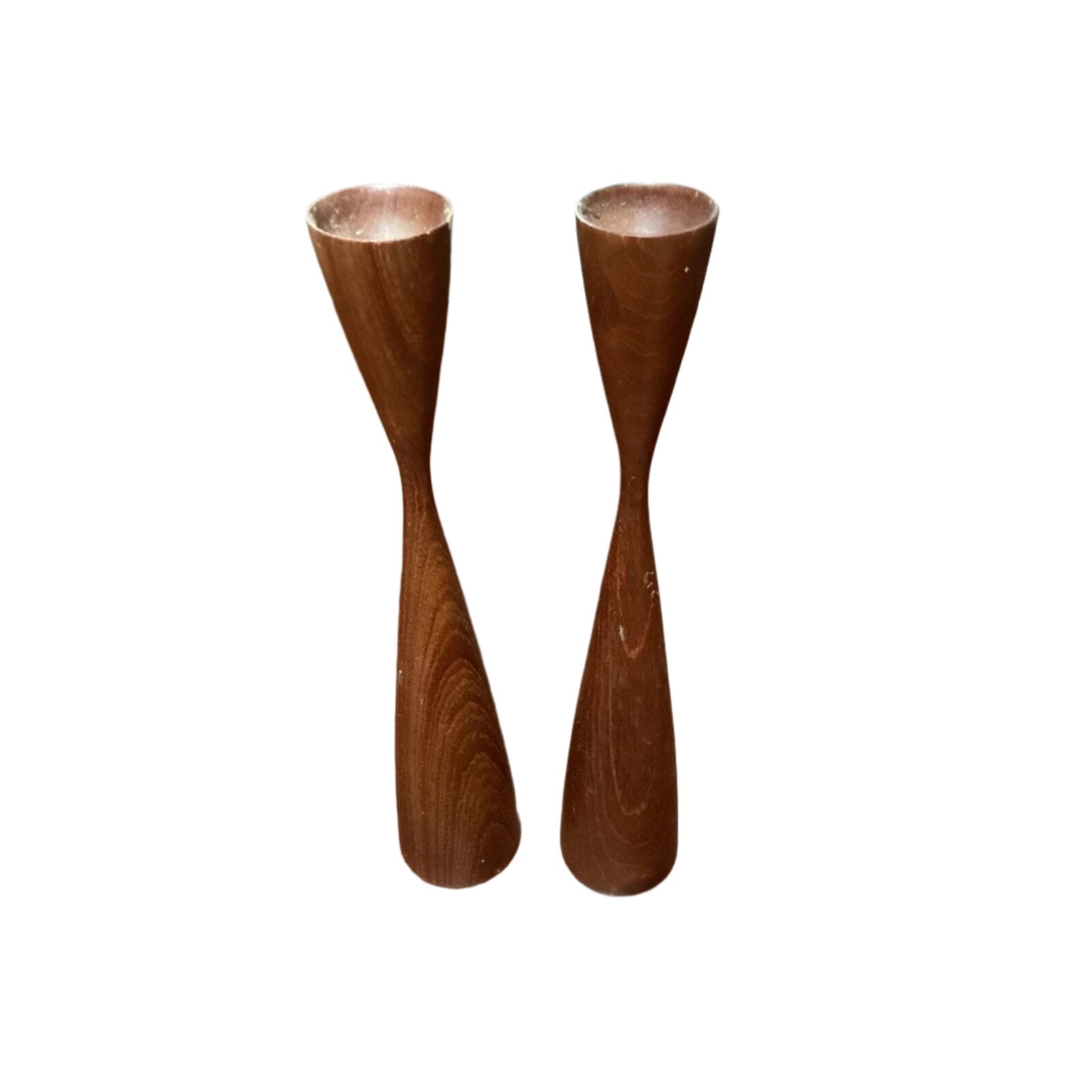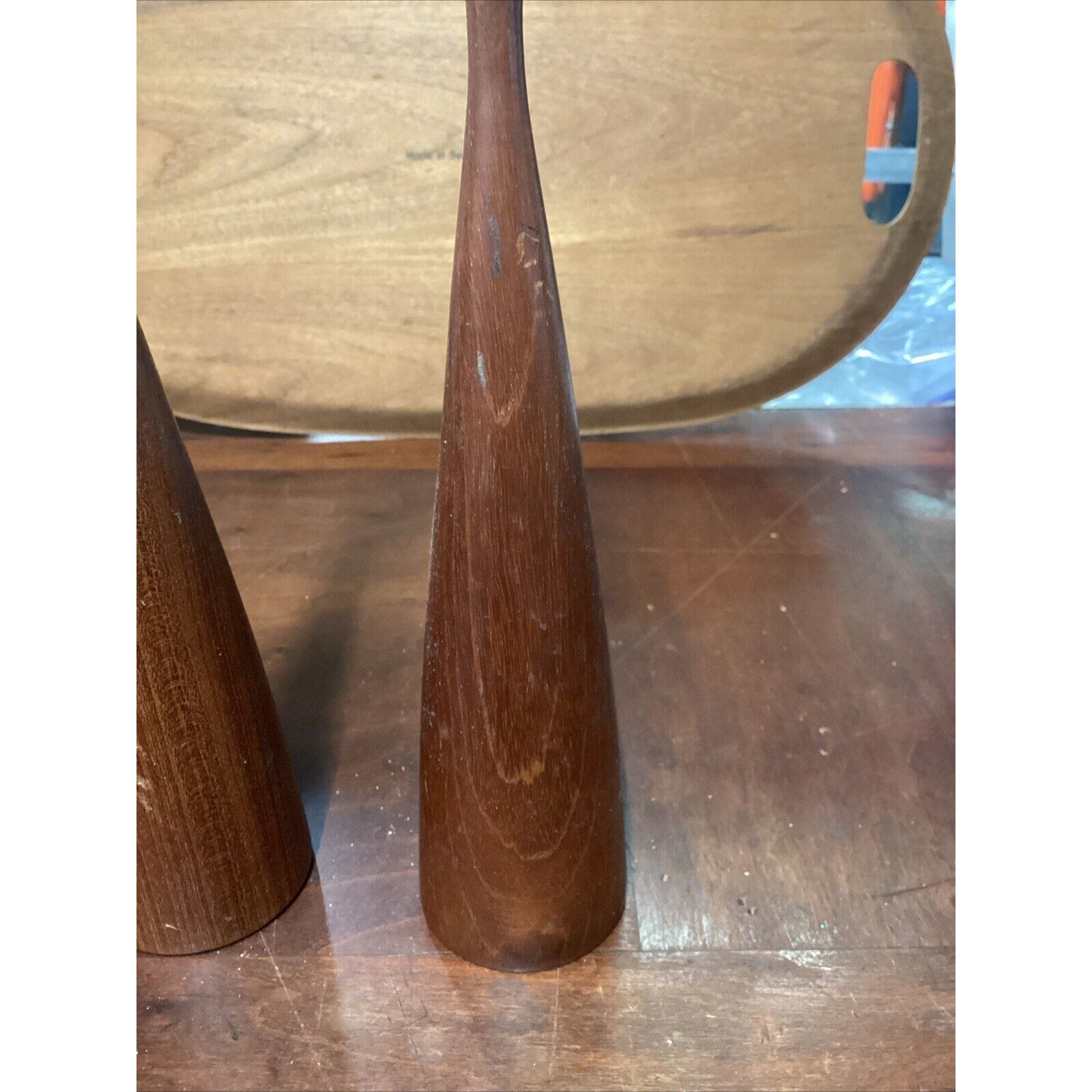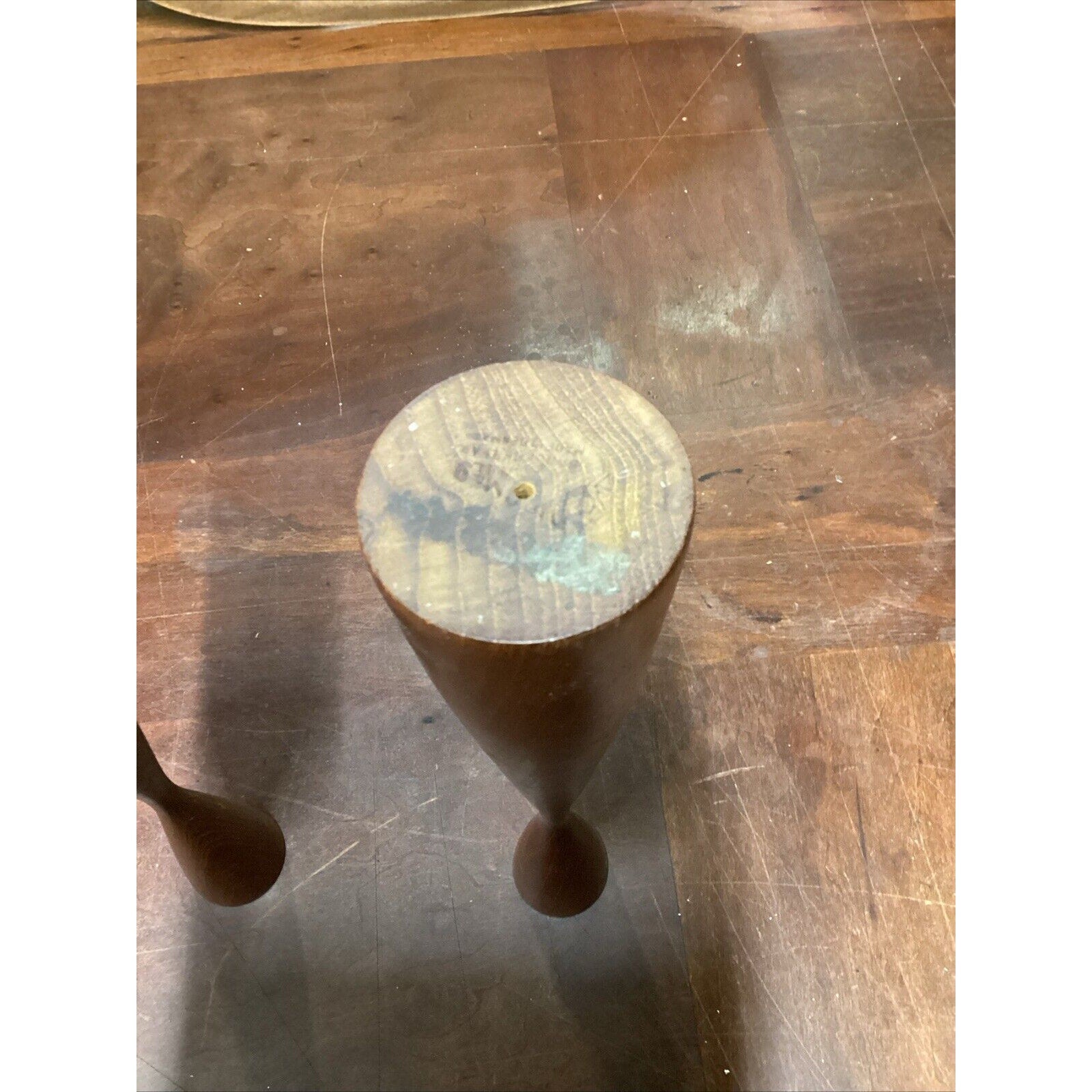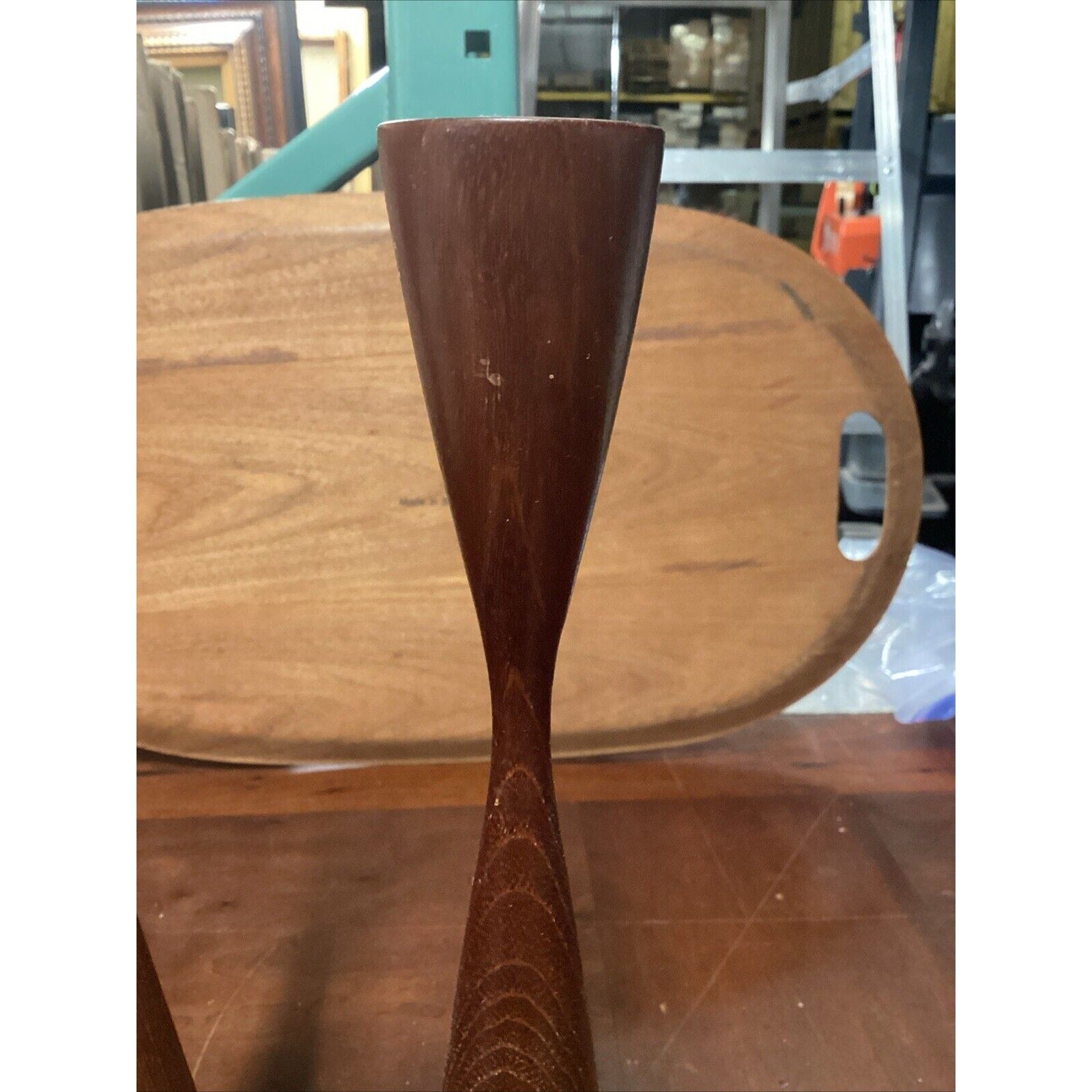 MCM Candle Stick Holders Wooden Pair Danish 12.5”