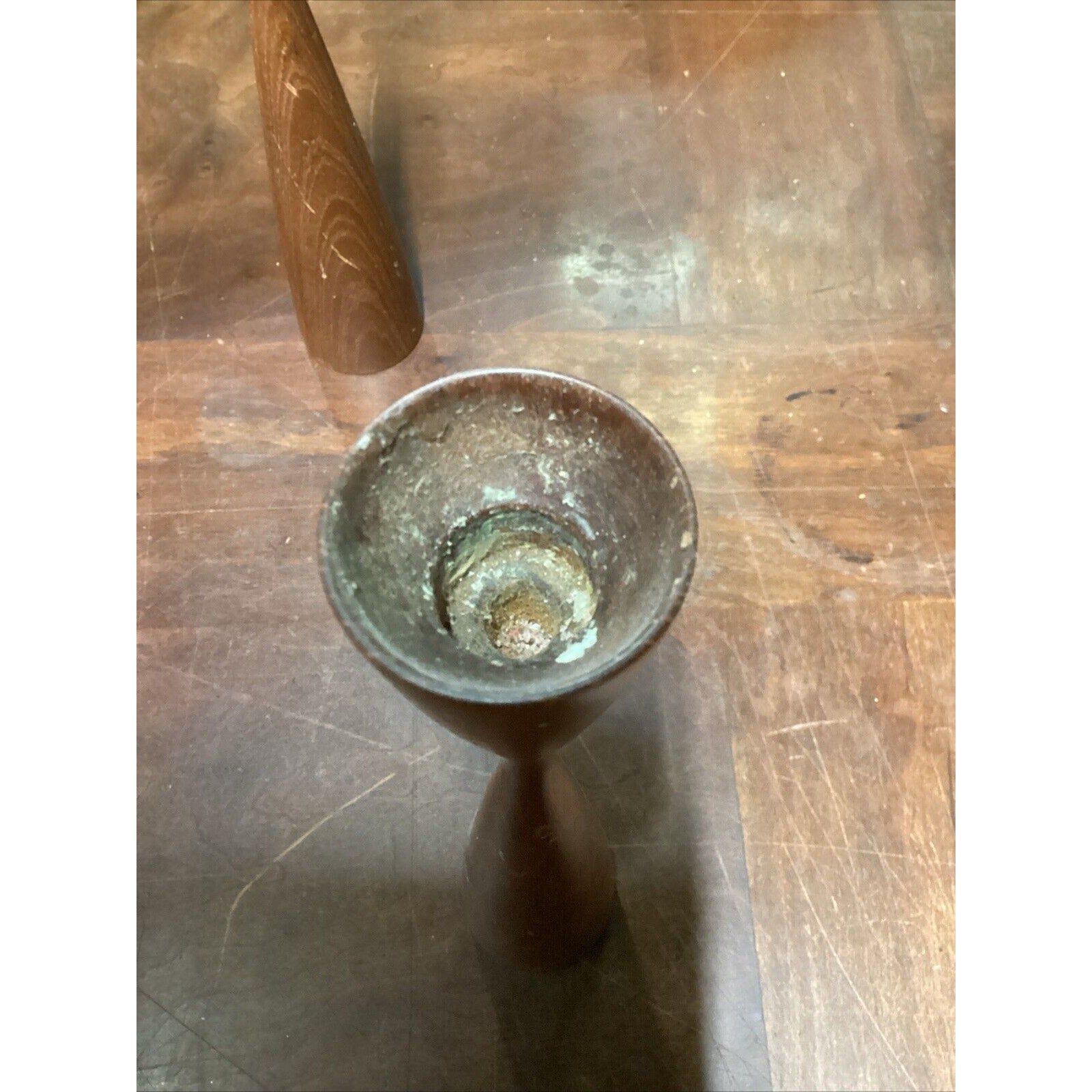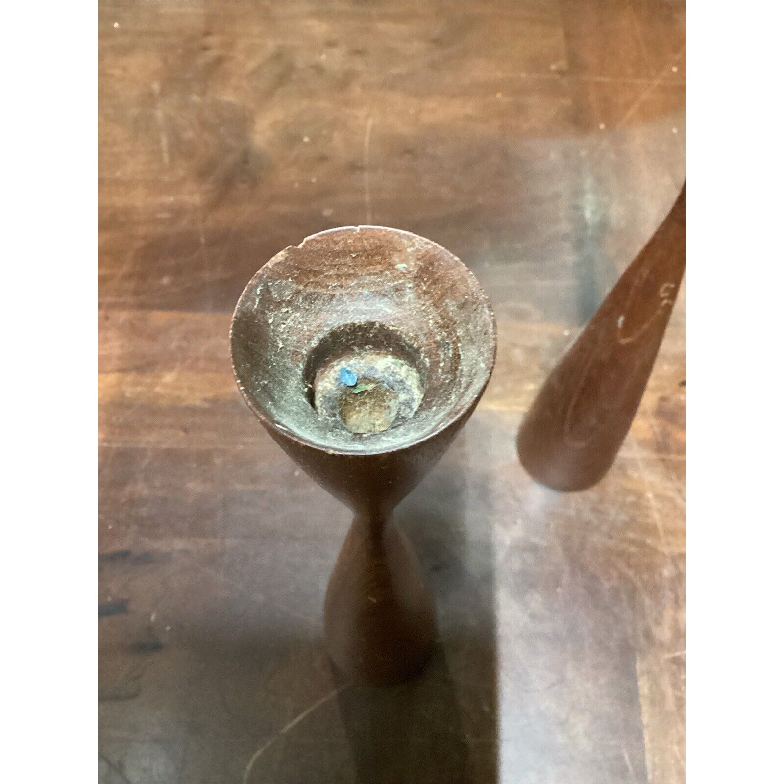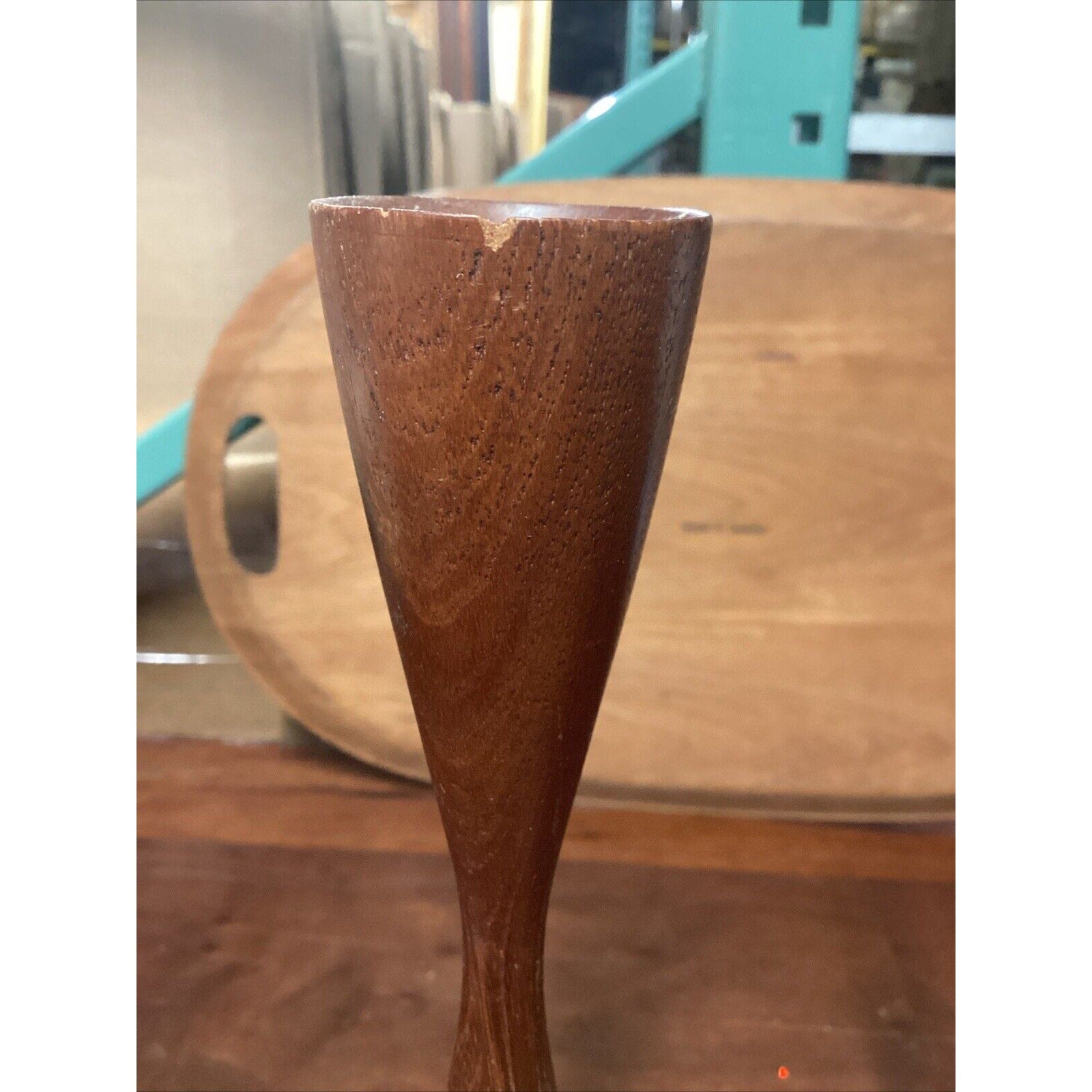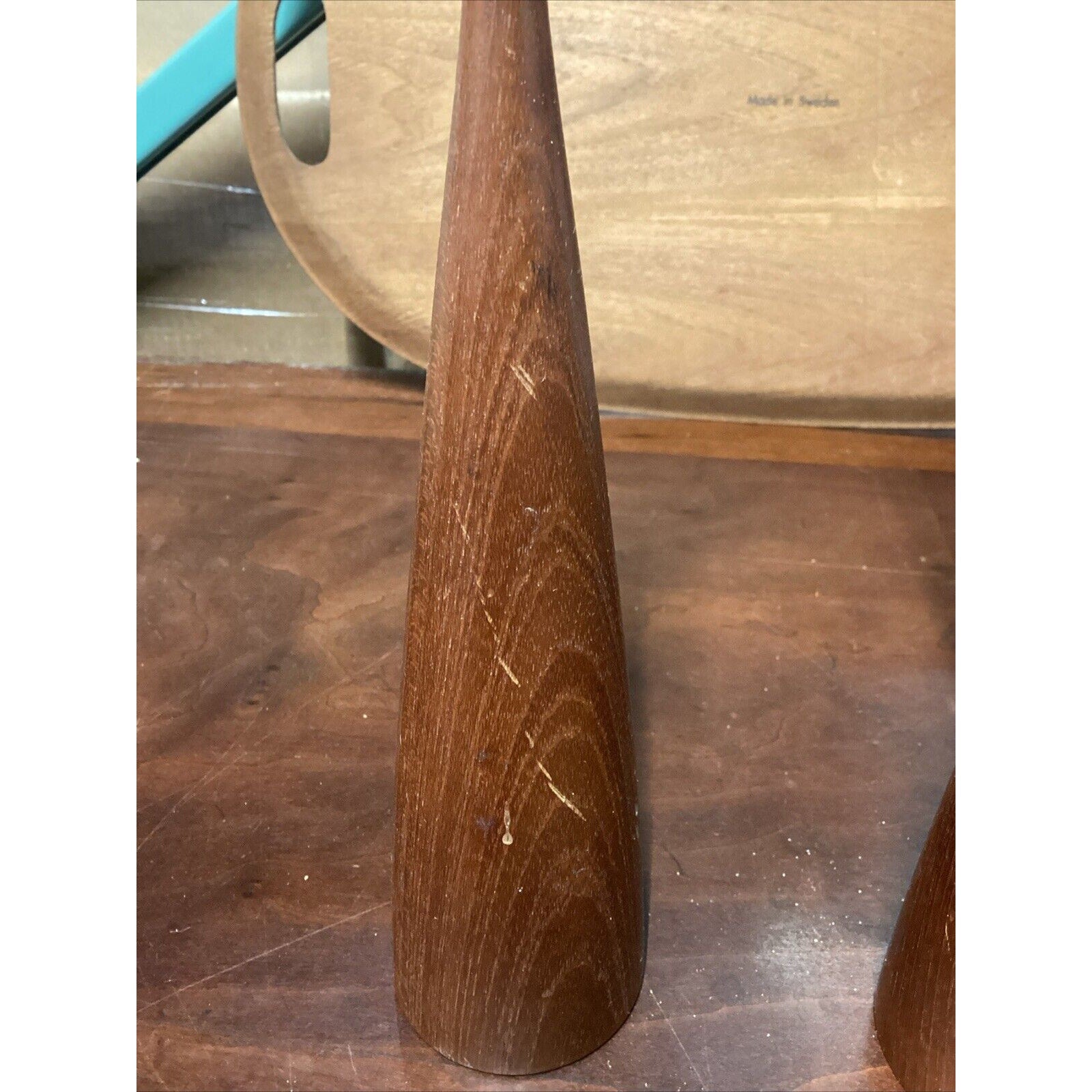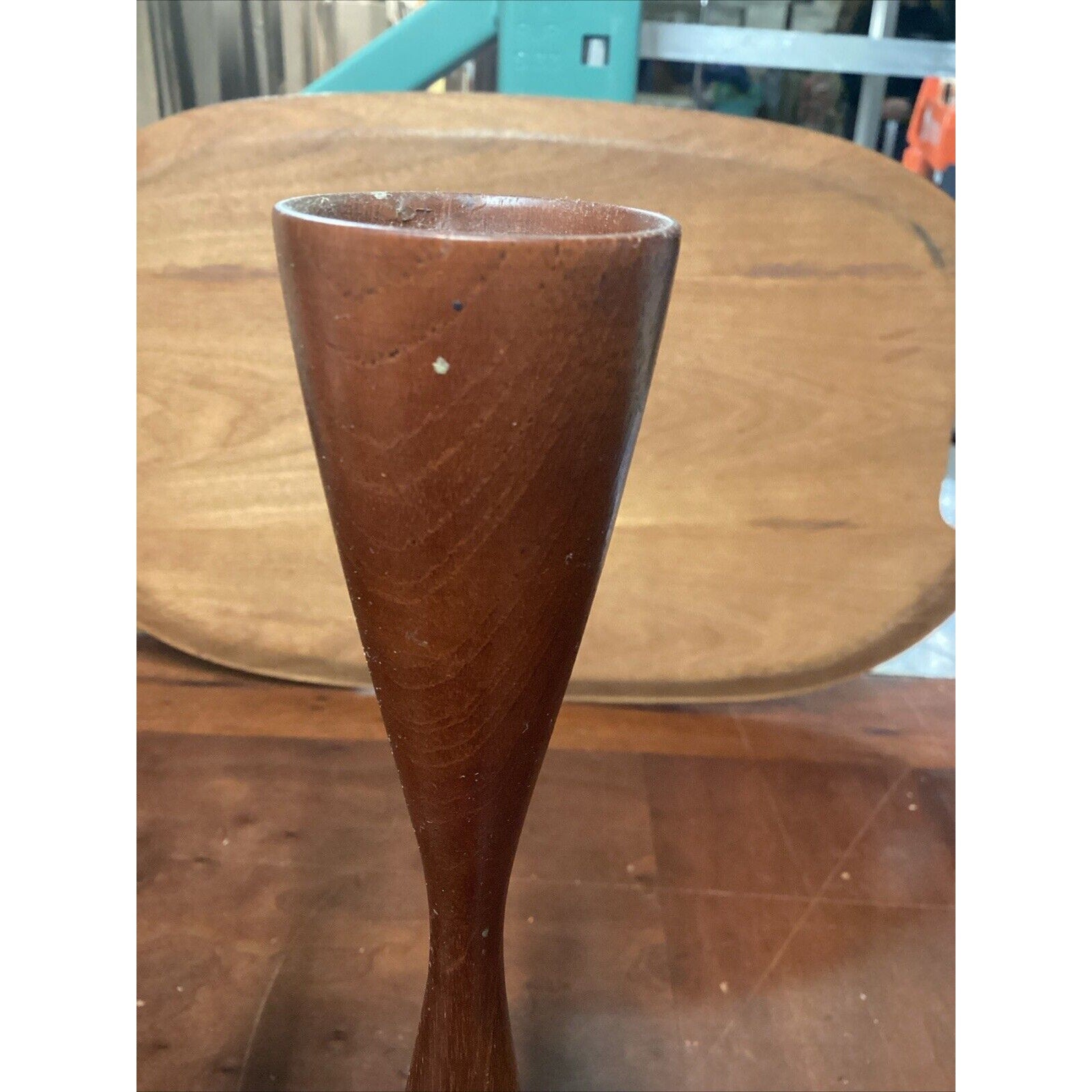 MCM Candle Stick Holders Wooden Pair Danish 12.5”
