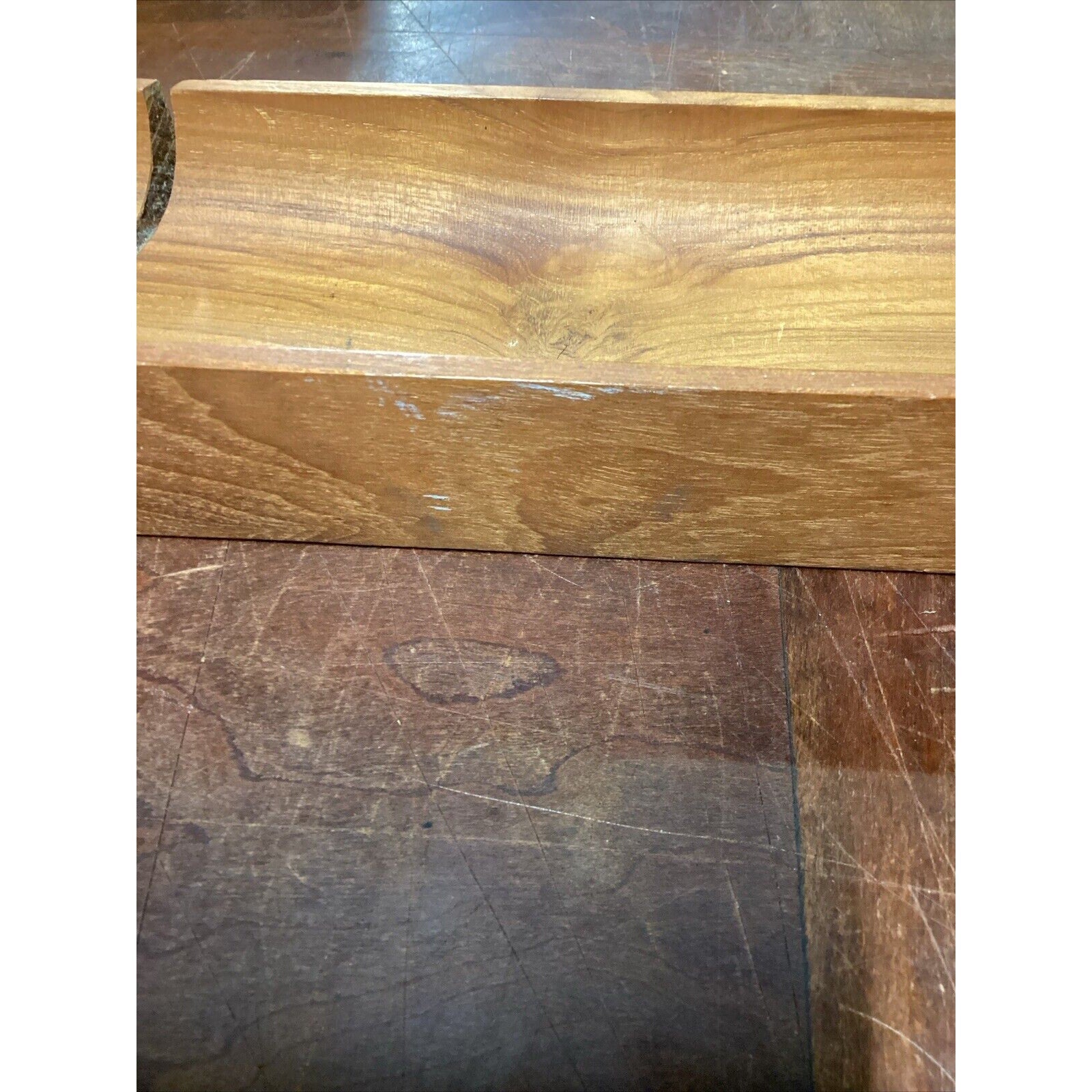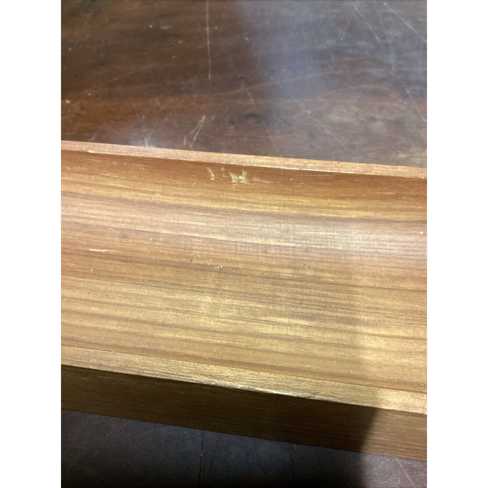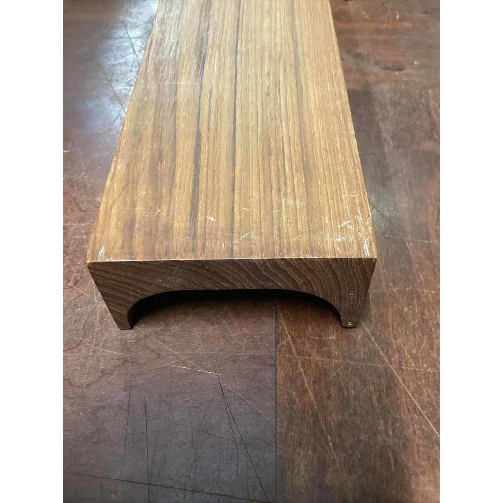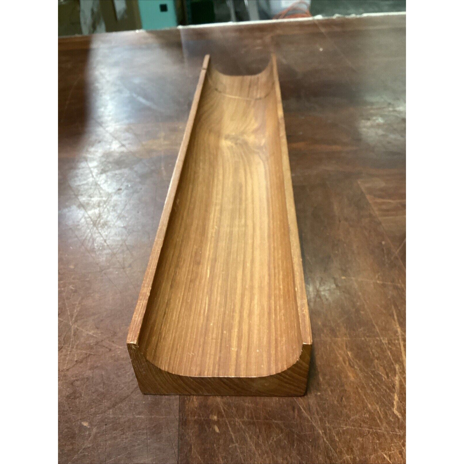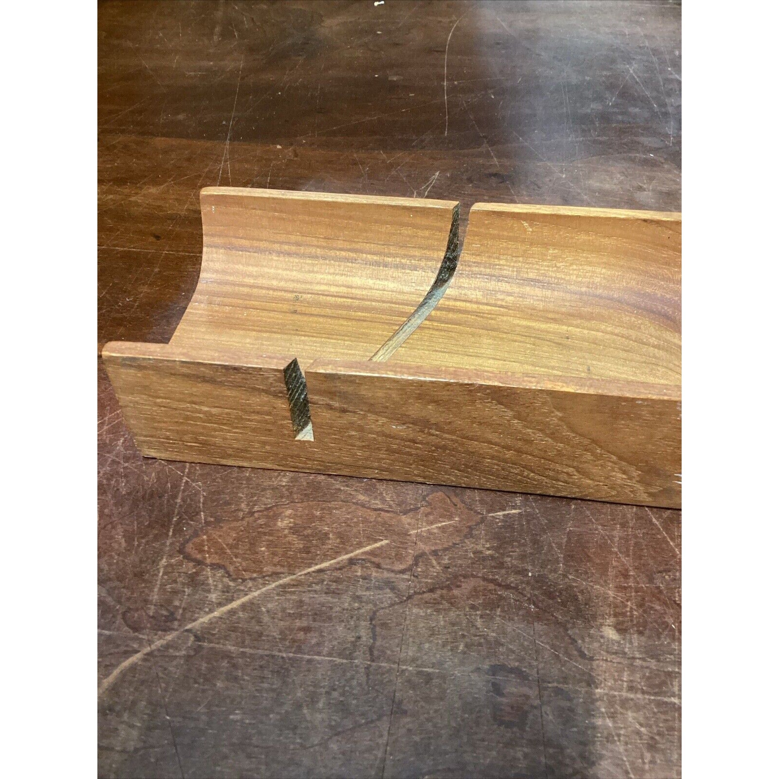 You are bidding on a solid teak French bread holder. In good condition for its age. It does have a few marks, stains, spots in the wood from normal usage. This measures 2”Hx17.5”Lx3.5”W