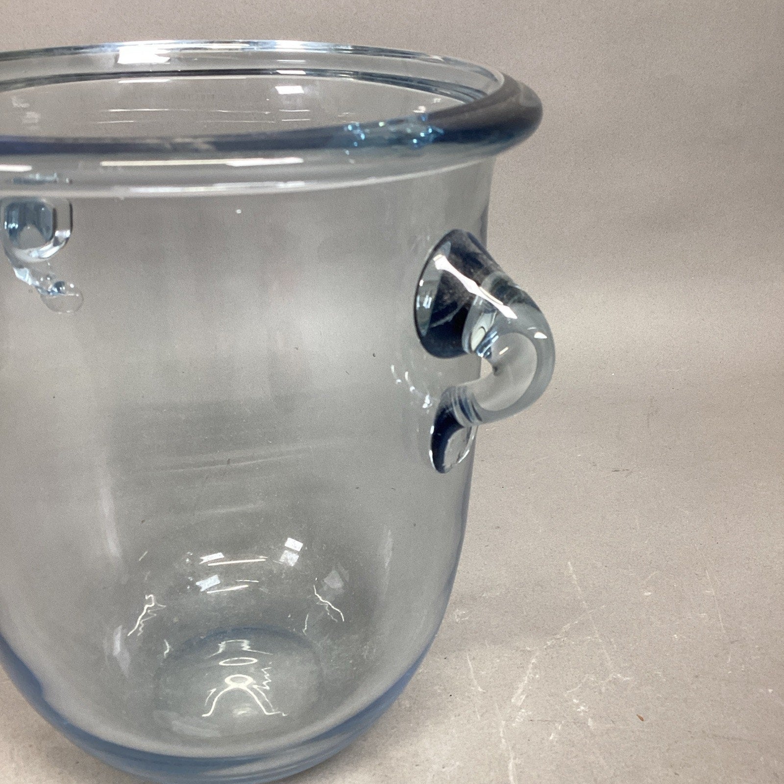 Mid Century Modern Blue Glass Ice Bucket With 2 Handles - 8.25”Hx7”D
