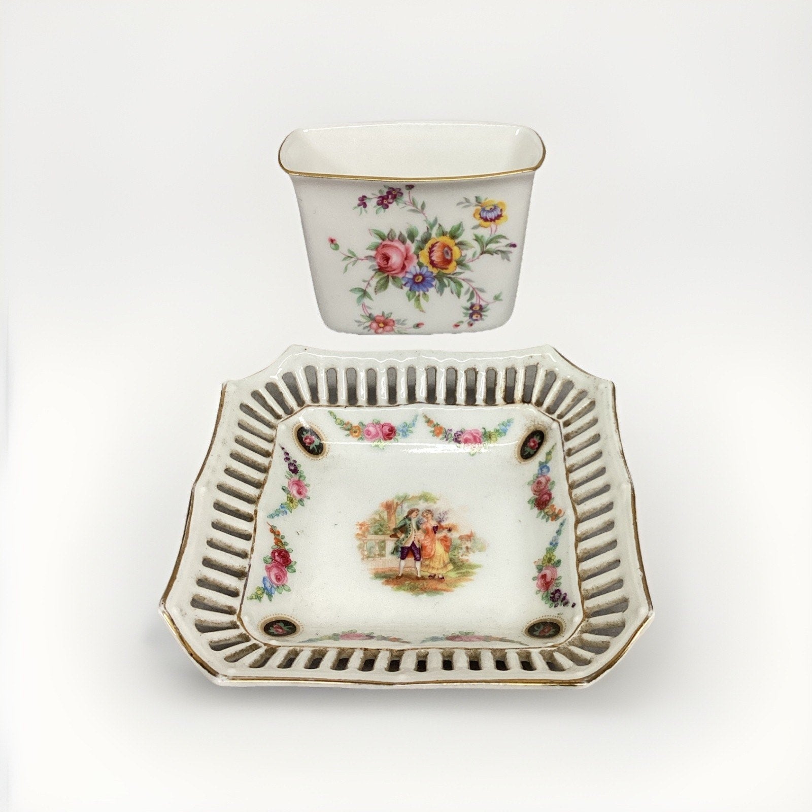 Minton Floral Toothpick Holder & Bavaria Schumann Reticulated Trinket Candy Dish