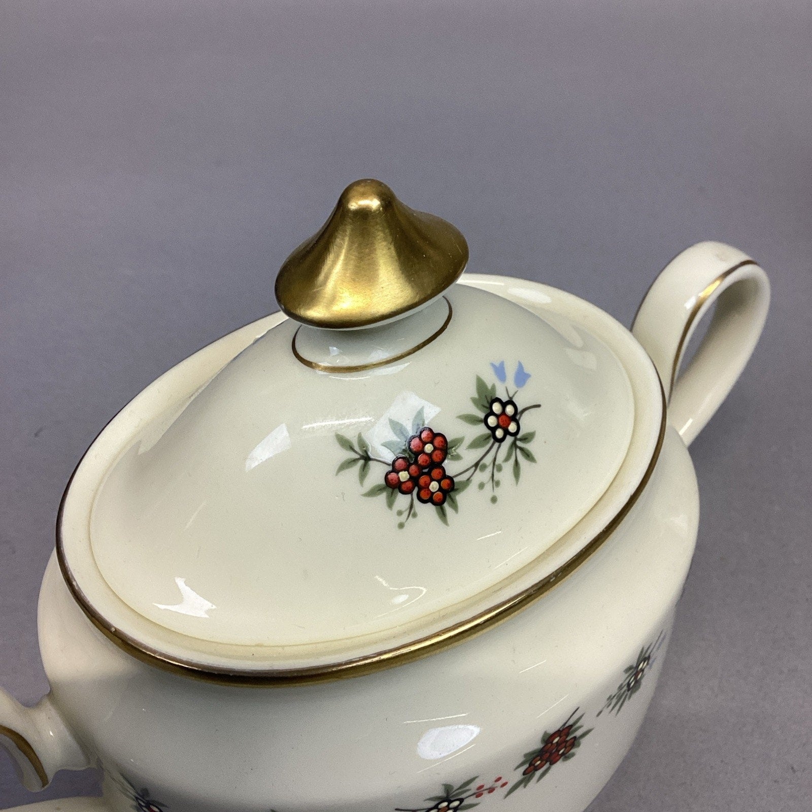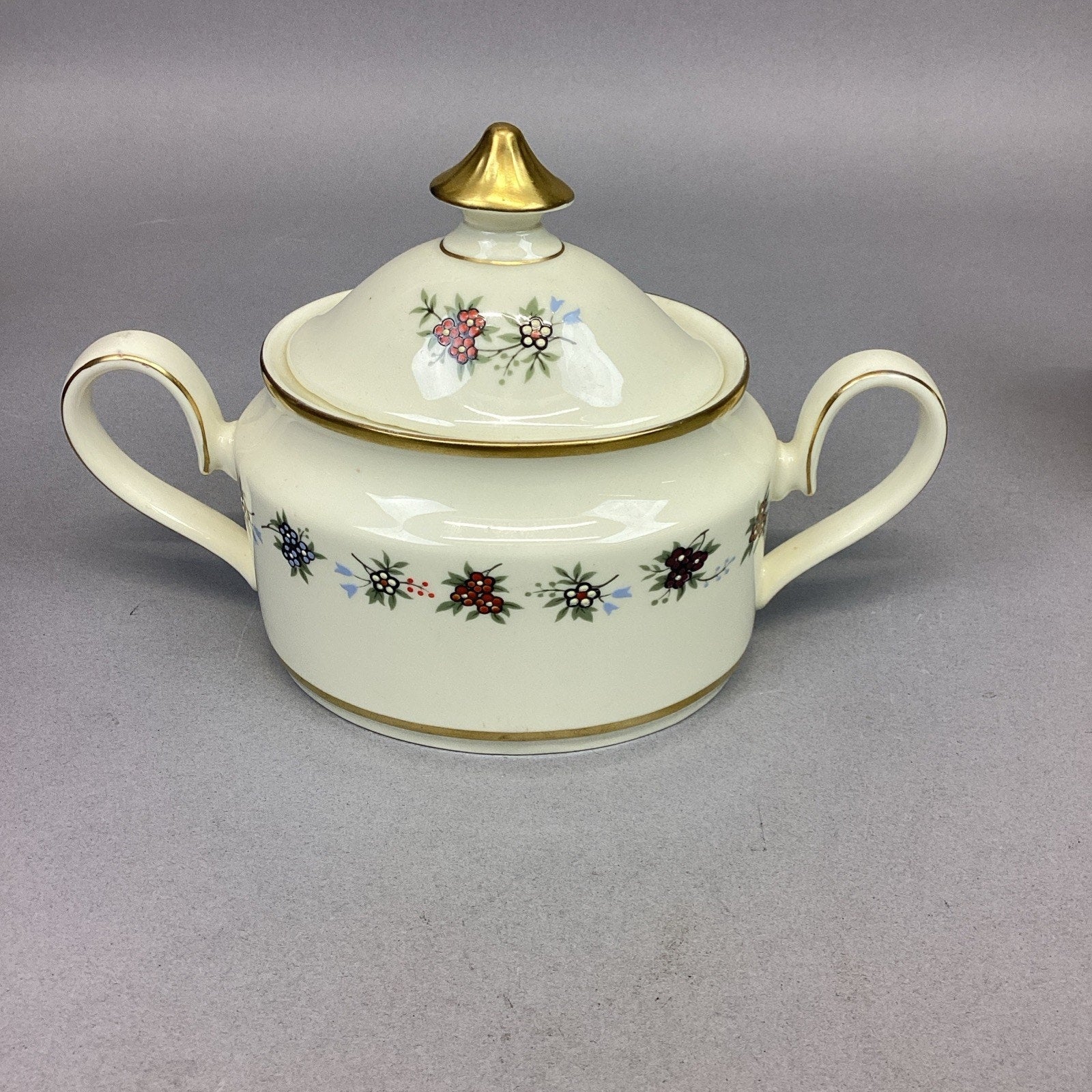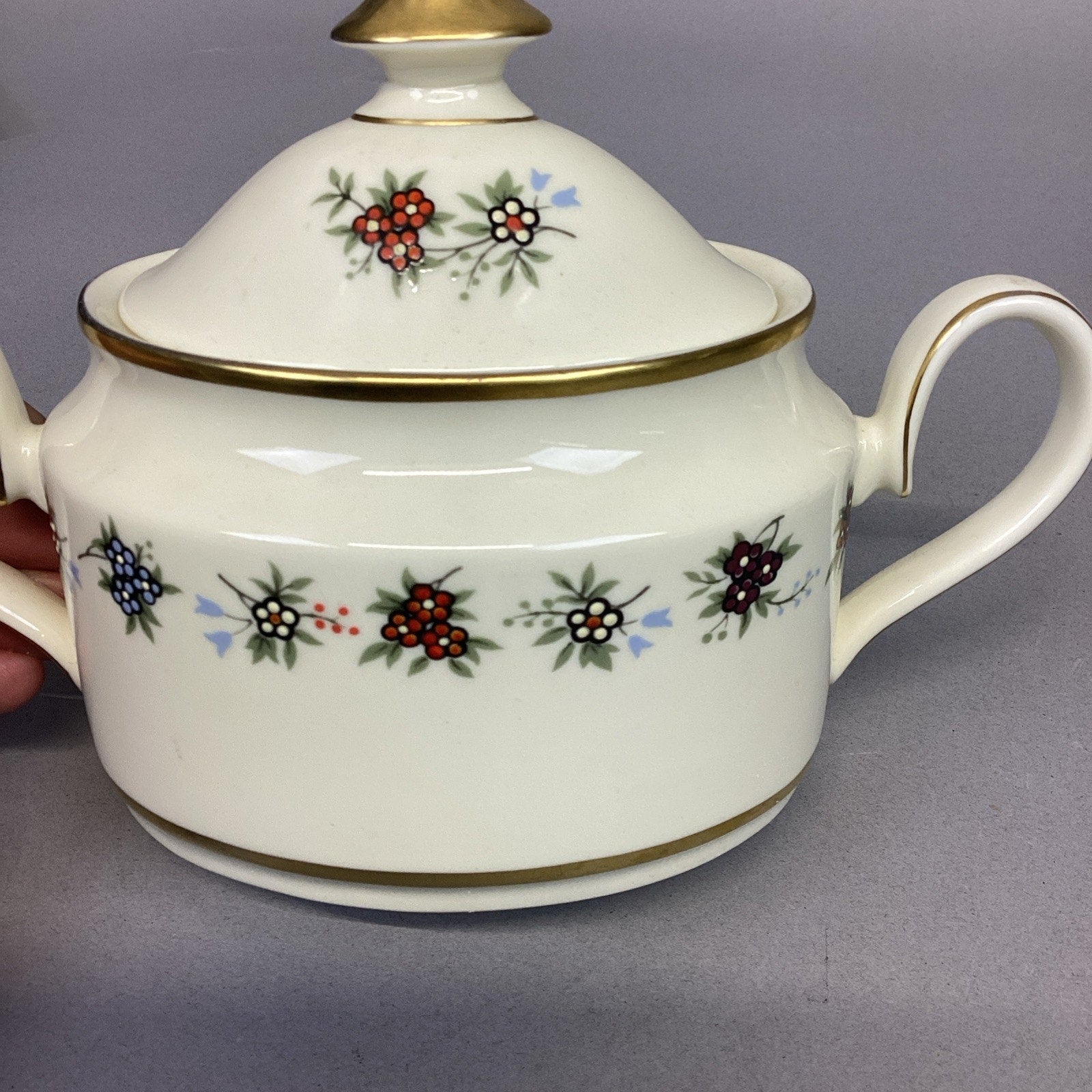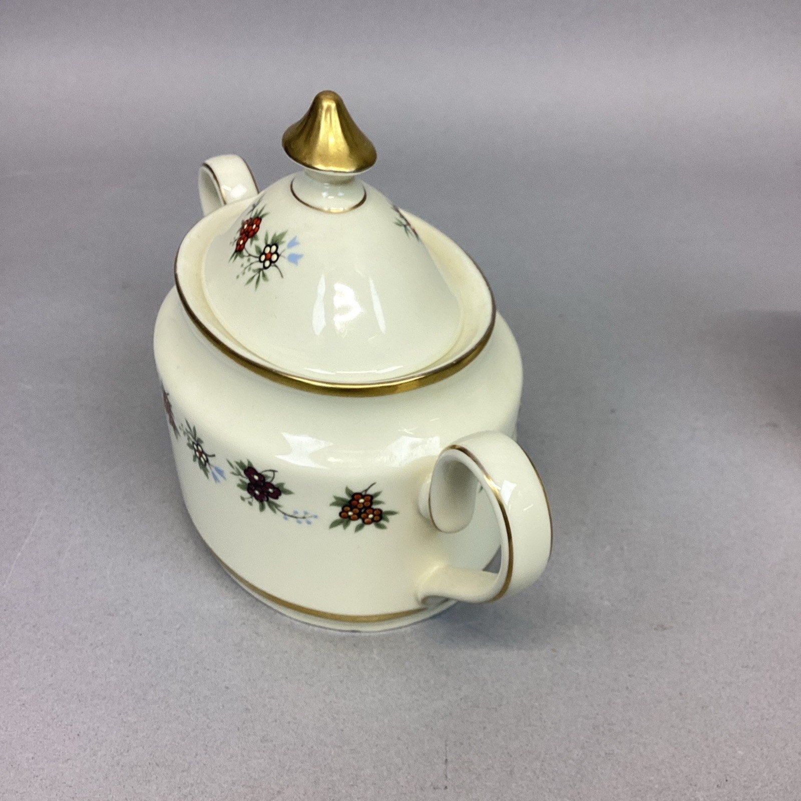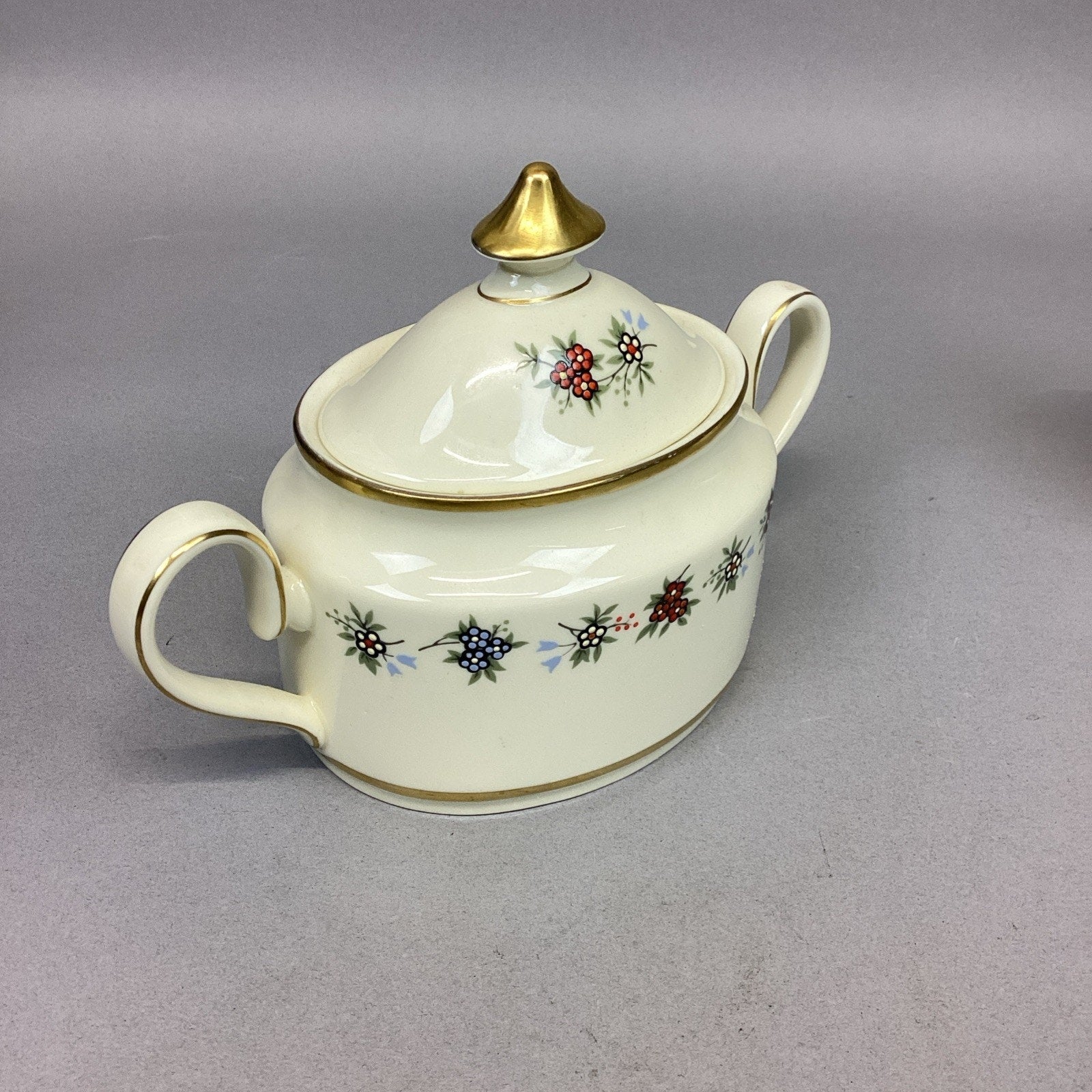 The sugar bowl measures 5”Hx7.25”Lx3.25”D and is 2.5” deep
