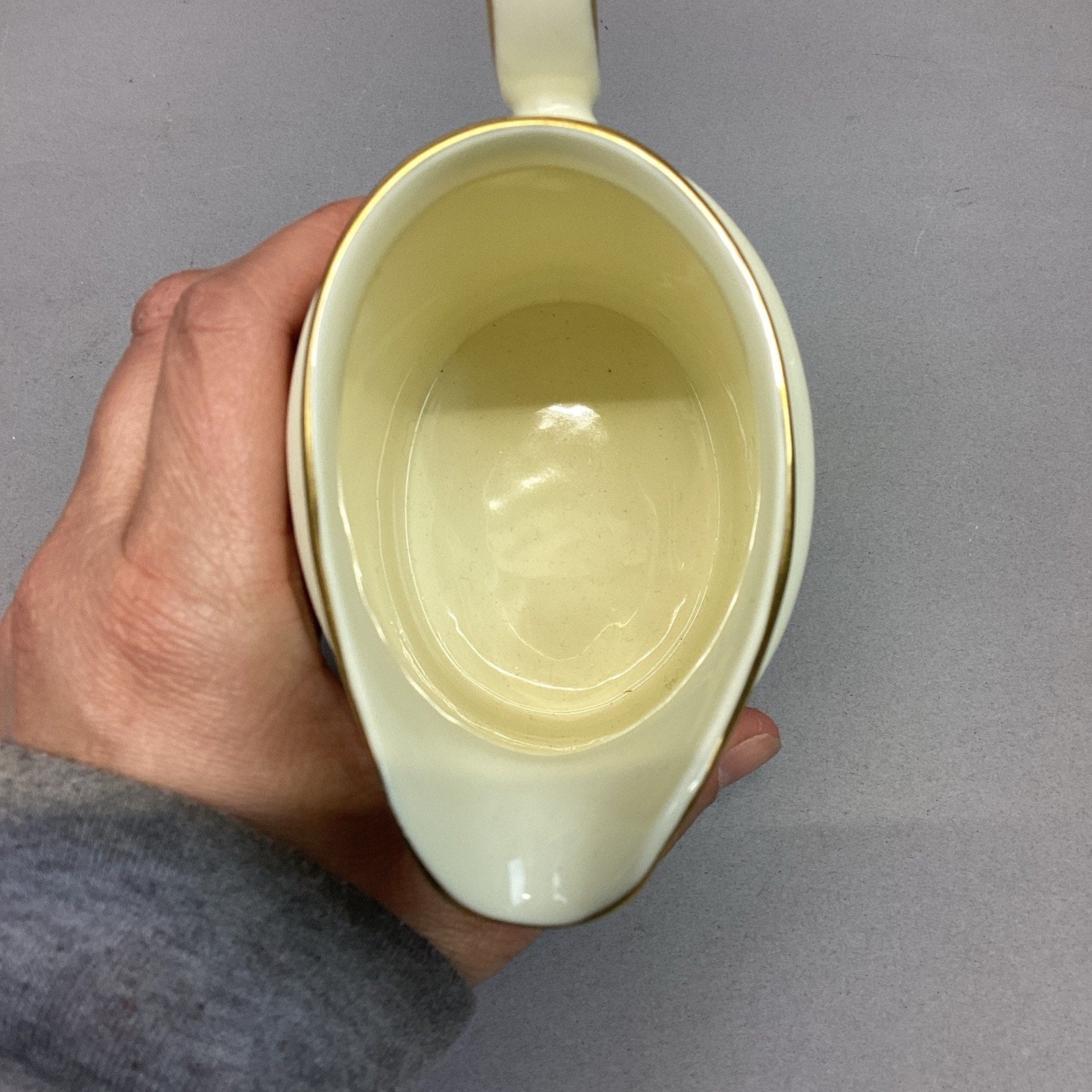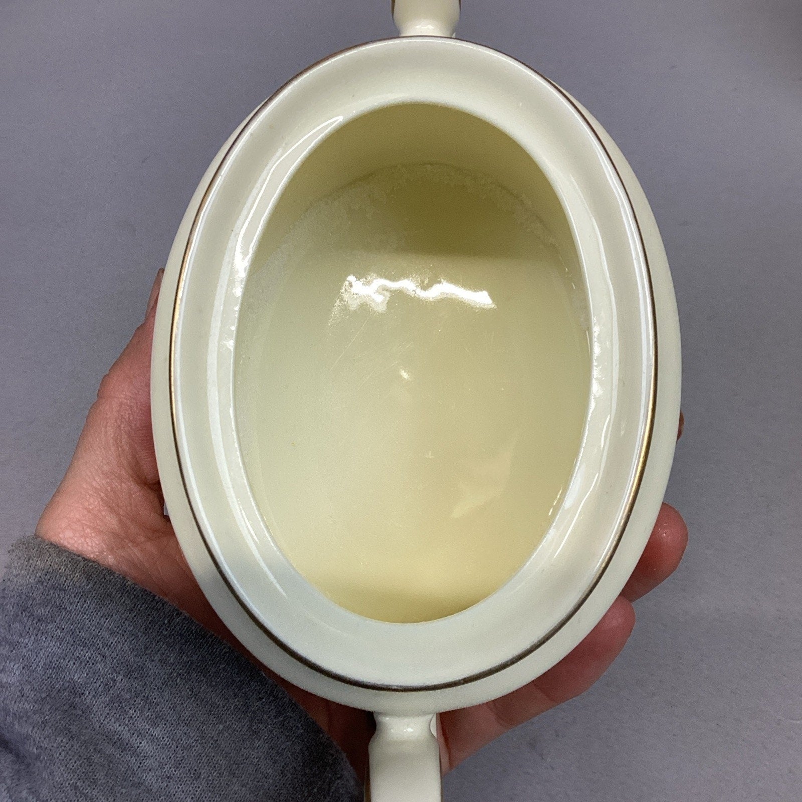 The creamer measures 4”Hx5.5”Lx2.25”W