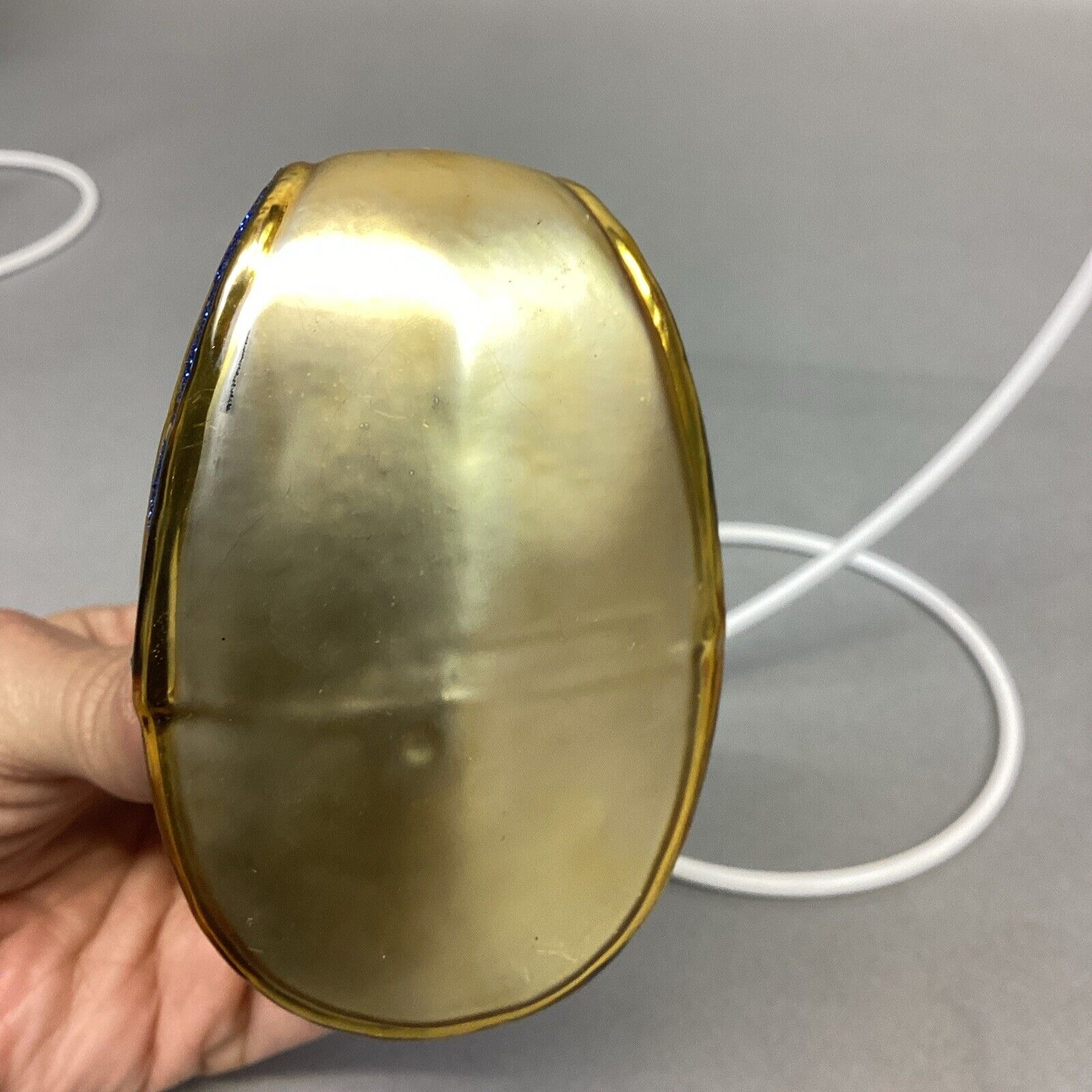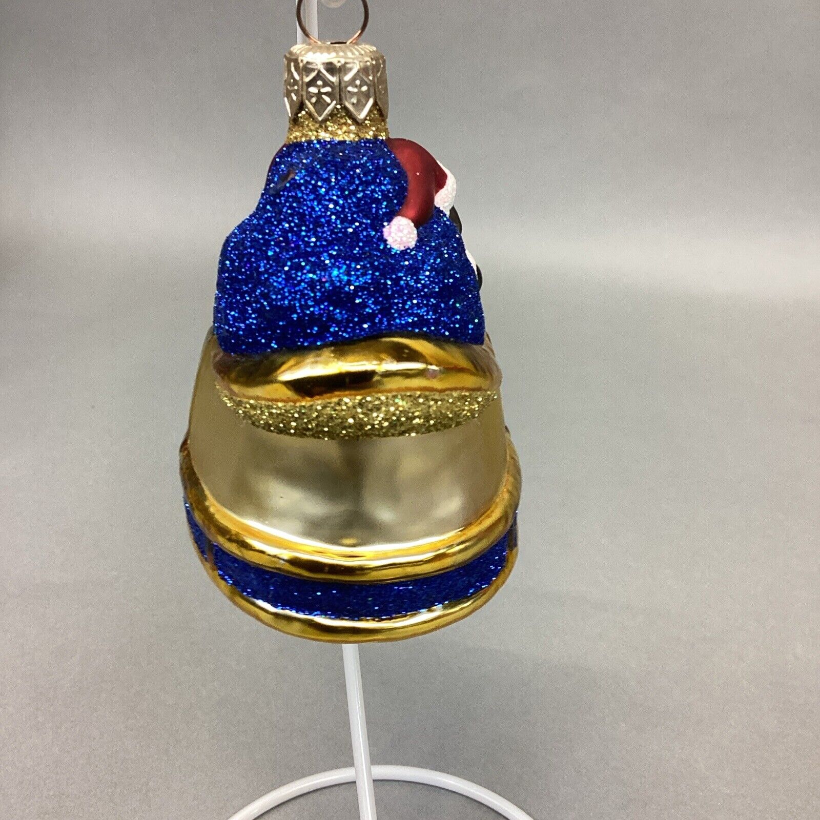 This listing is for a PATRICIA BREEN "Love is in the Air" Glass Christmas Ornament - No Tag. In good condition overall with no cracks or chips in the glass. I did see a little blue glitter that is missing which can be seen in the pictures. This ornament measures 4”Hx3.5”Lx2.25”W