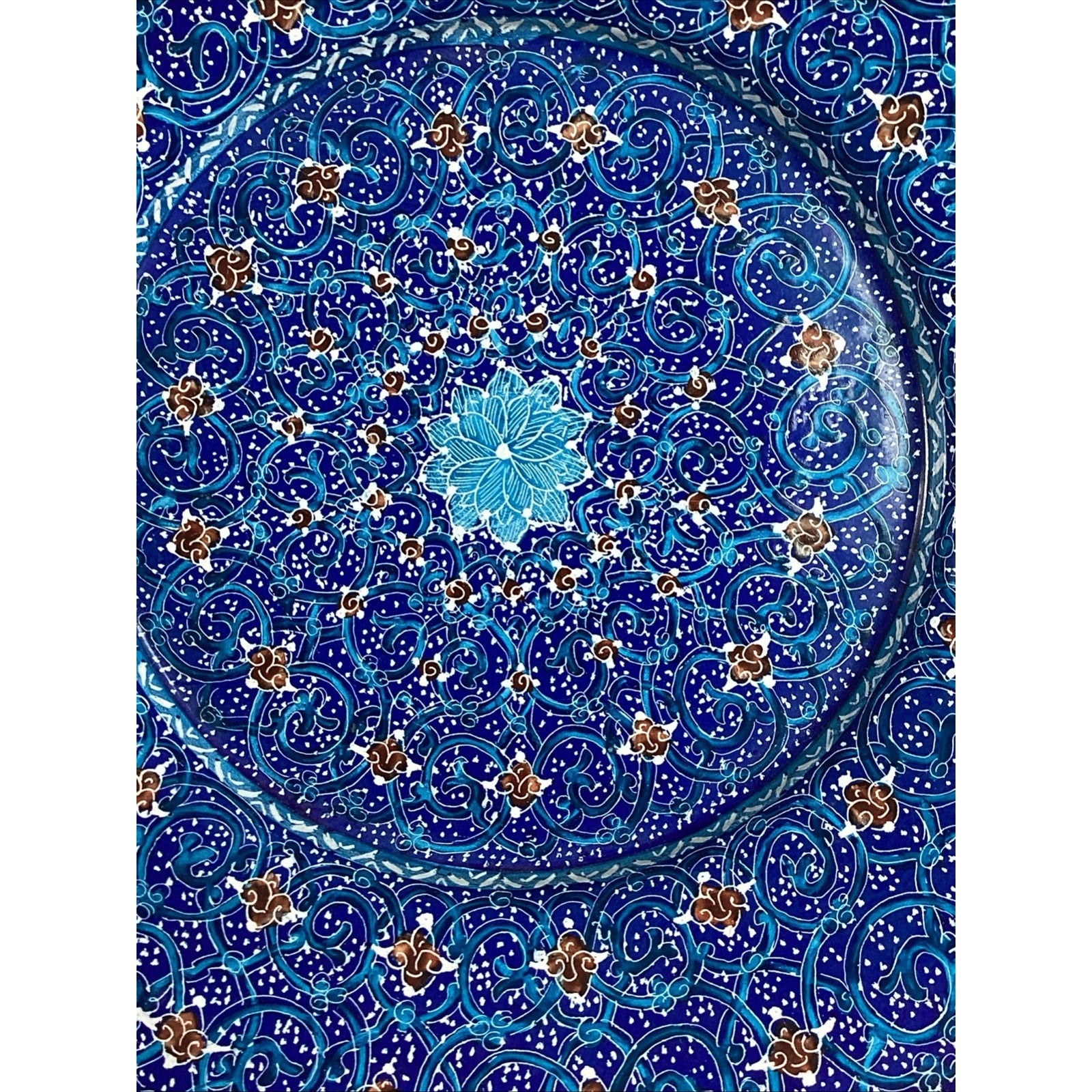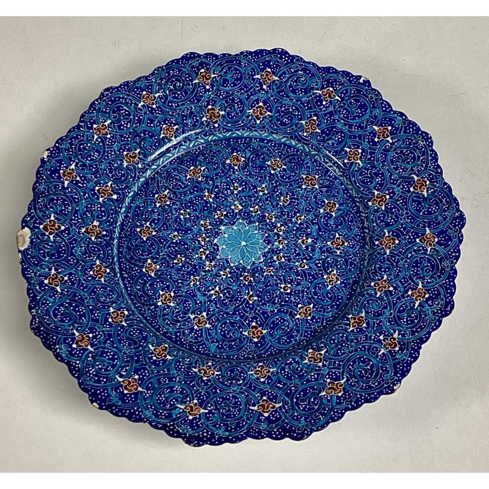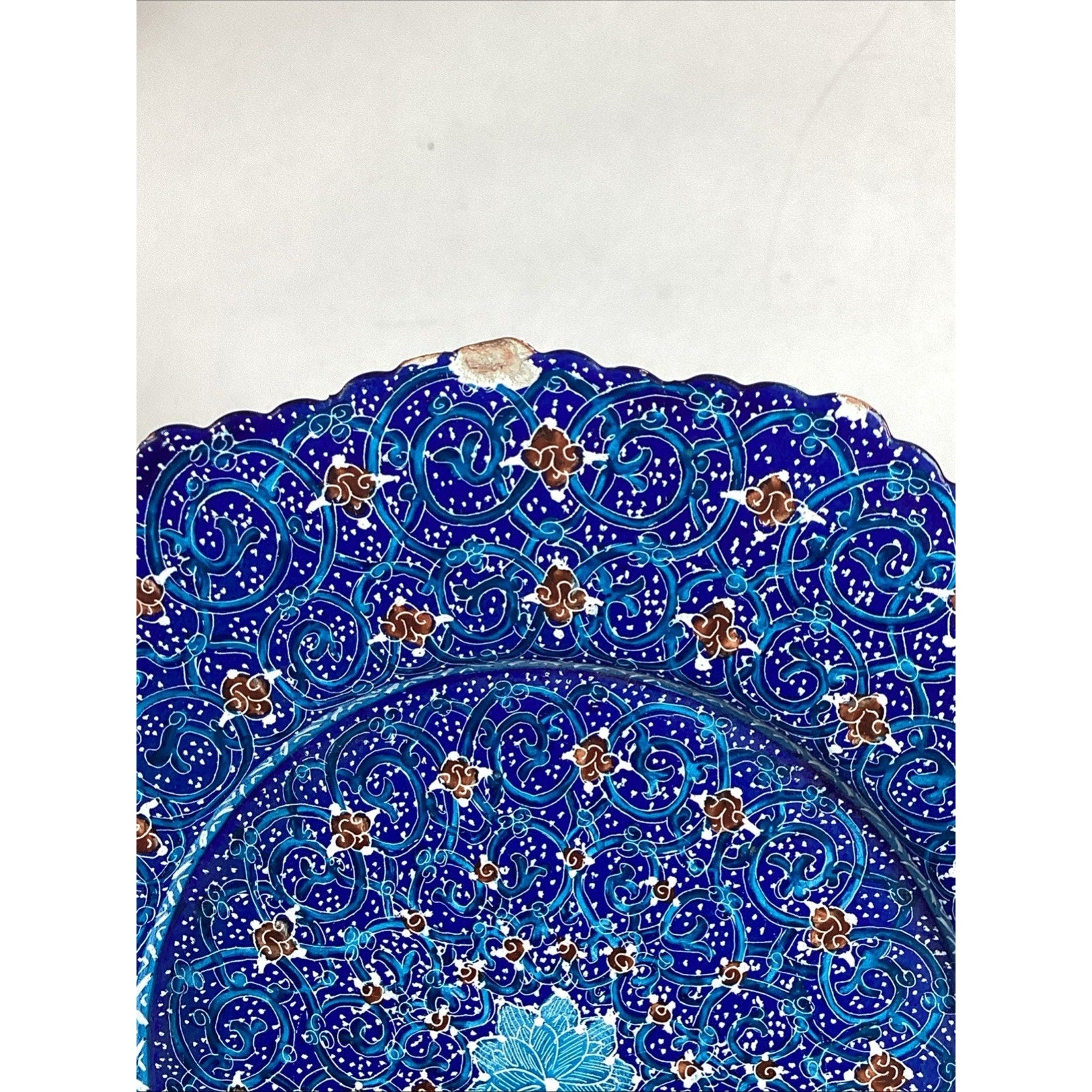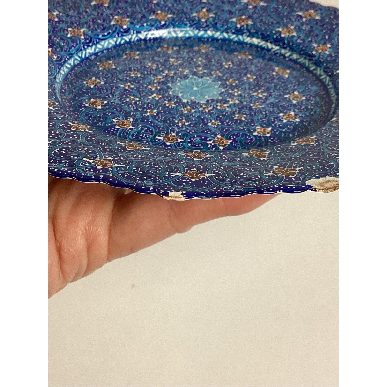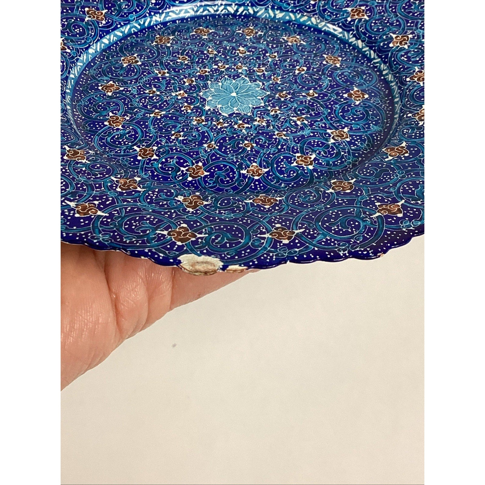 In pretty good Don except for a few chips on the edge of the plate. 1 large chip and several miniature ones. This measures 7/8”Hx5.25”D