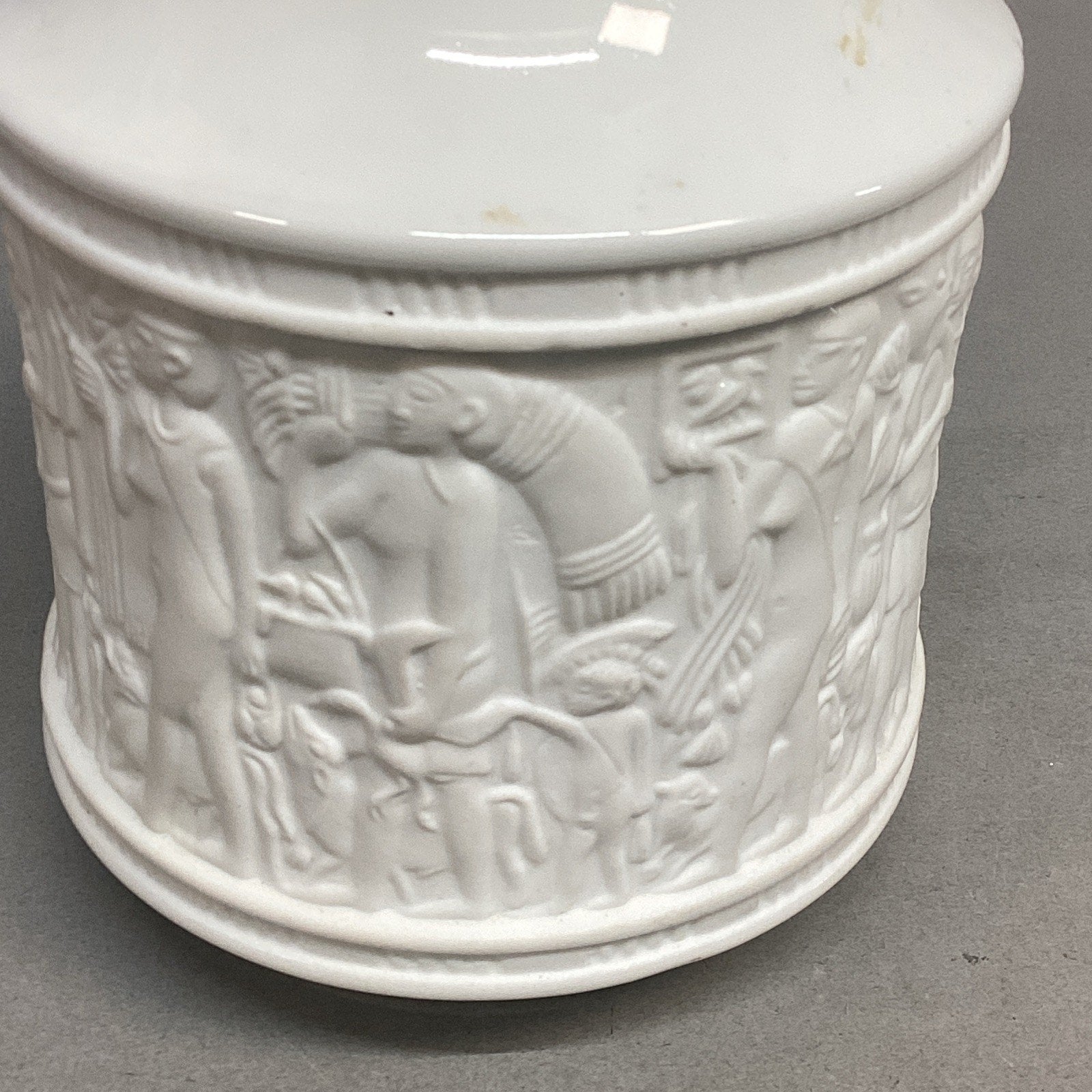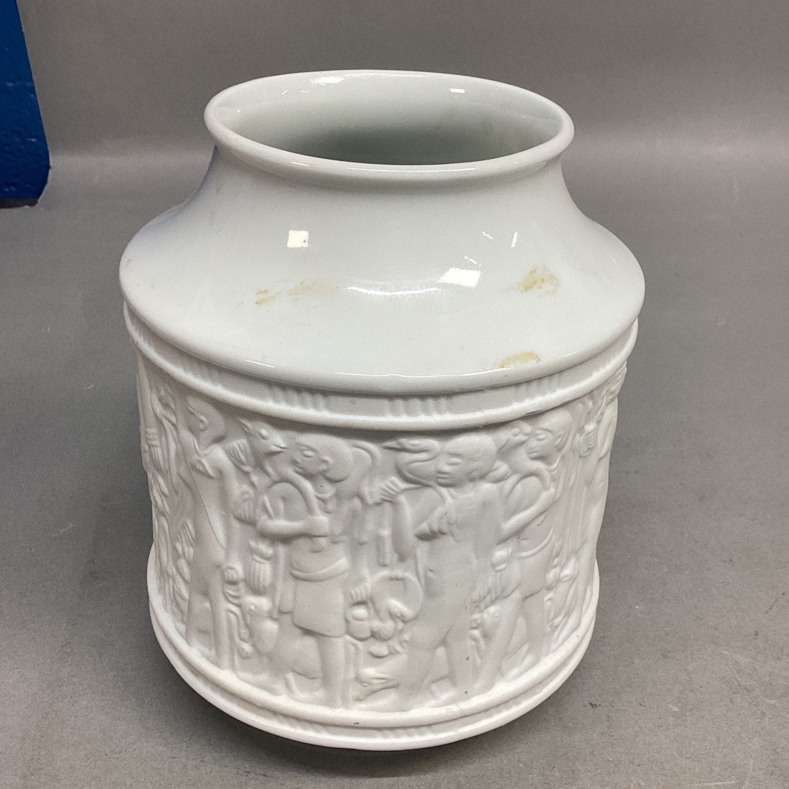 Porzellan KPM Bavaria Germany White Bisque Porcelain Flower Vase - 1970’s. In used but good condition. There are no cracks or chips in this but there are some stains and a few light marks. Please see all pictures for condition. This measures 6”Hx3”D measured at the top opening.