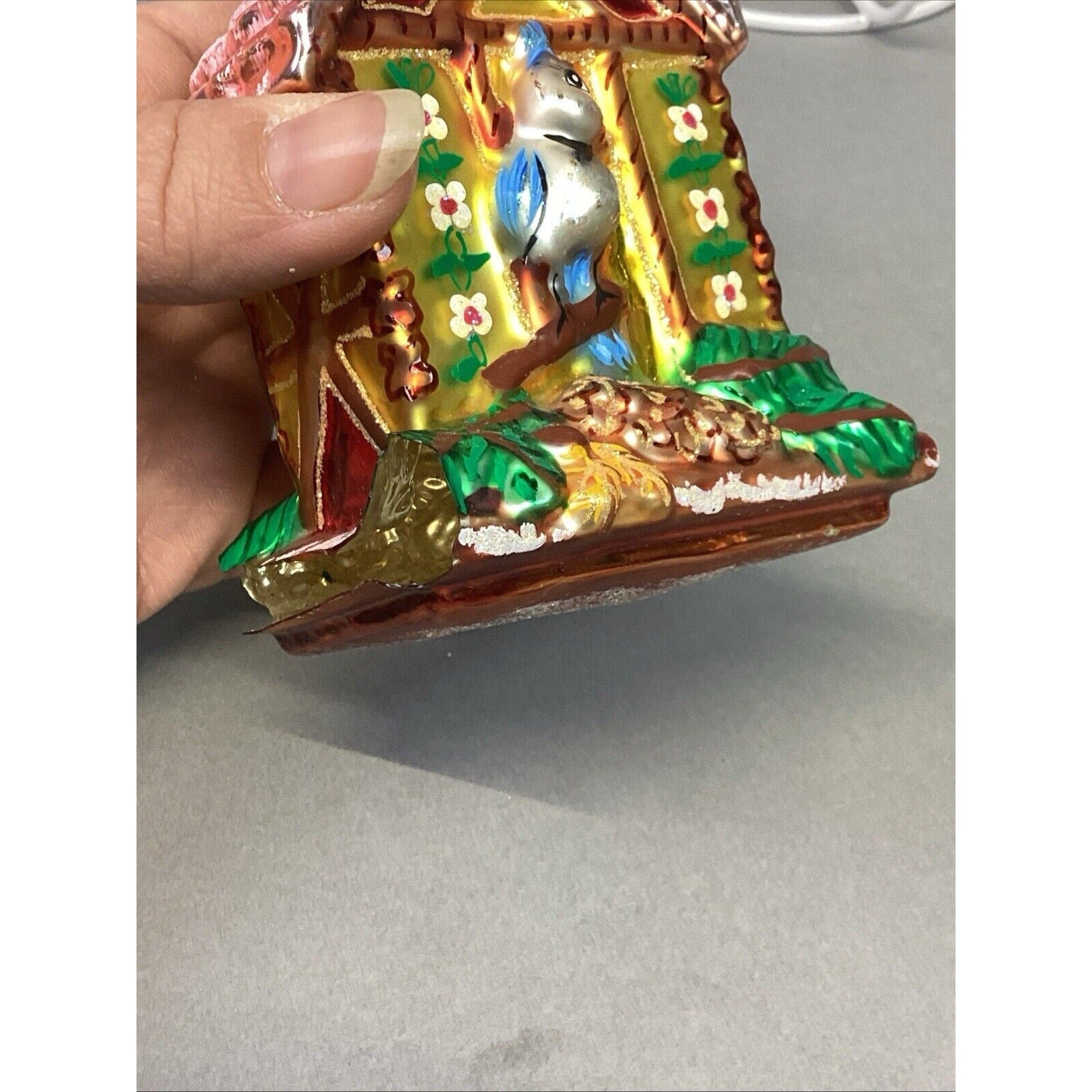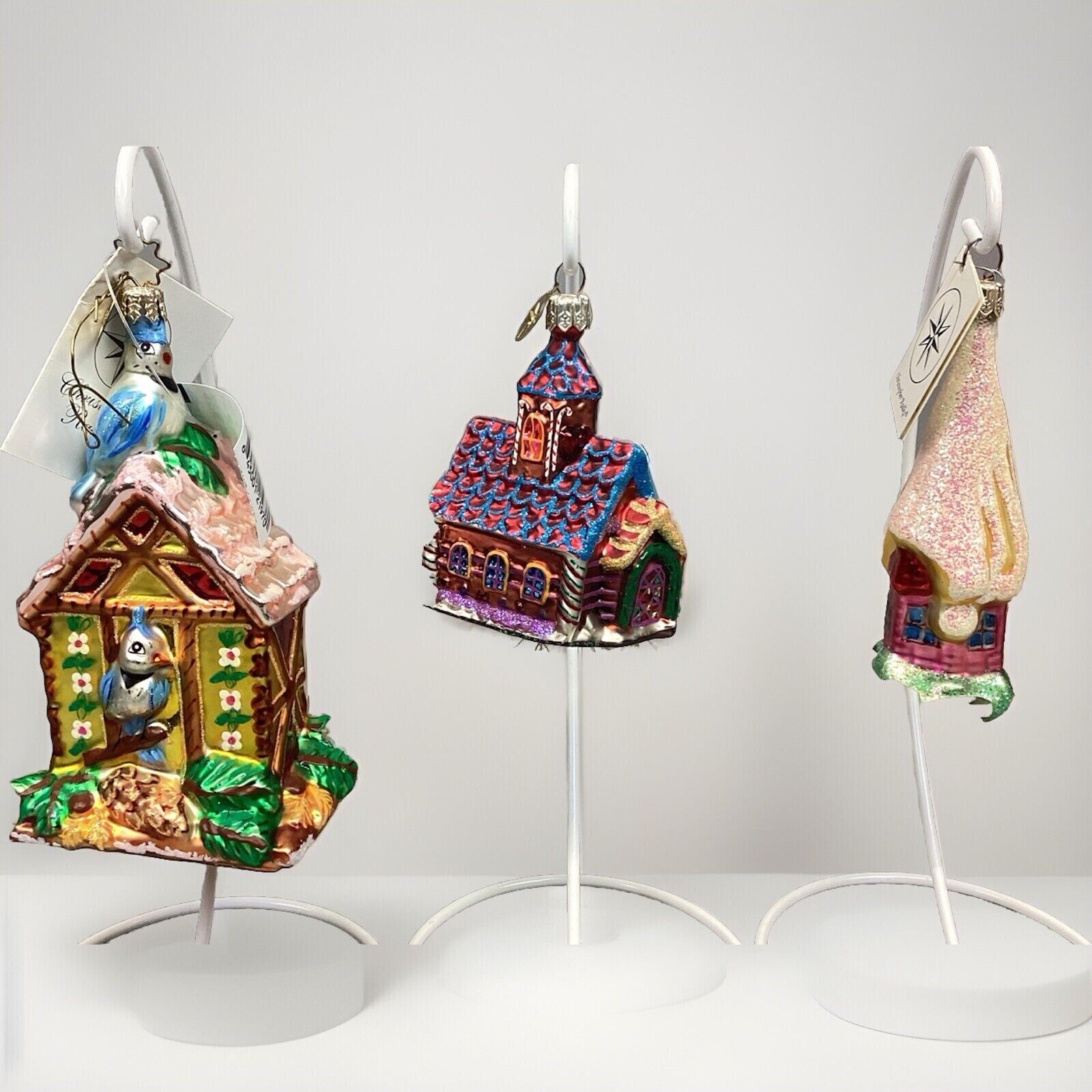 This listing is for a set of 3 glass ornaments. Radko Bird & Breakfast, Church & Snow House - Damaged