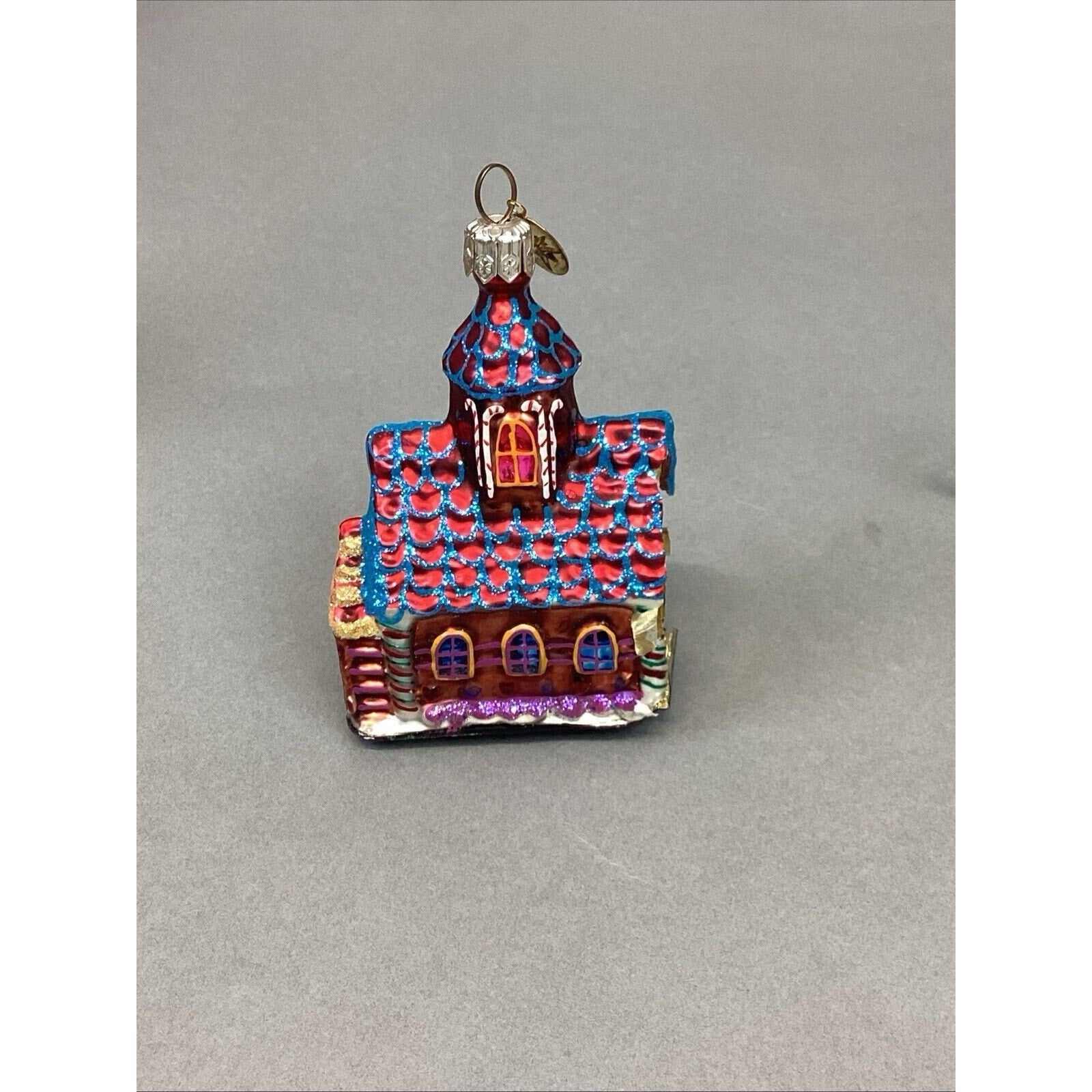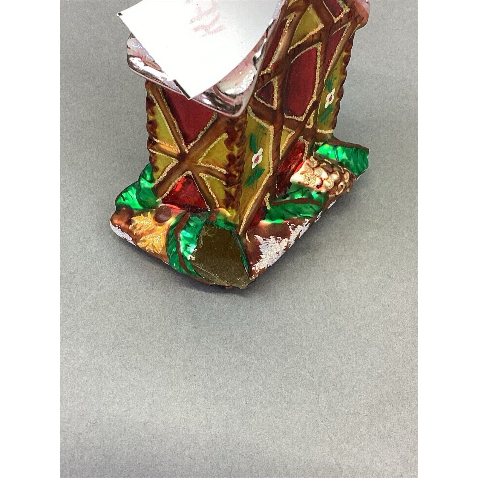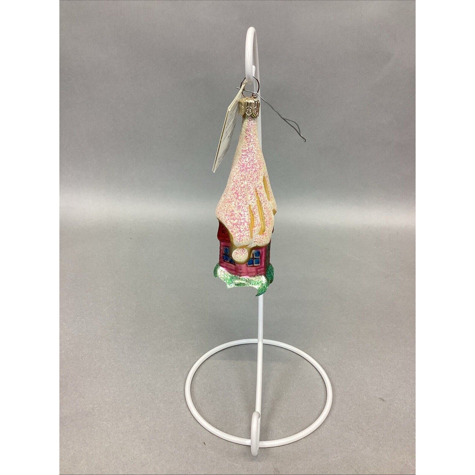 3. Snow capped house. With tag. Entire base is missing. Ornament measures “H