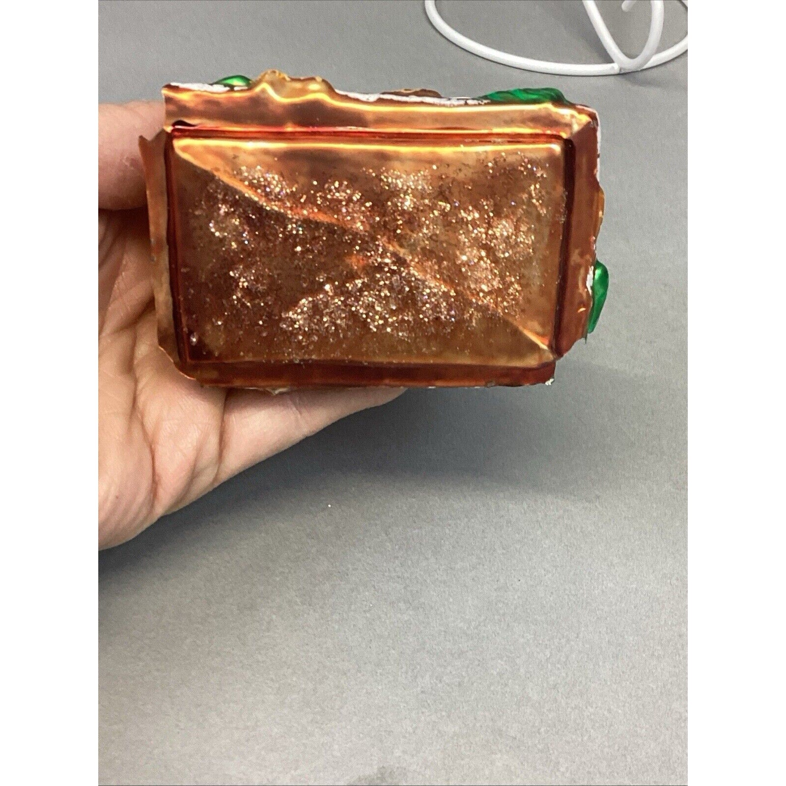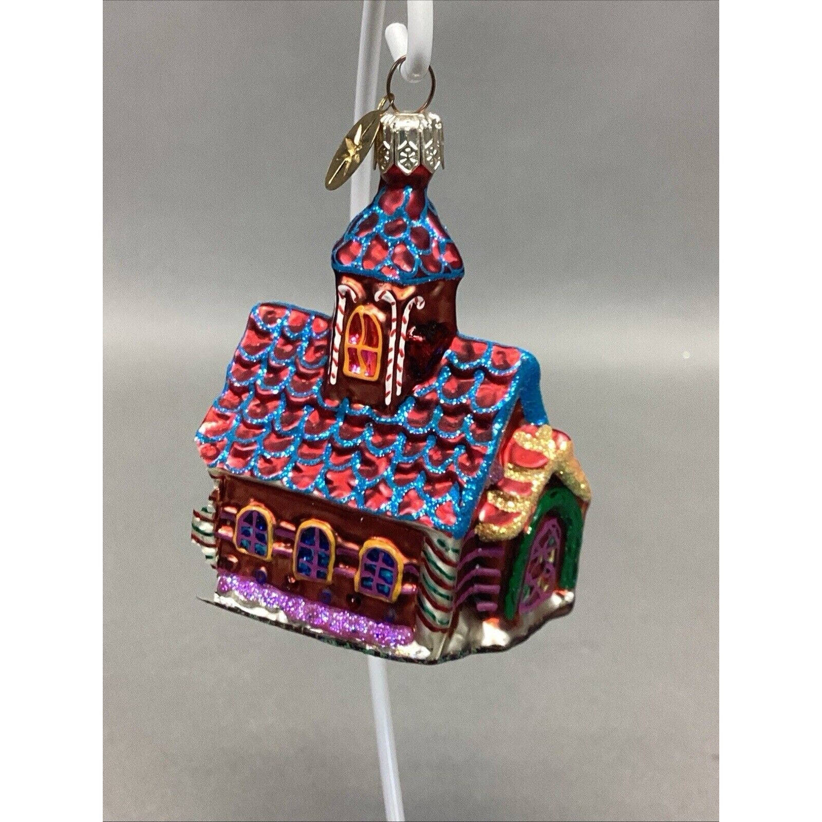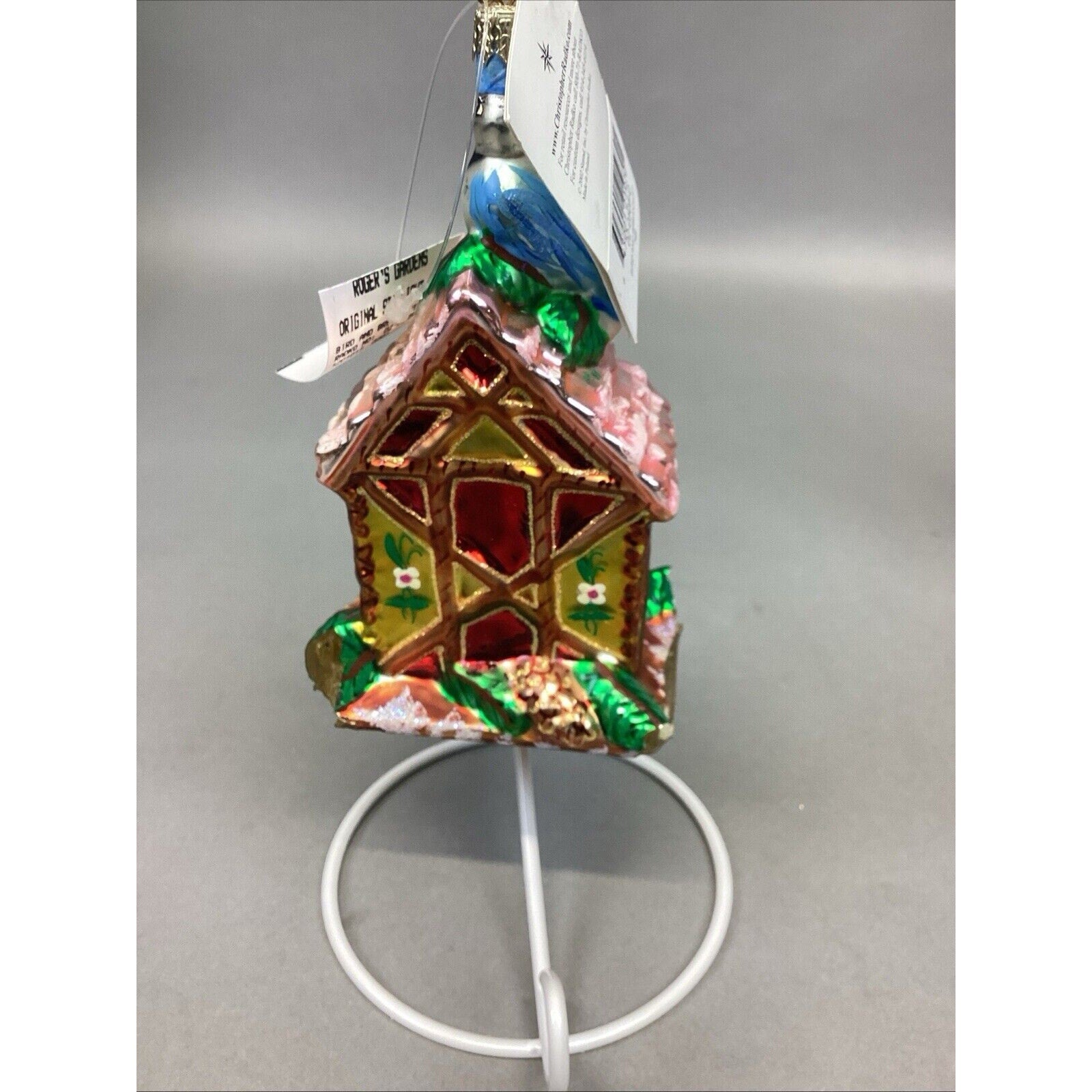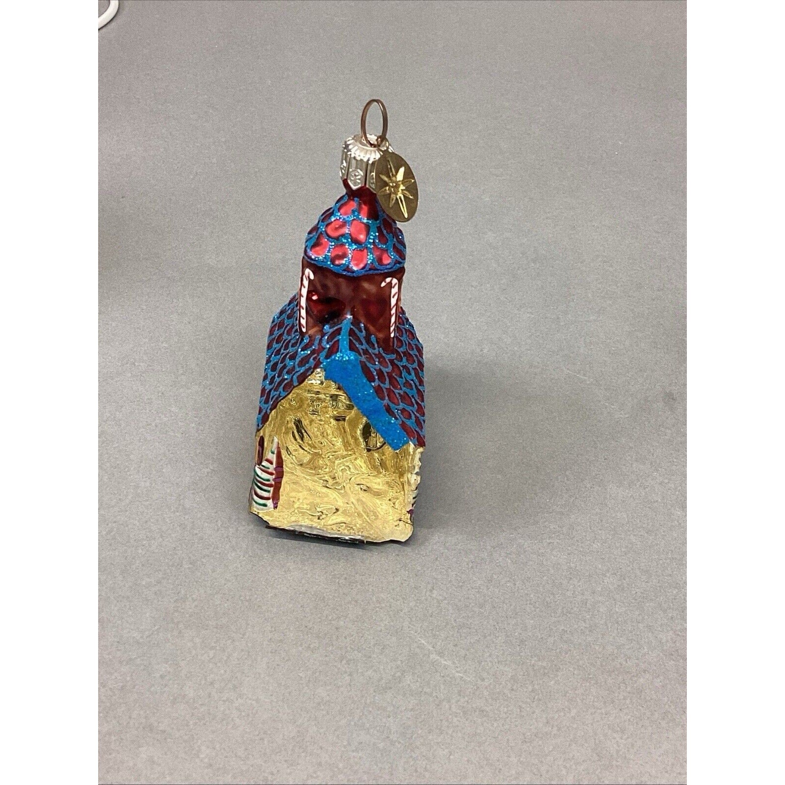 3. Snow capped house. With tag. Entire base is missing. Ornament measures “H