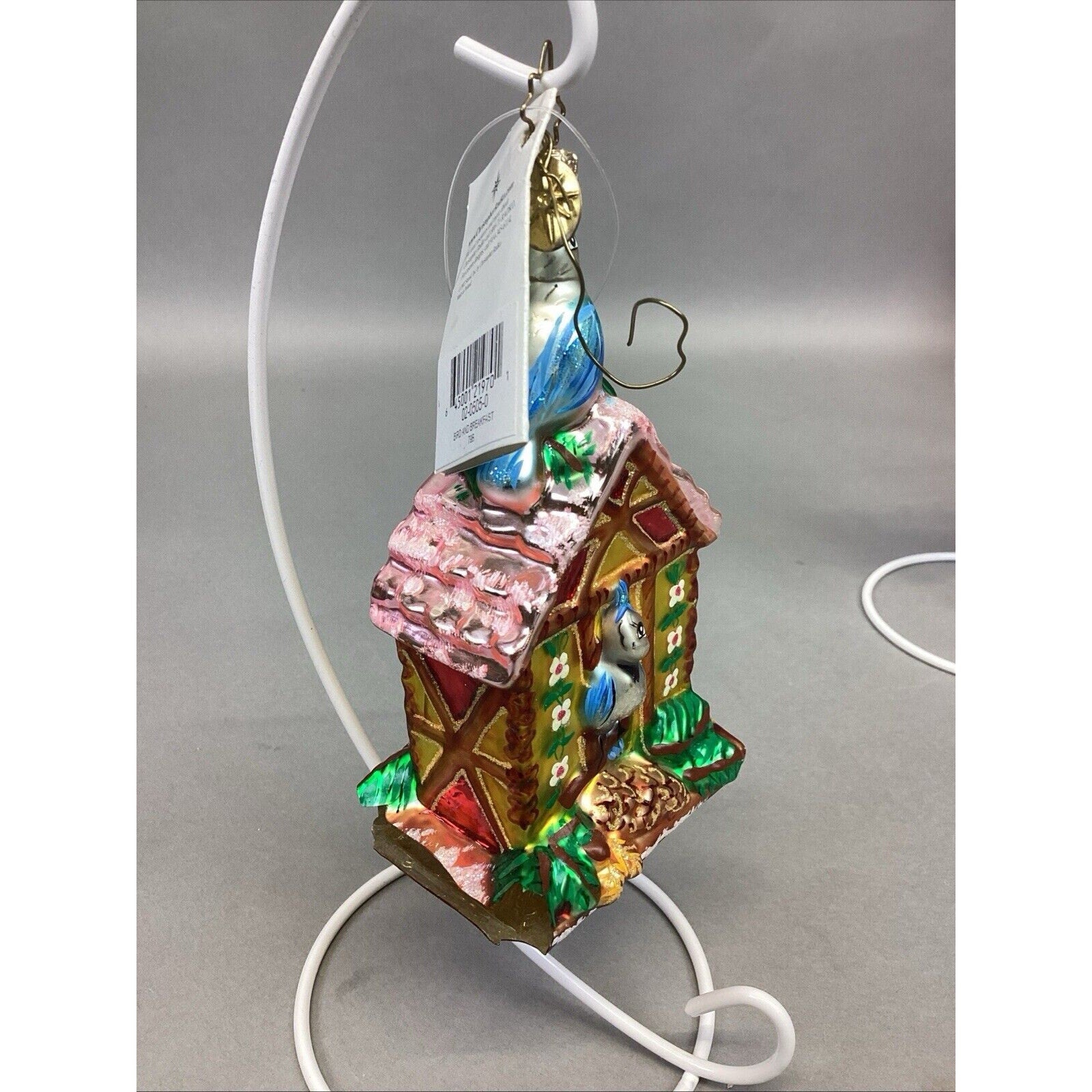 1. Bird and breakfast. #02-0505-0. Damaged on both sides at base. Ornament measures 6”H. With tags.