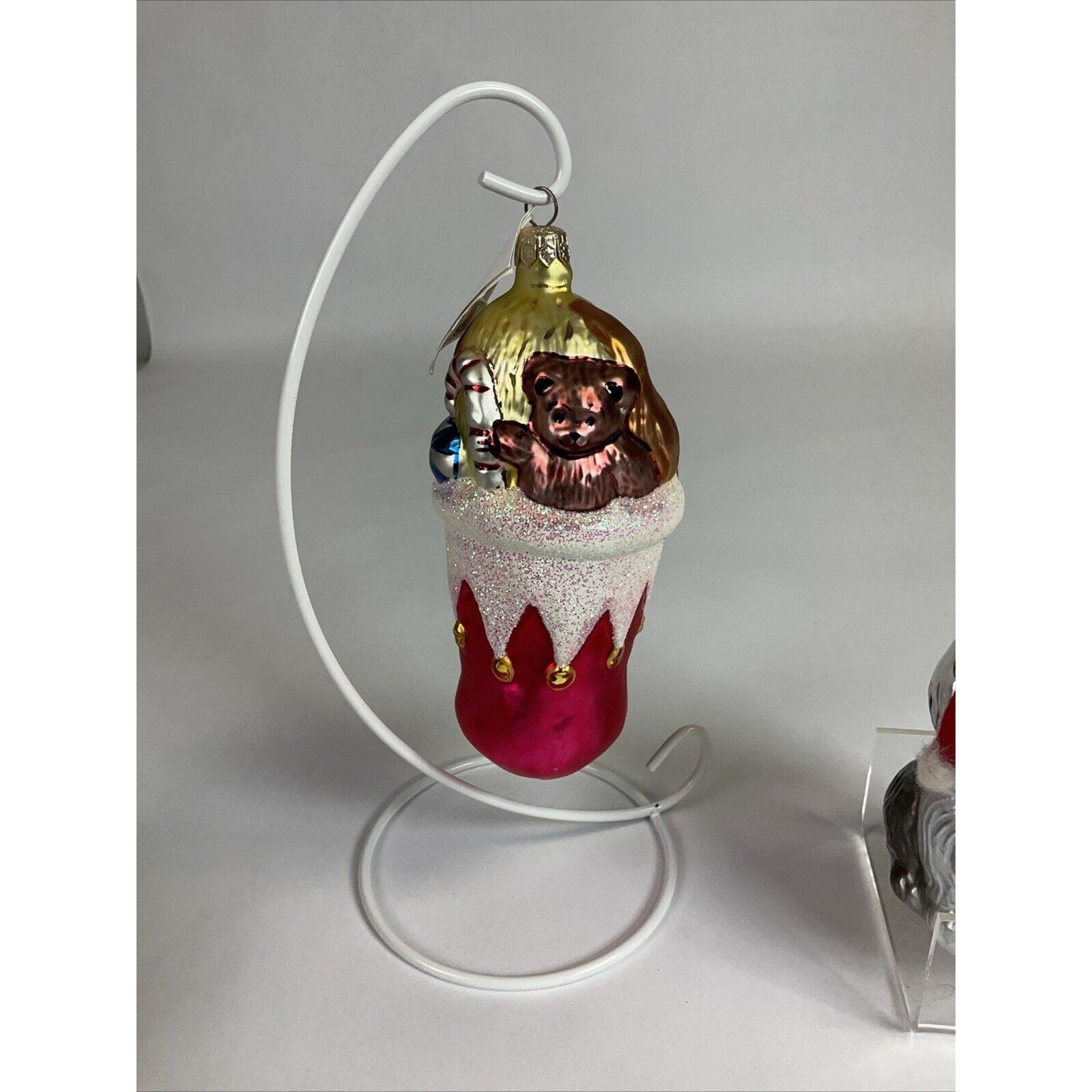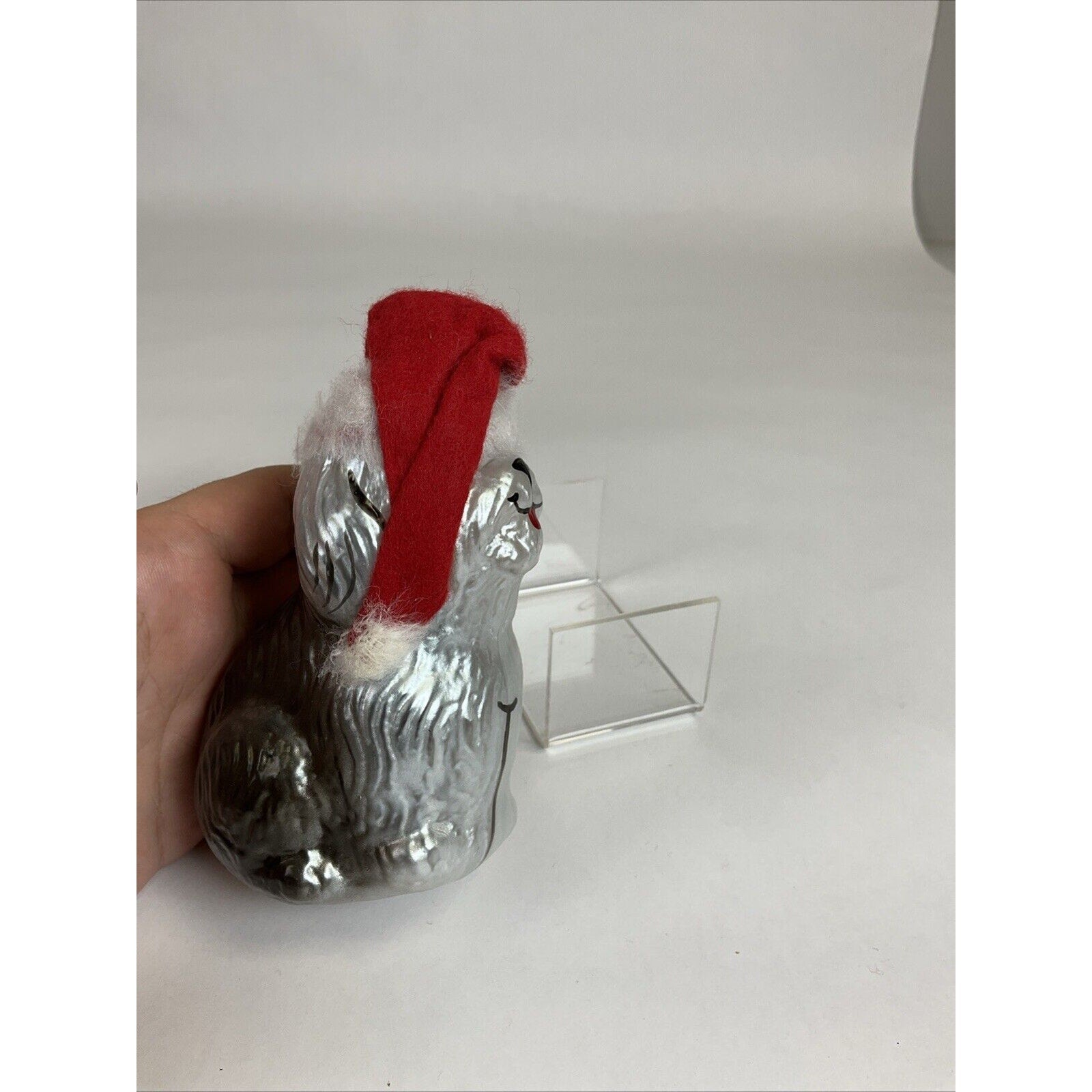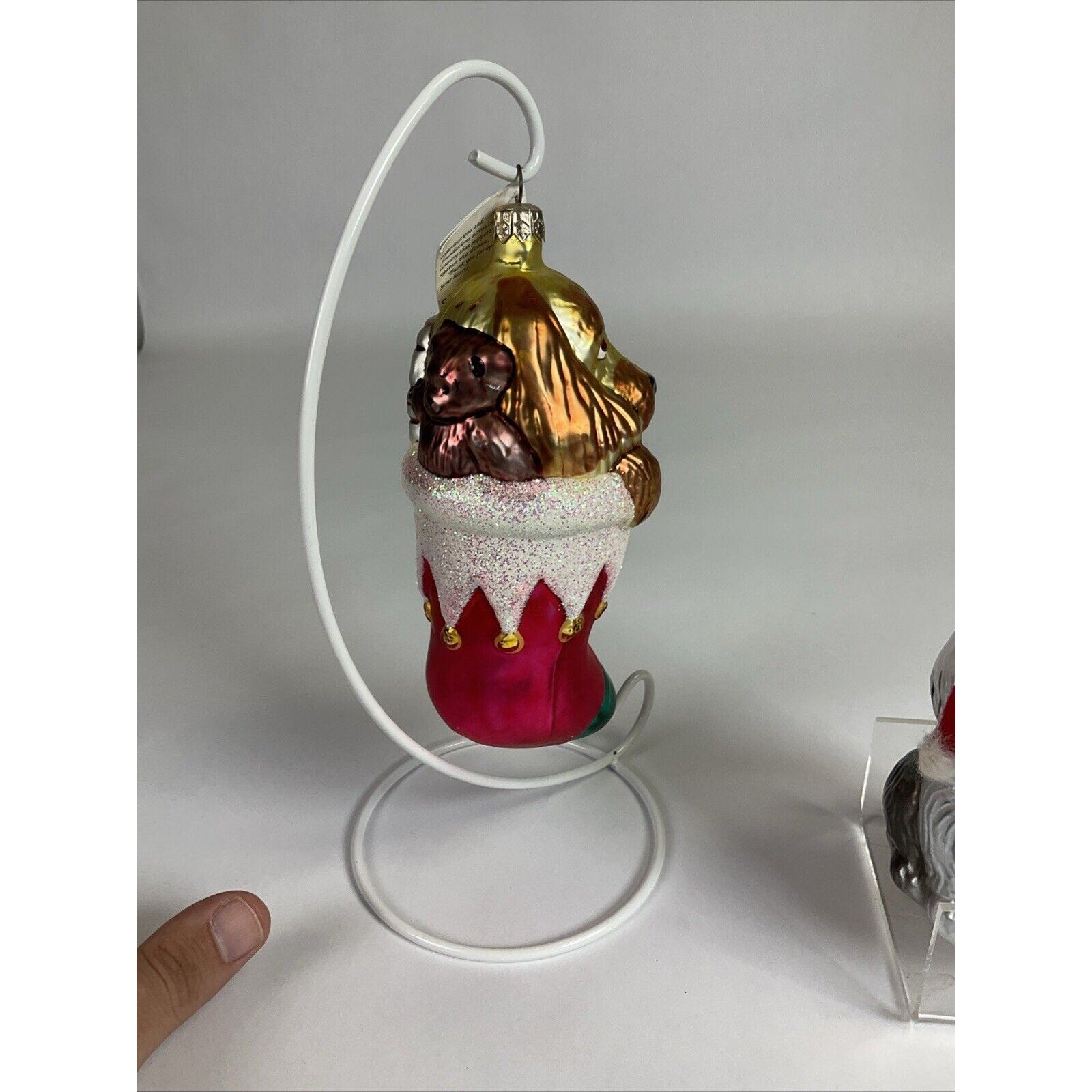Radko Christmas Puppy Love Glass Ornament Dog Stocking + Santa Hat Dog