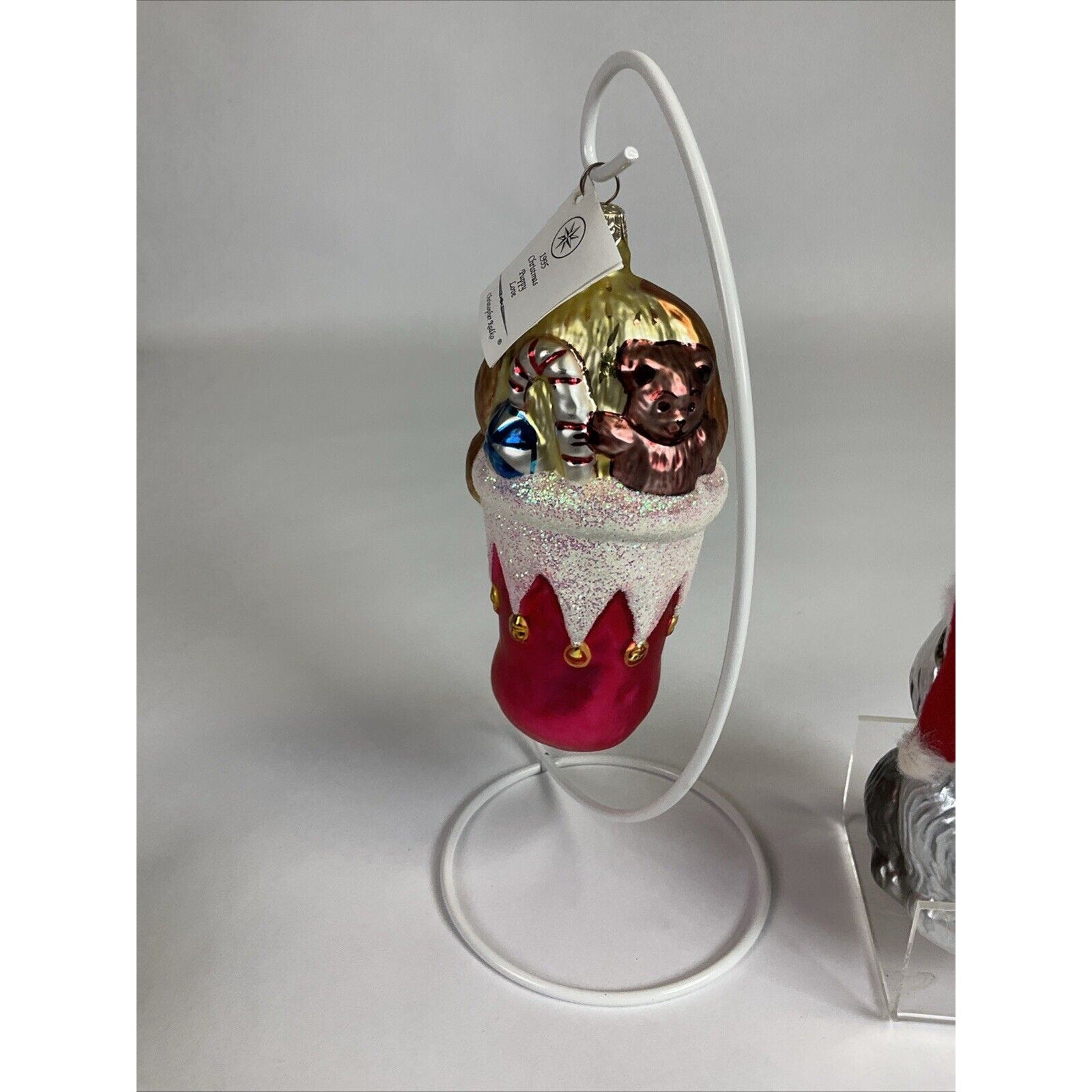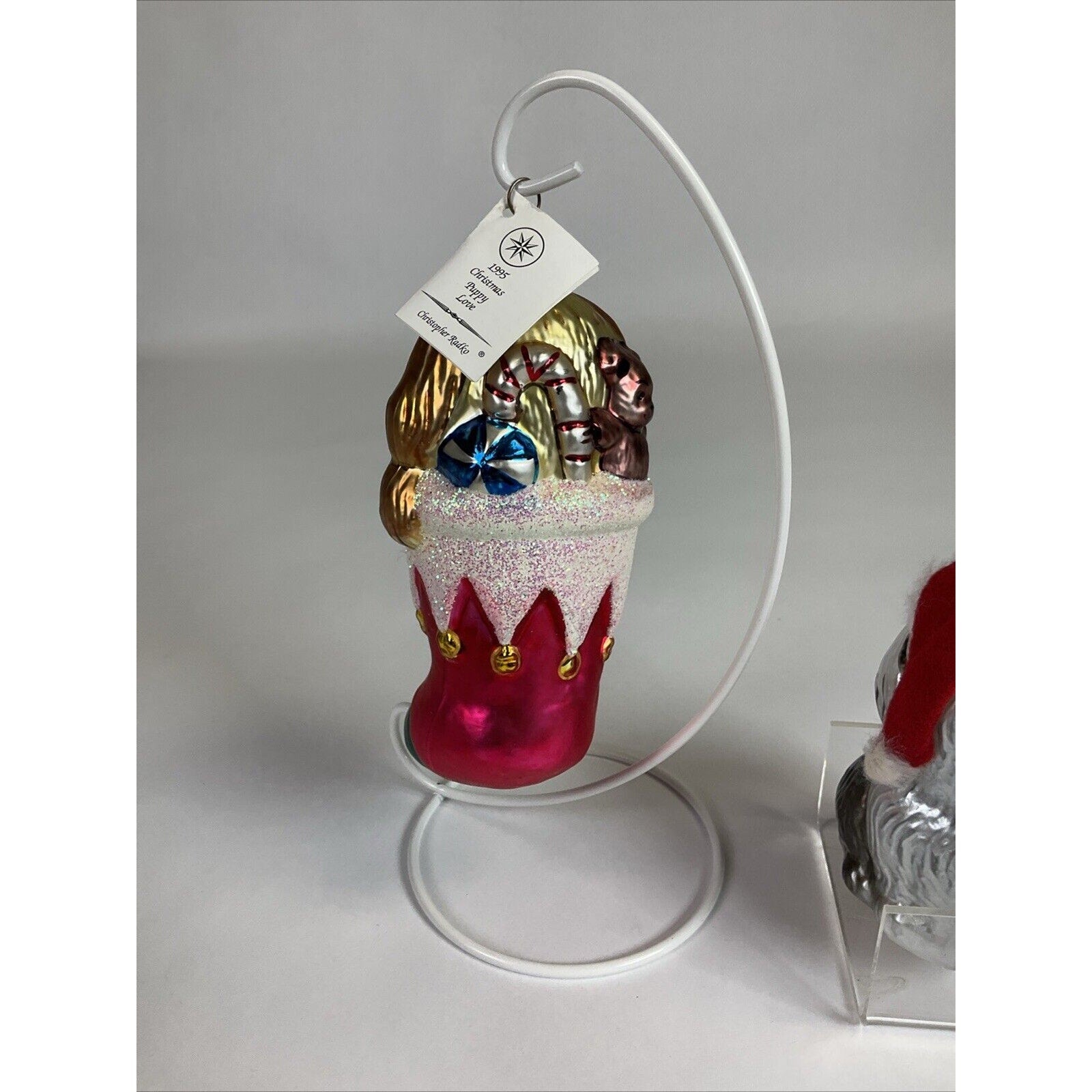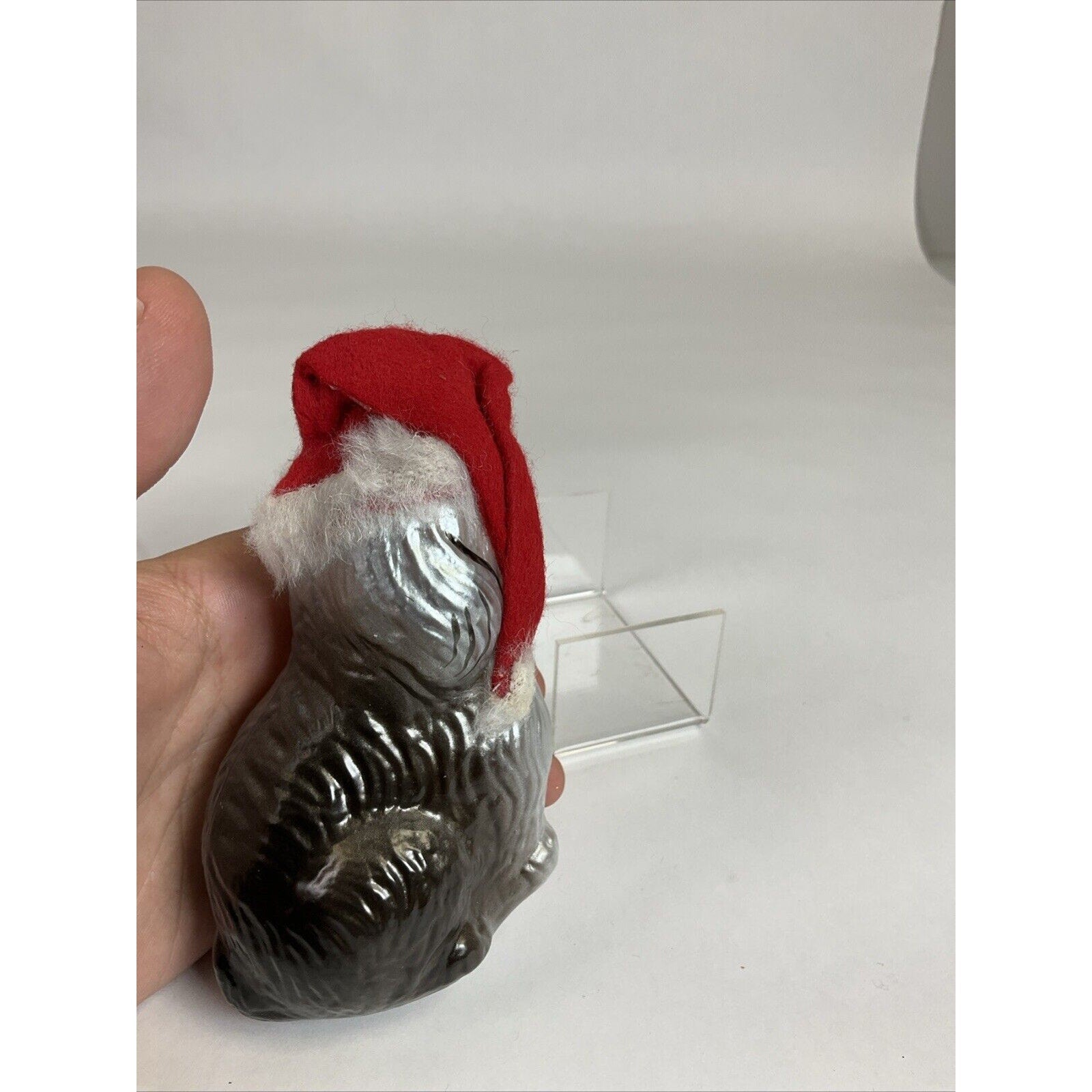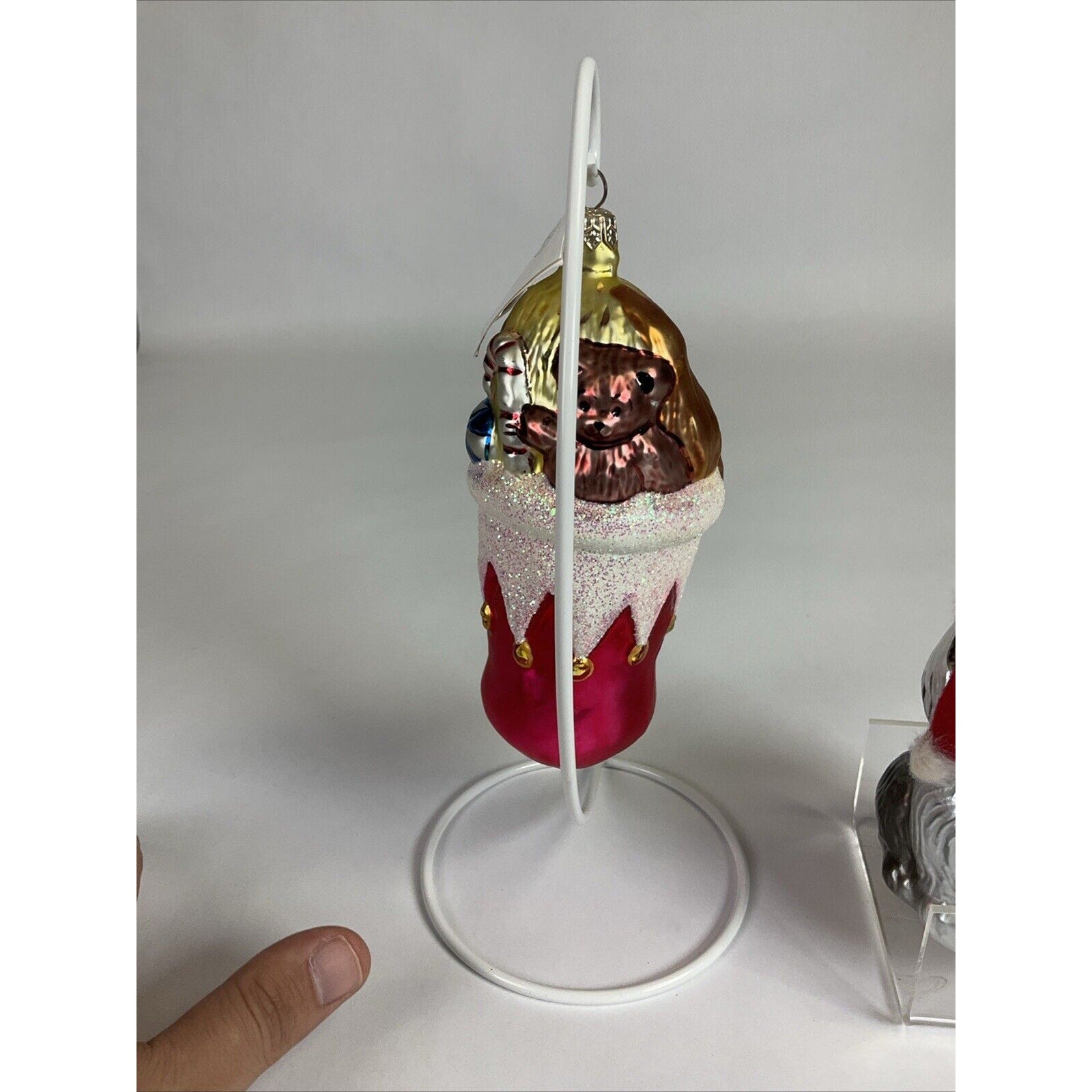Radko Christmas Puppy Love Glass Ornament Dog Stocking + Santa Hat Dog
