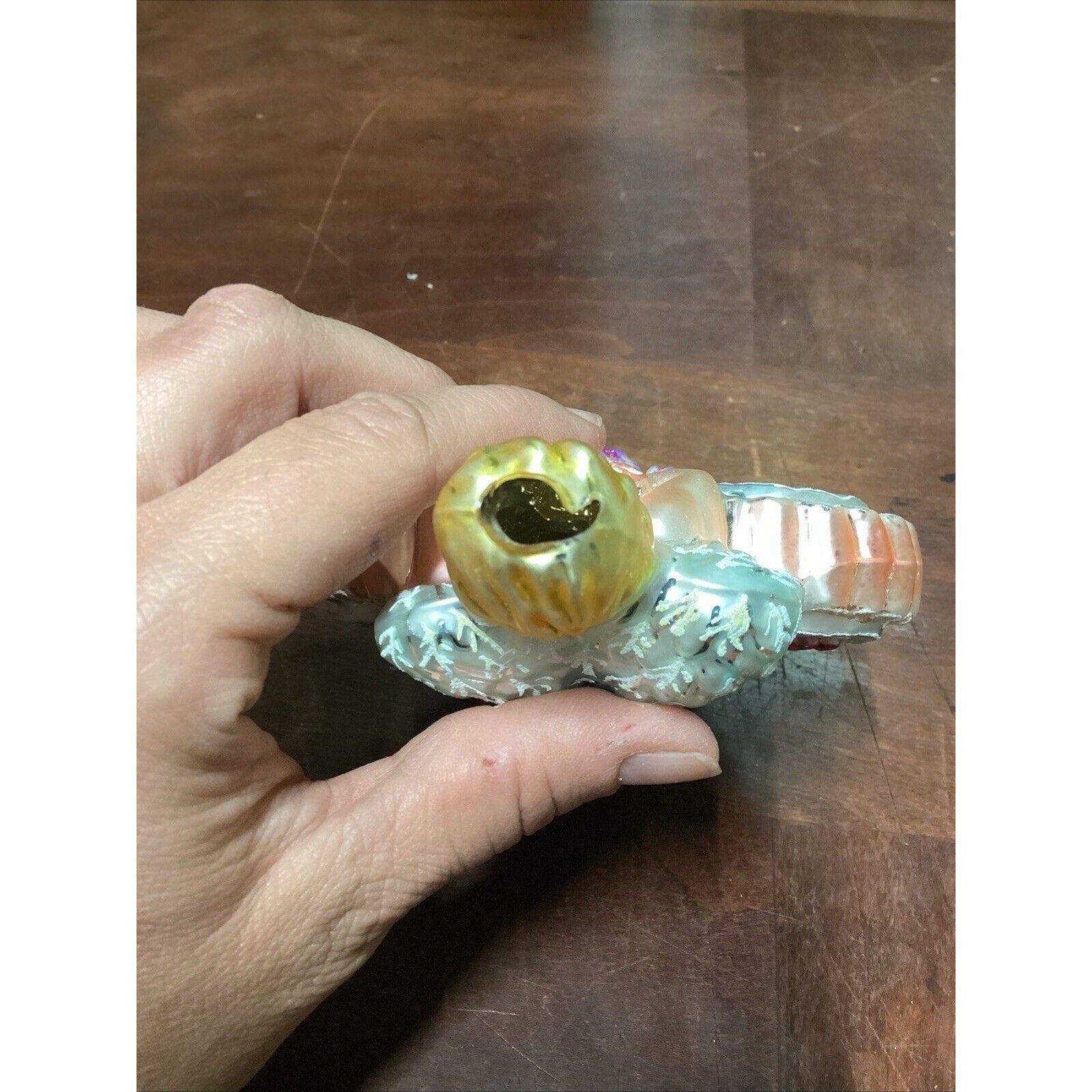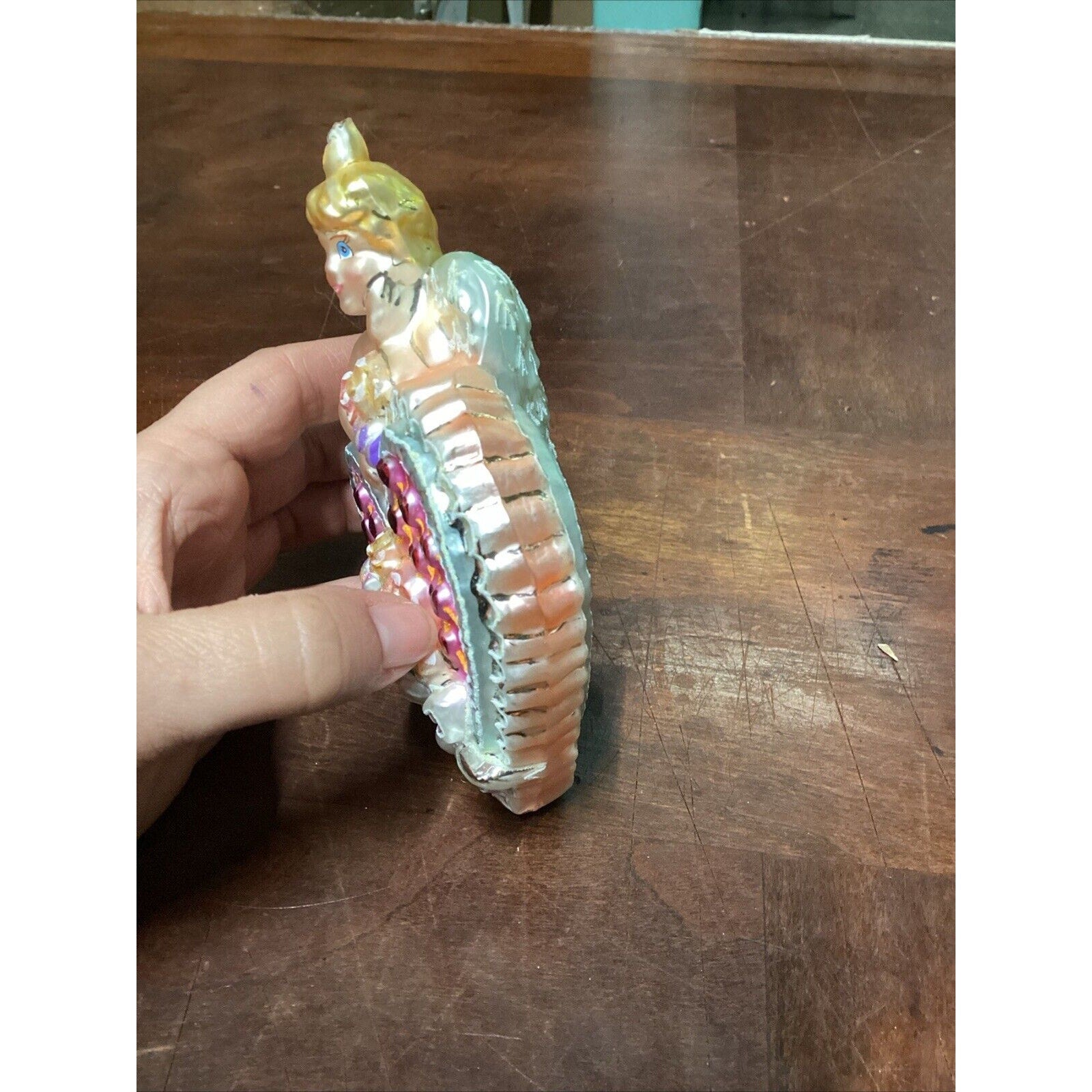 The topper of this ornament broke off leaving a small hole in place of it. The rest of the ornament is in very good condition. No tags.