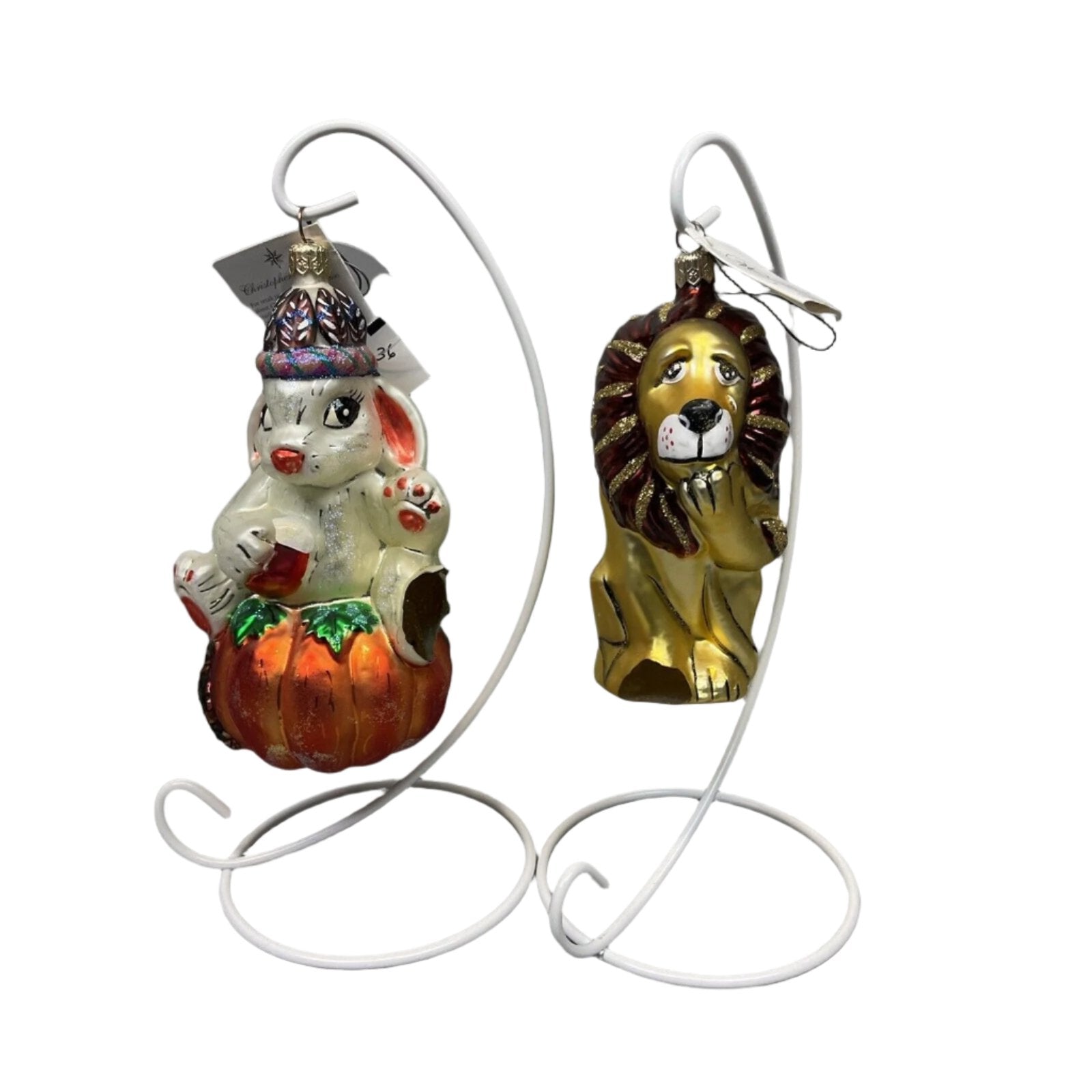 Radko Harvest Hare + Wizard Of Oz Lion Christmas Ornaments / Damaged