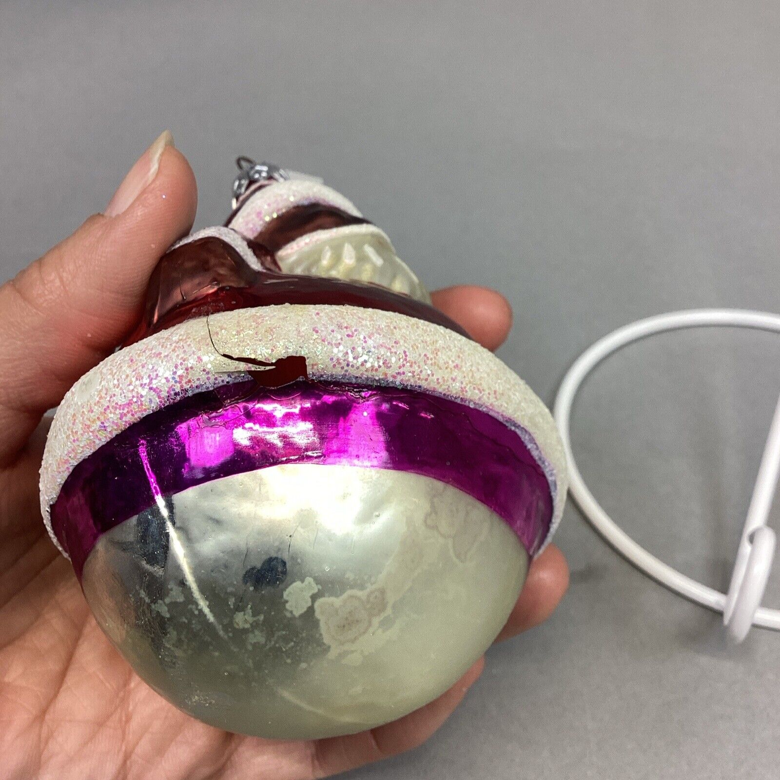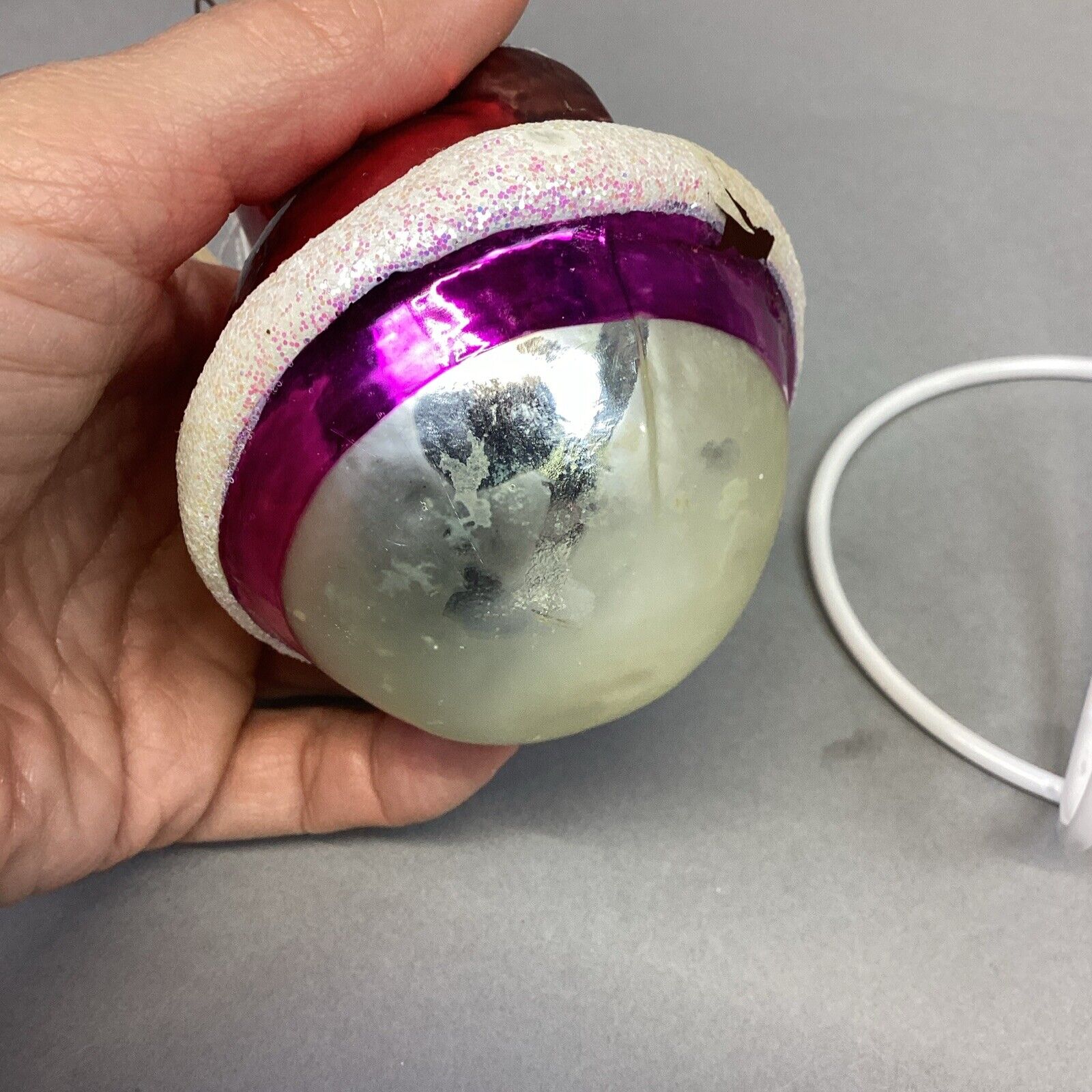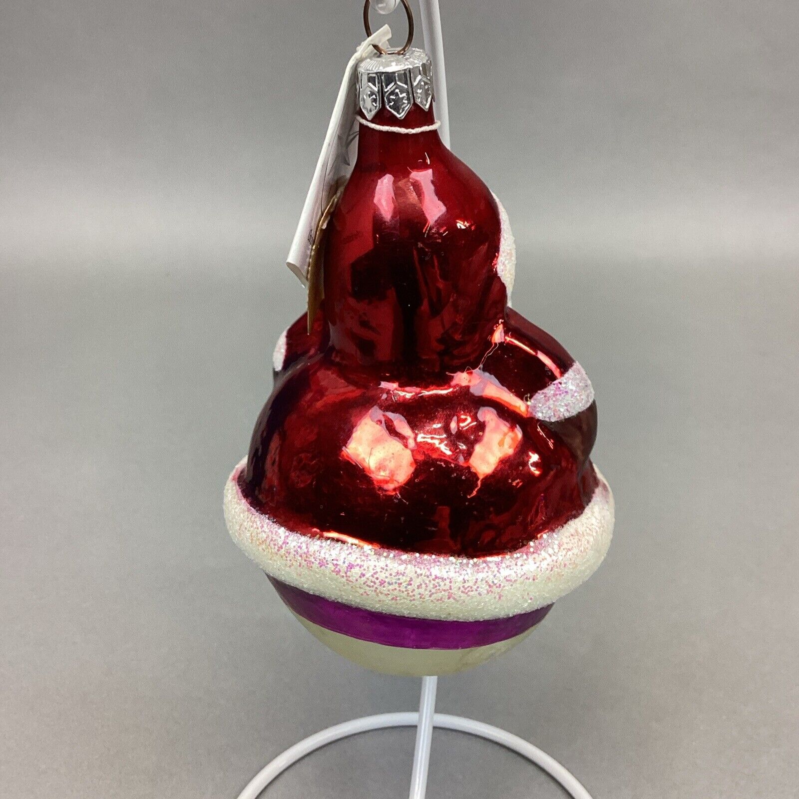This listing is for a Radko HERITAGE African American SANTA Roly Poly Ornament 90-072-0. It has slight damage on the center ring. It’s cracked in 1 spot. There’s also a little paint missing on the base and slight discoloration on the base too. This measures 5”H.