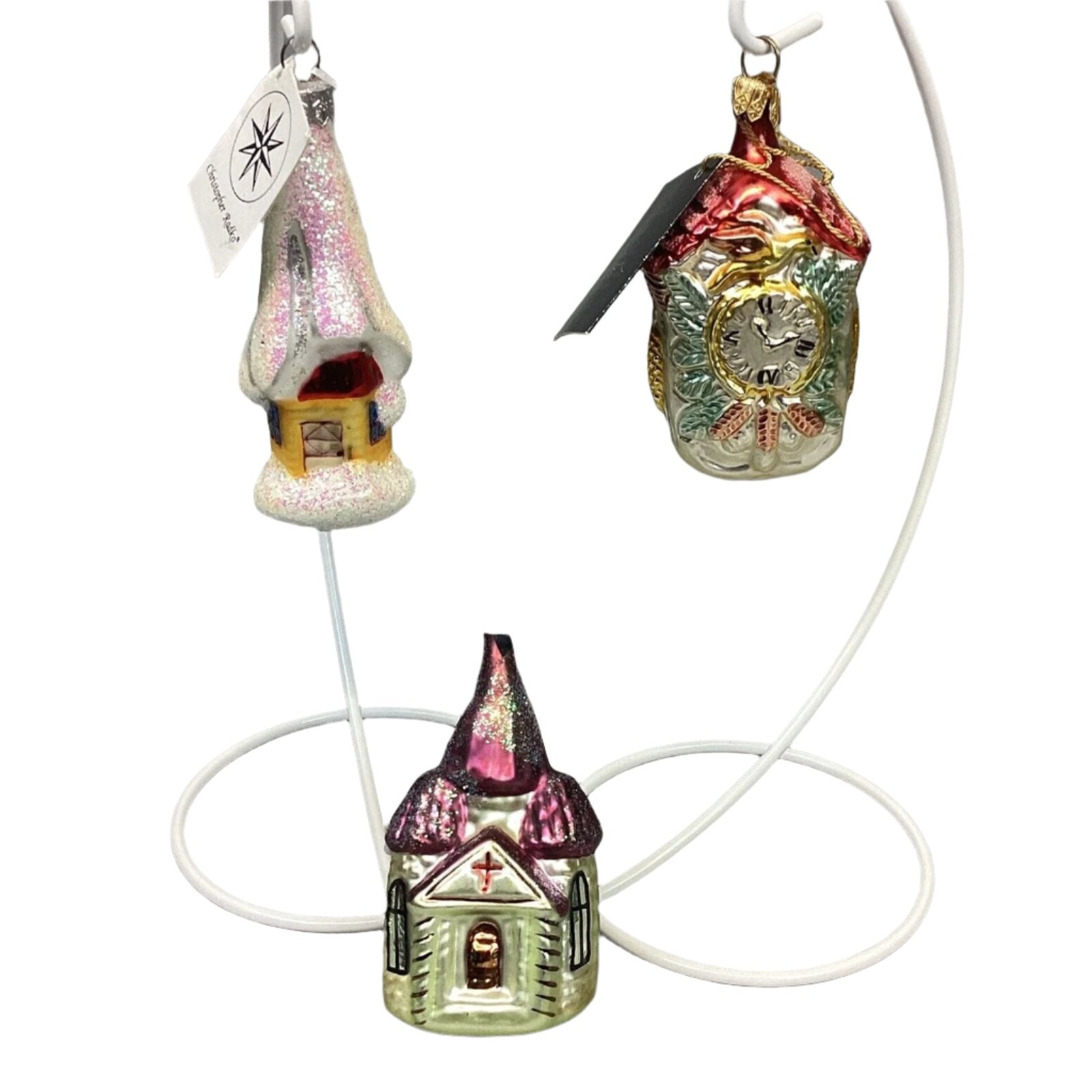 Radko Ice House & Little Chapel + Kurt Adler Cuckoo Clock Glass Ornaments
