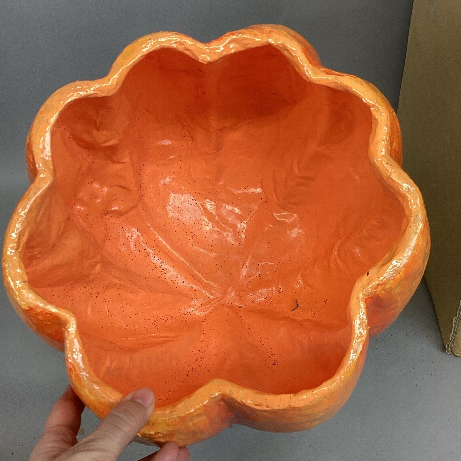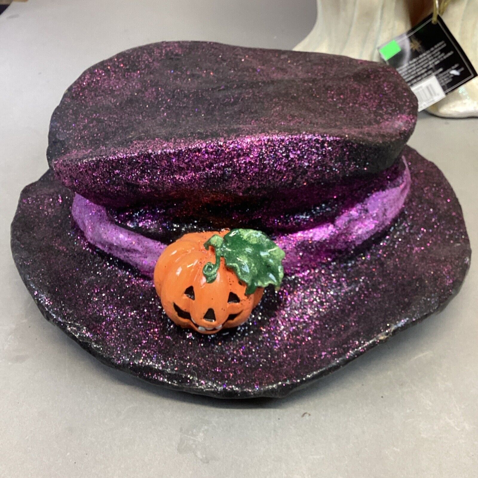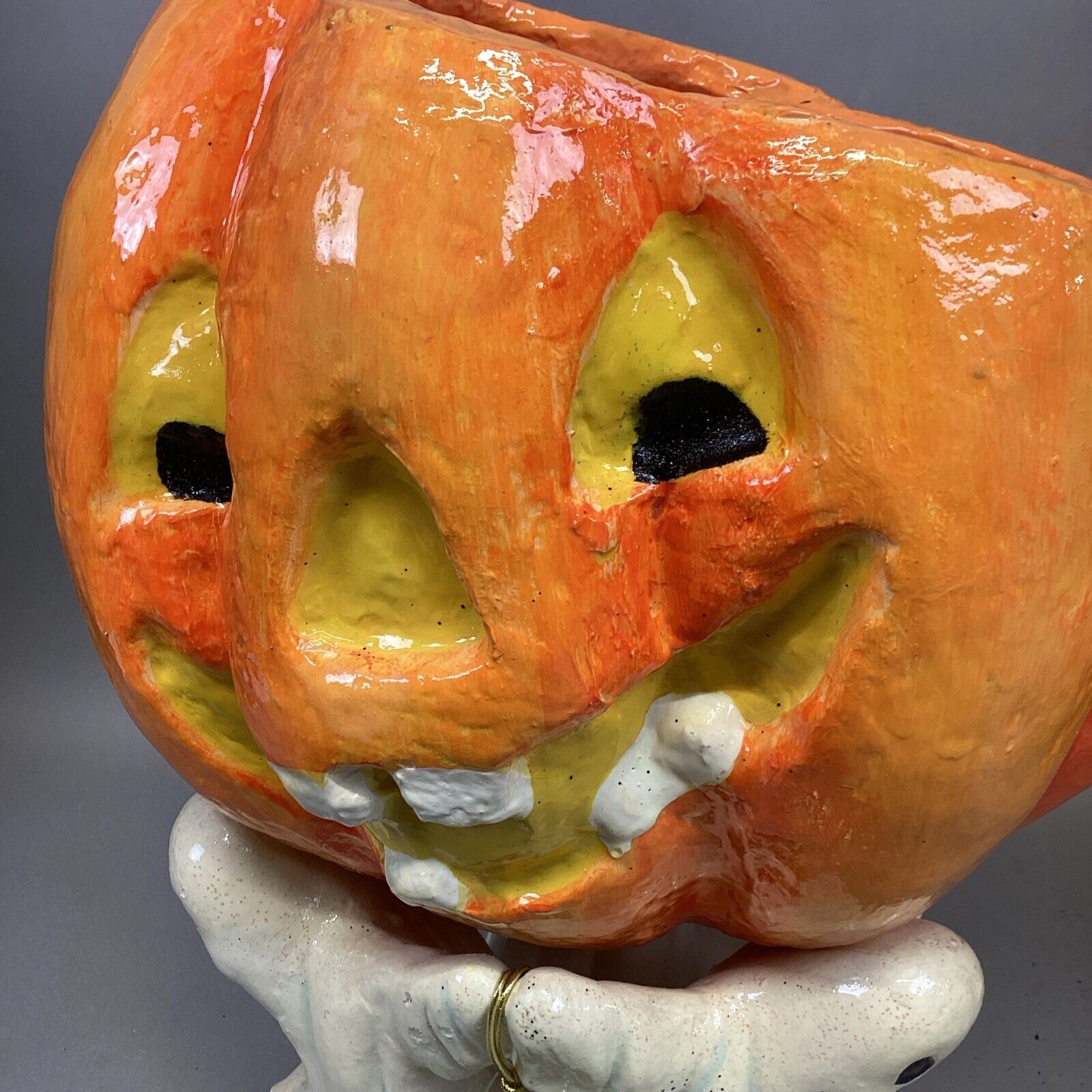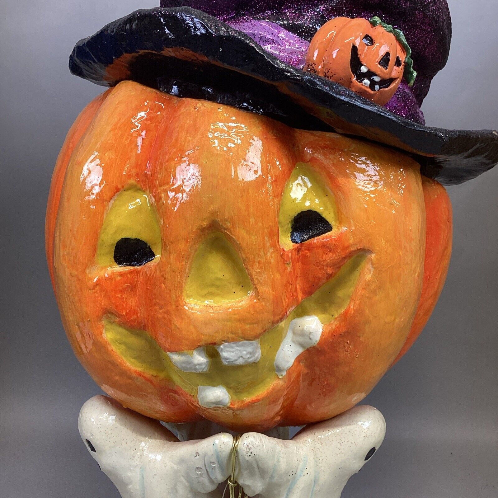 Radko Jacx The Magic Can Large Figurine W/ Tags #2010474 - 17.5”H. In used condition. The ghosts have stains on them. The Jack o lantern - under its right eye, it has a couple marks. Possibly made of resin? This item measures 17.5”Hx13”D approximately. The interior measures 9.5”Deep by 10.5” Diameter. Comes with original box. Box is in rough shape. Item will be double boxed. The box measures 20”Hx14”D