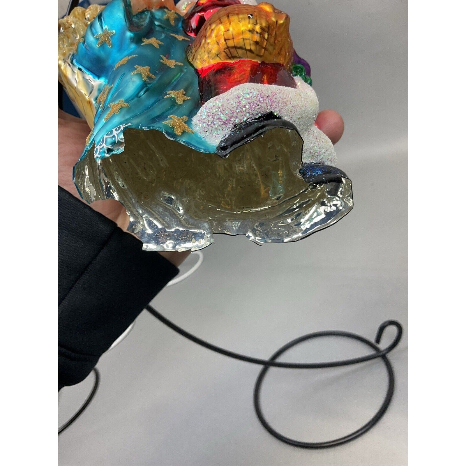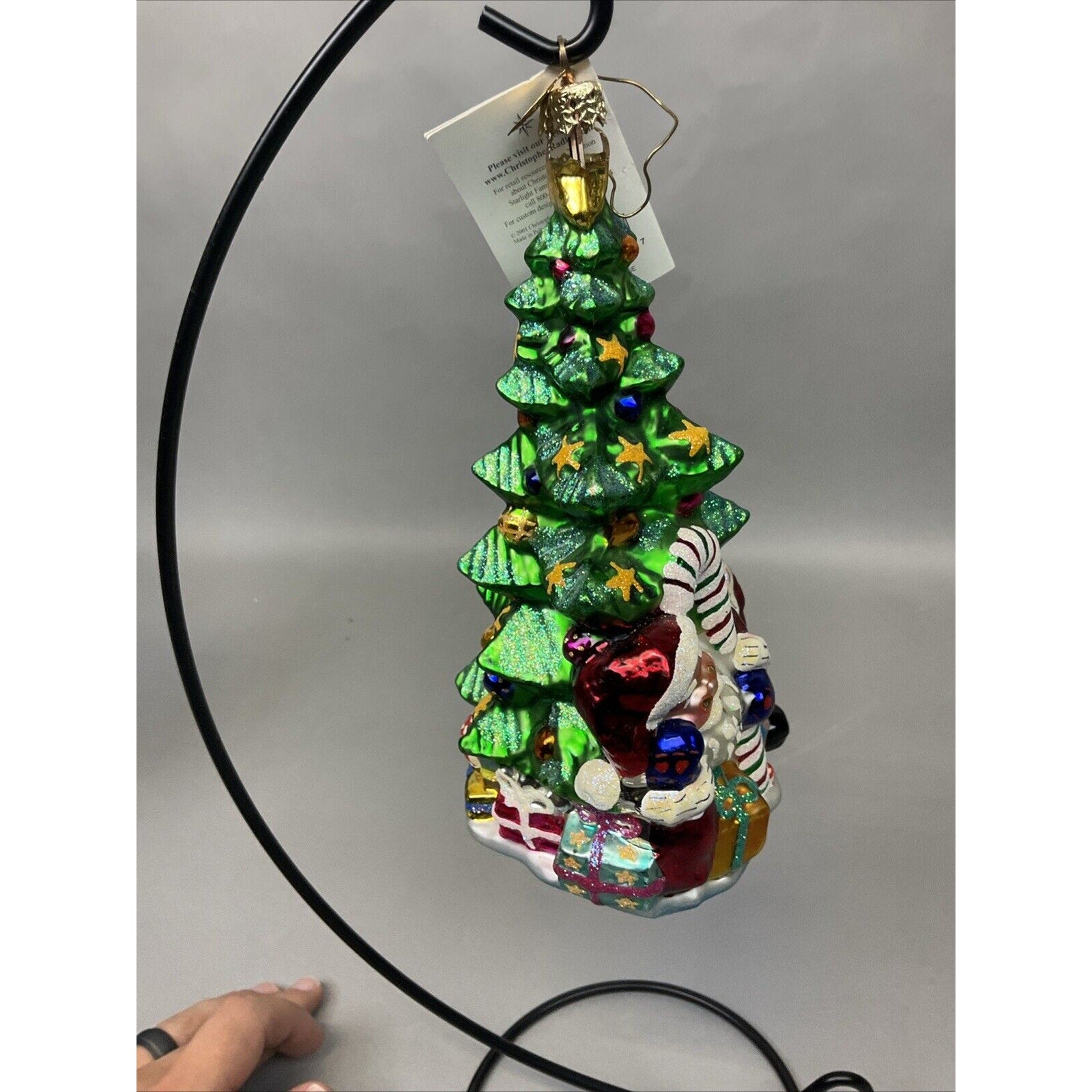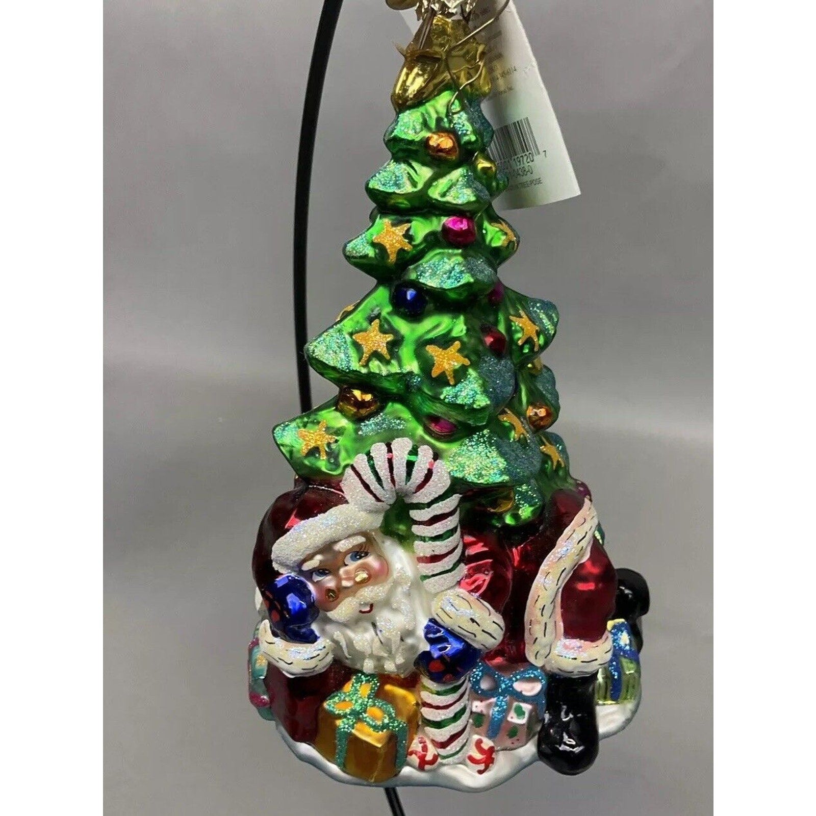 Add some holiday cheer to your Christmas tree with these beautiful Radko ornaments. Featuring Santa in a tree pose and a whispers of joy design, these large glass ornaments are perfect for any collector or holiday enthusiast. These ornaments are a must-have for anyone who loves unique and special ornaments. The set is unique and classy - Merry Christmas!