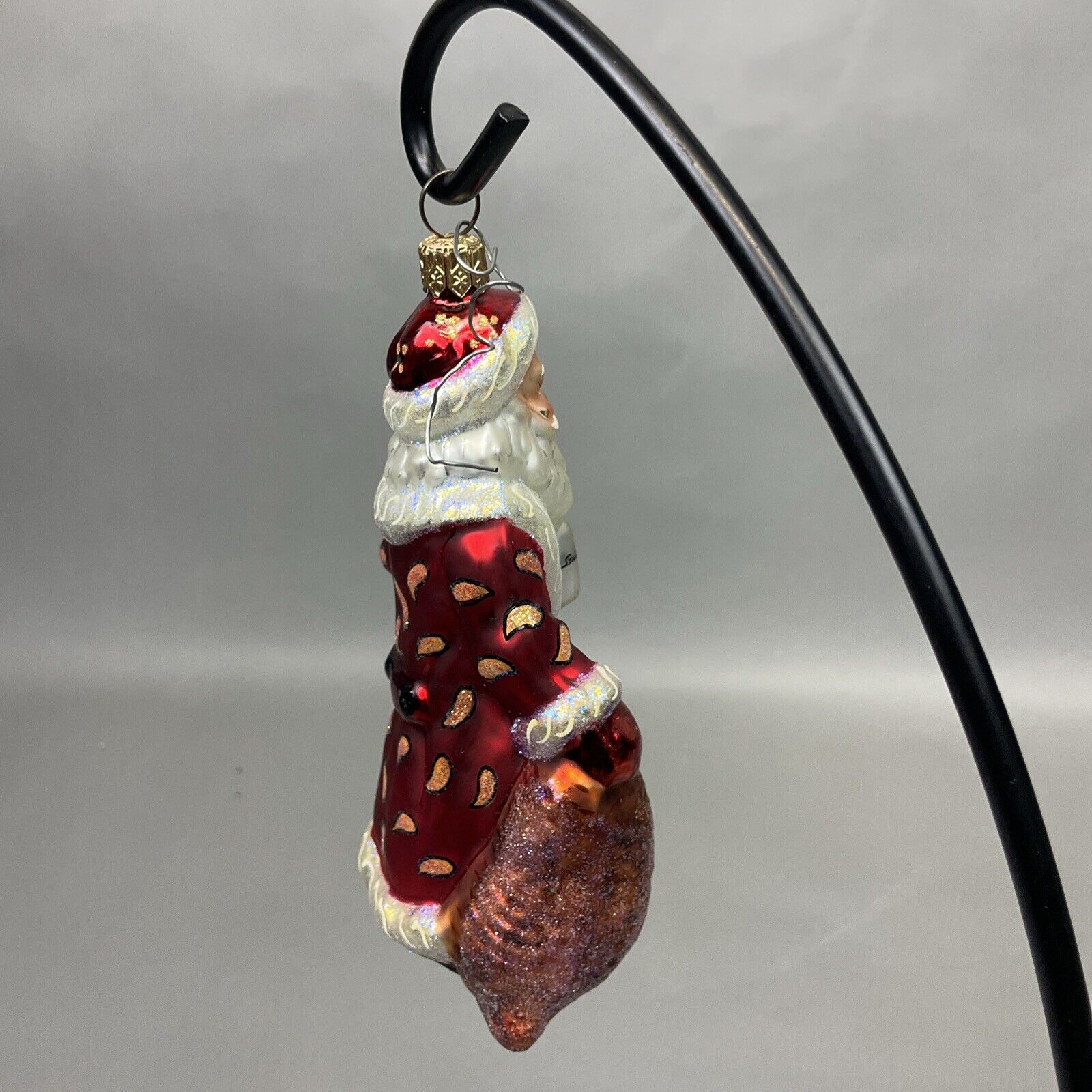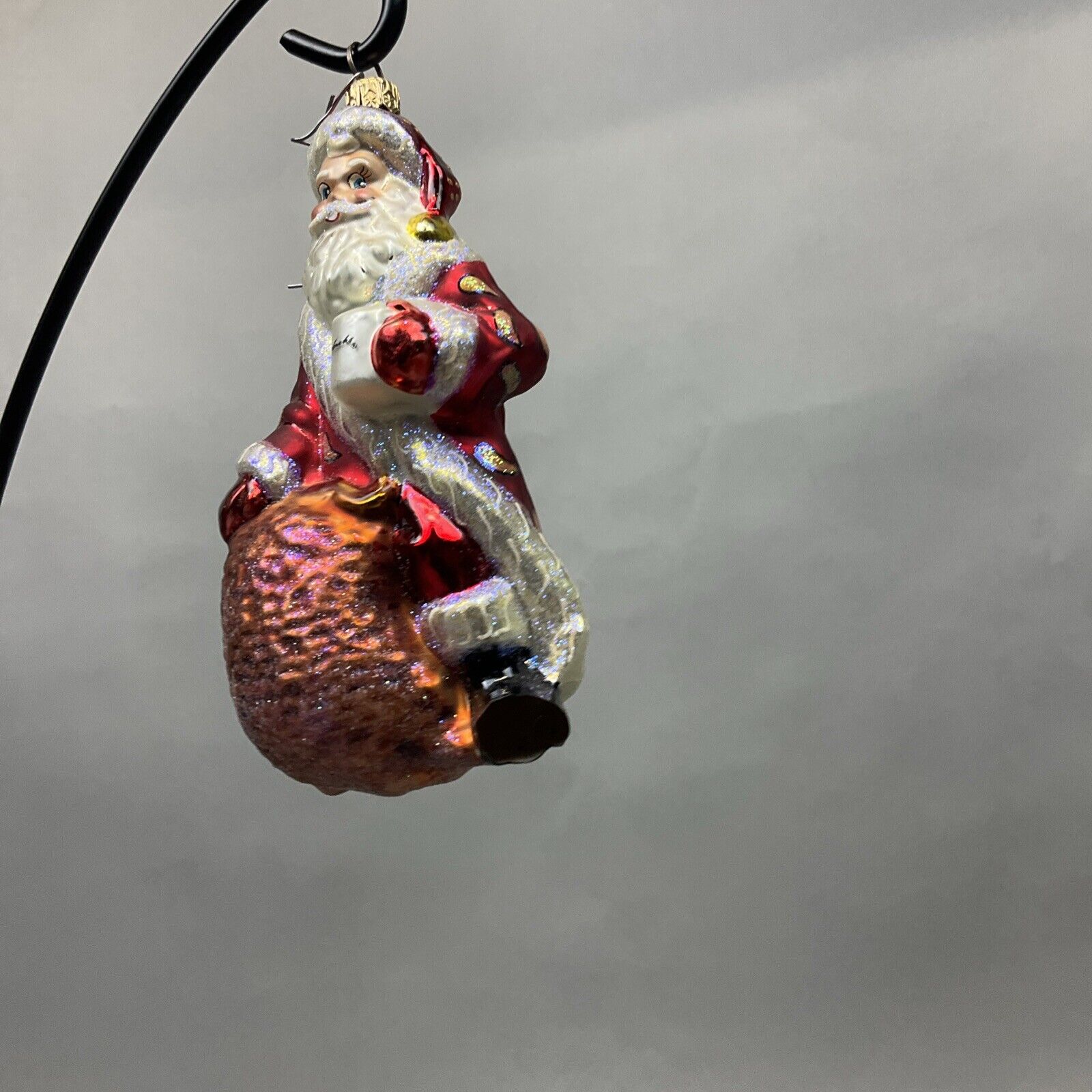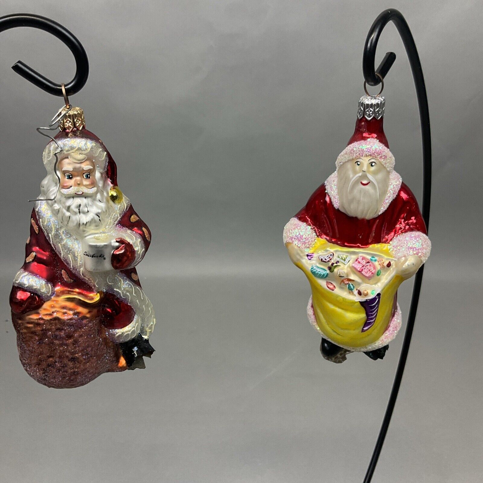 Add a touch of holiday charm to your Christmas tree with these Christopher Radko ornaments. Featuring a Santa design with a gold bag of toys and a Starbucks exclusive Santa Java Glass. These ornaments are perfect for collectors and enthusiasts alike. The glass material and intricate details make them great pieces in any collection. Celebrate the holidays in style with these unique and festive ornaments.