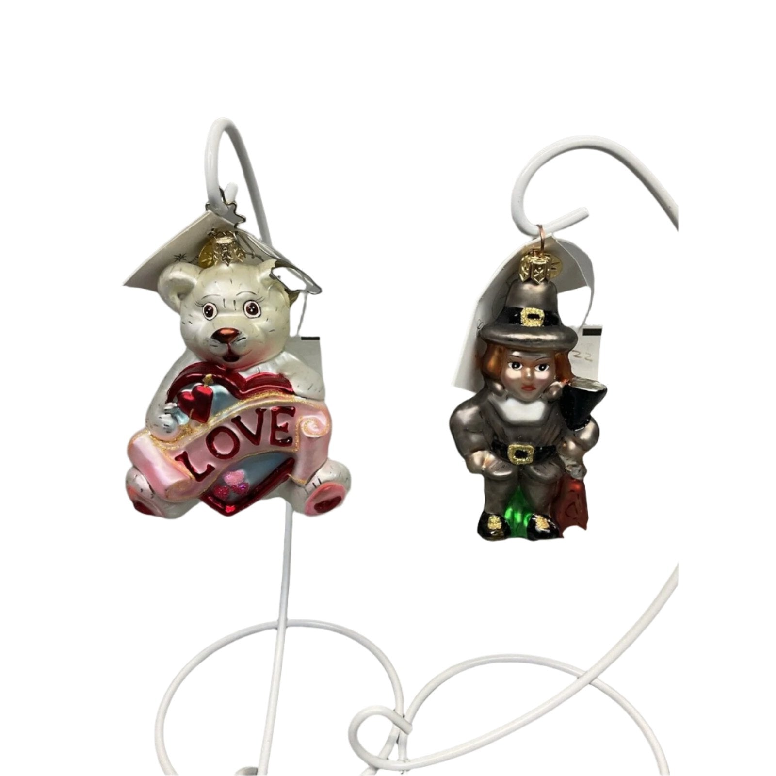 Radko “Teddy Valentine" + “We Gather Together” Christmas Ornaments / Damaged