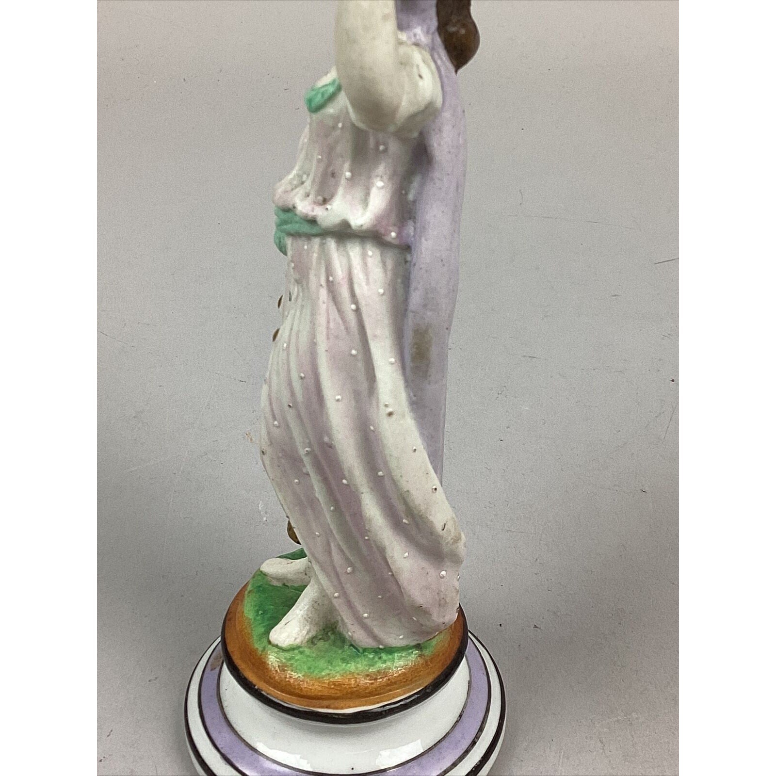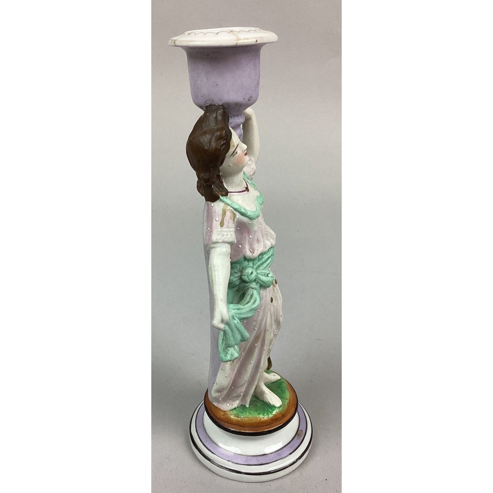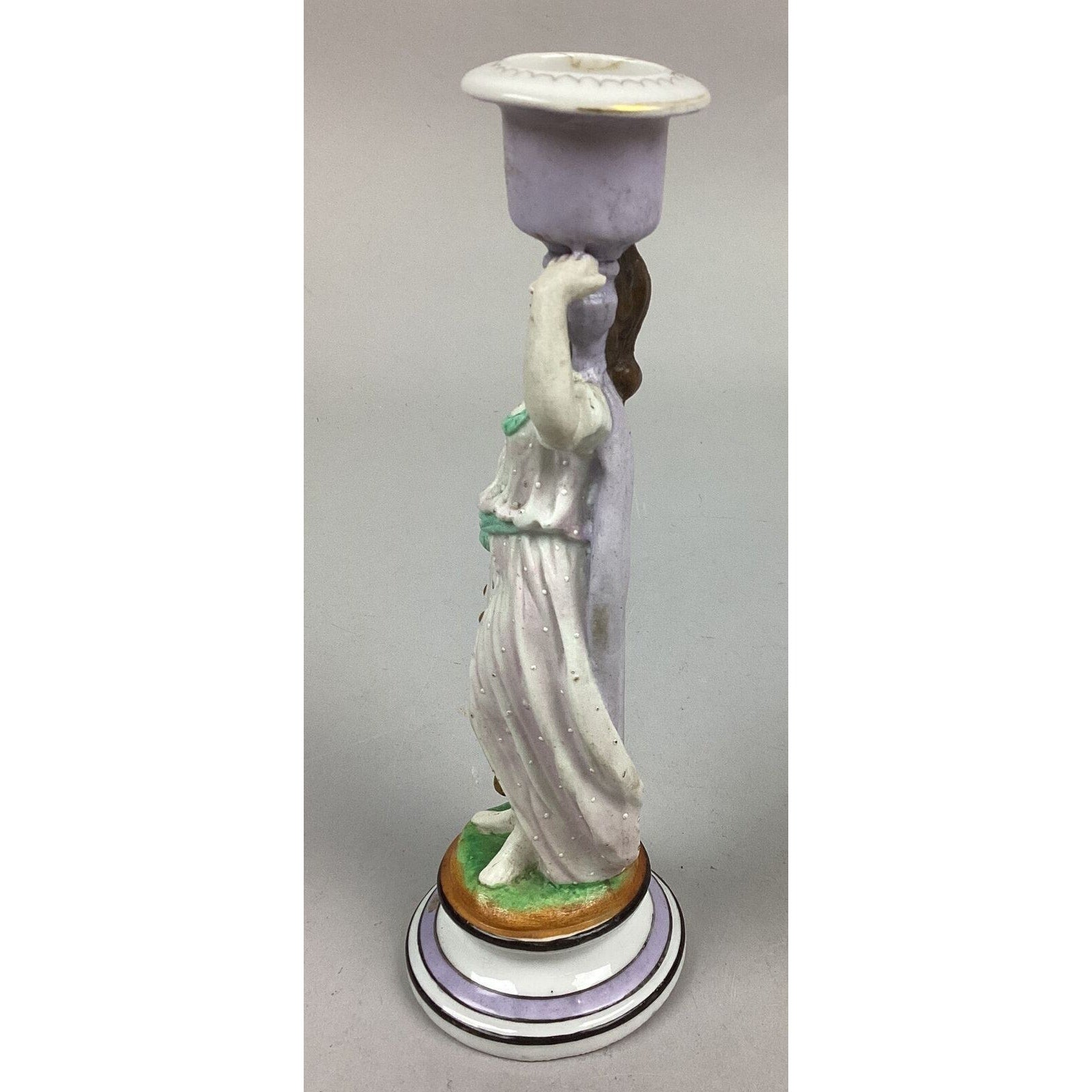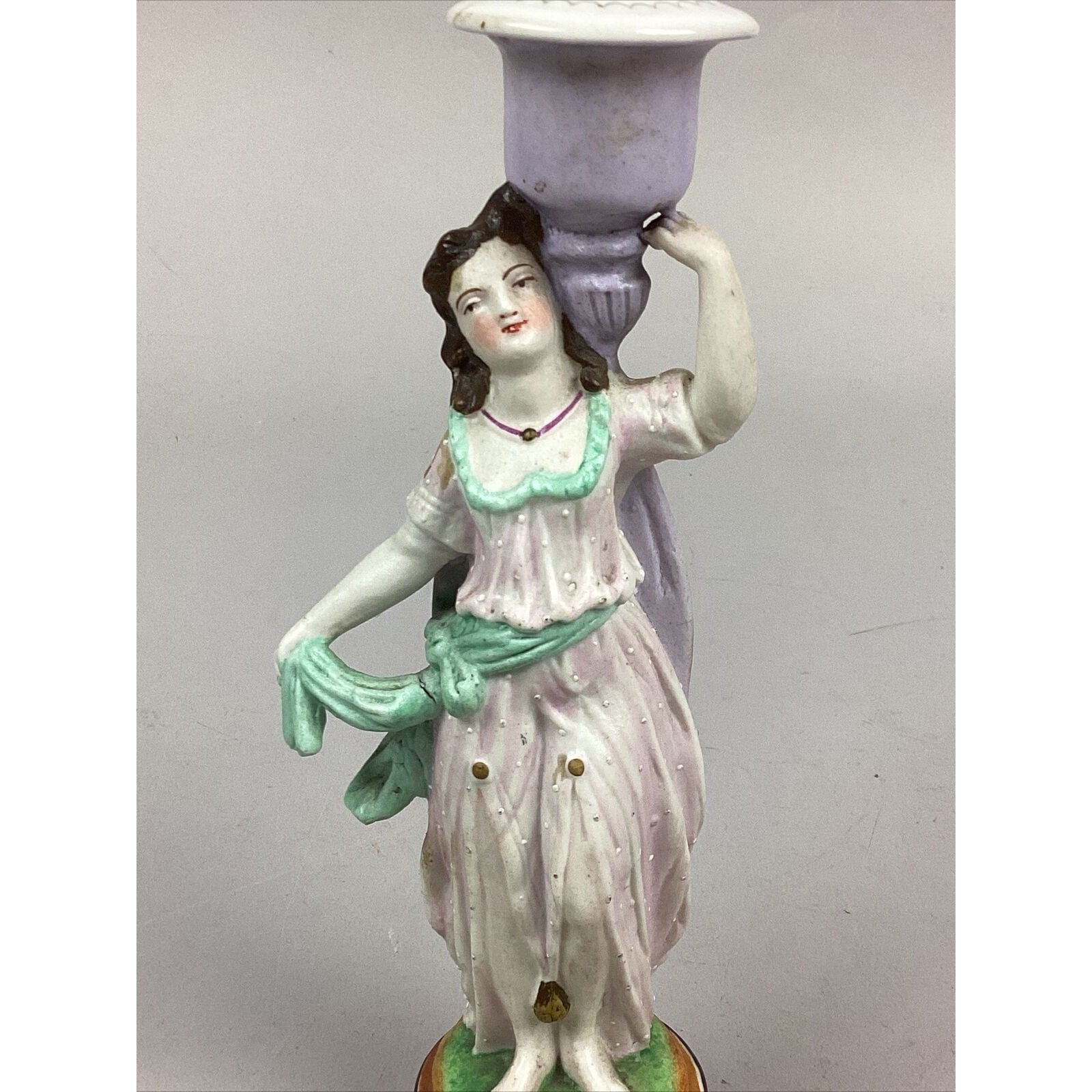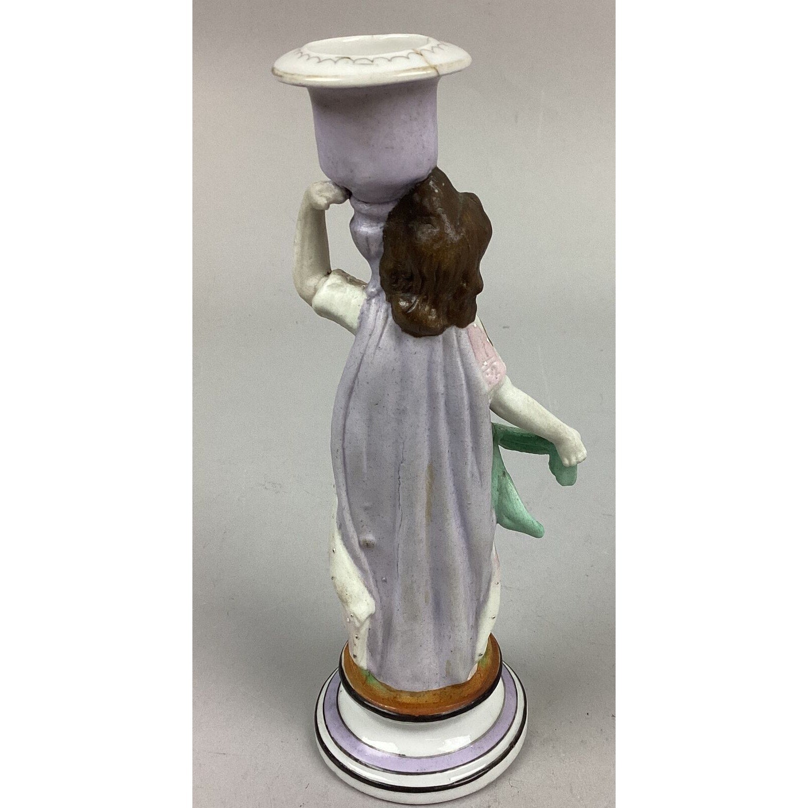 Rare Antique English Derby Hard Paste Porcelain Woman & Candlestick Holder - 8”