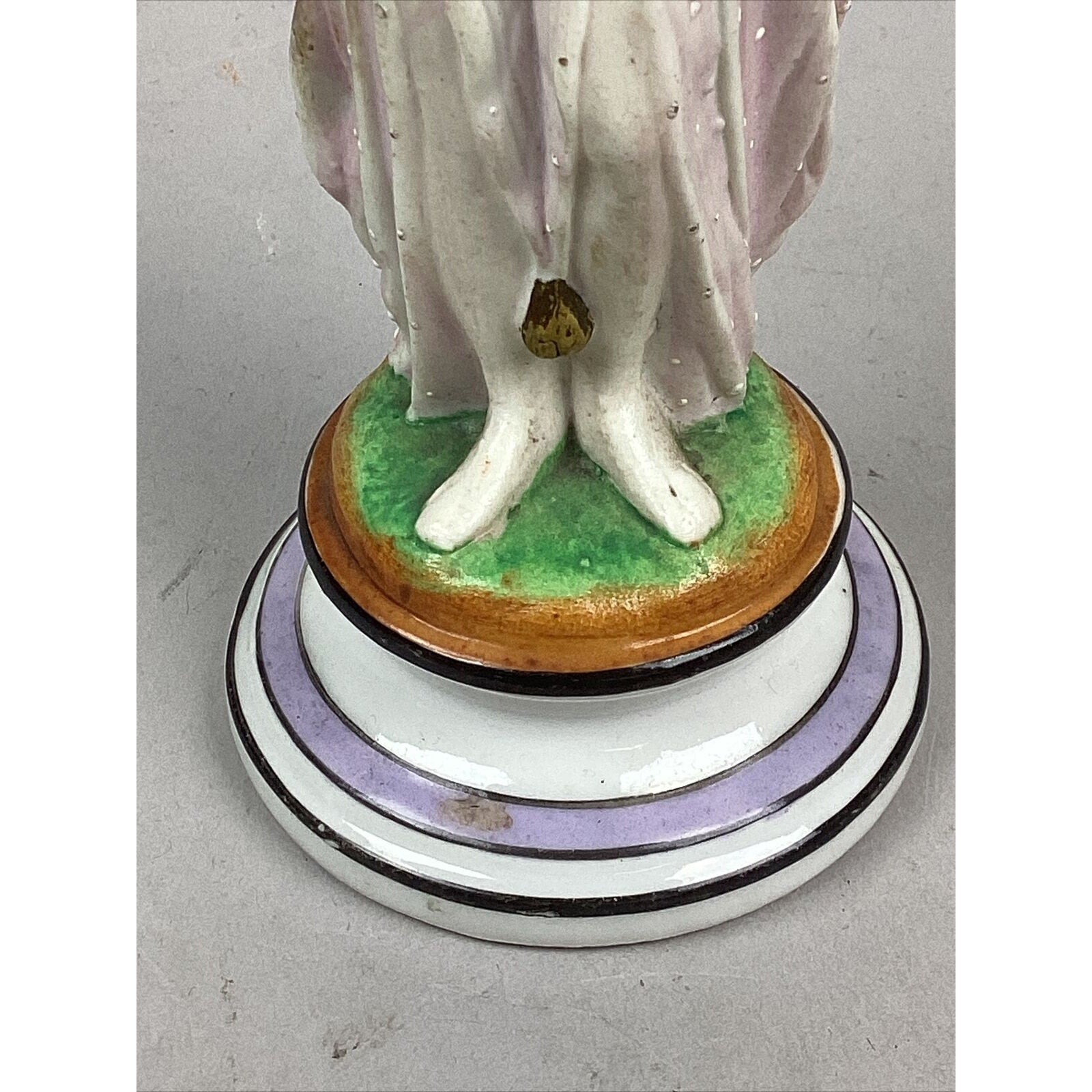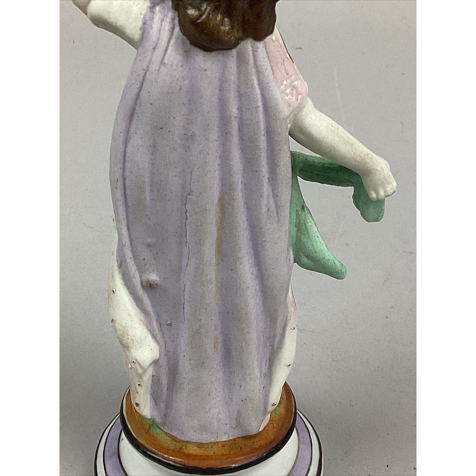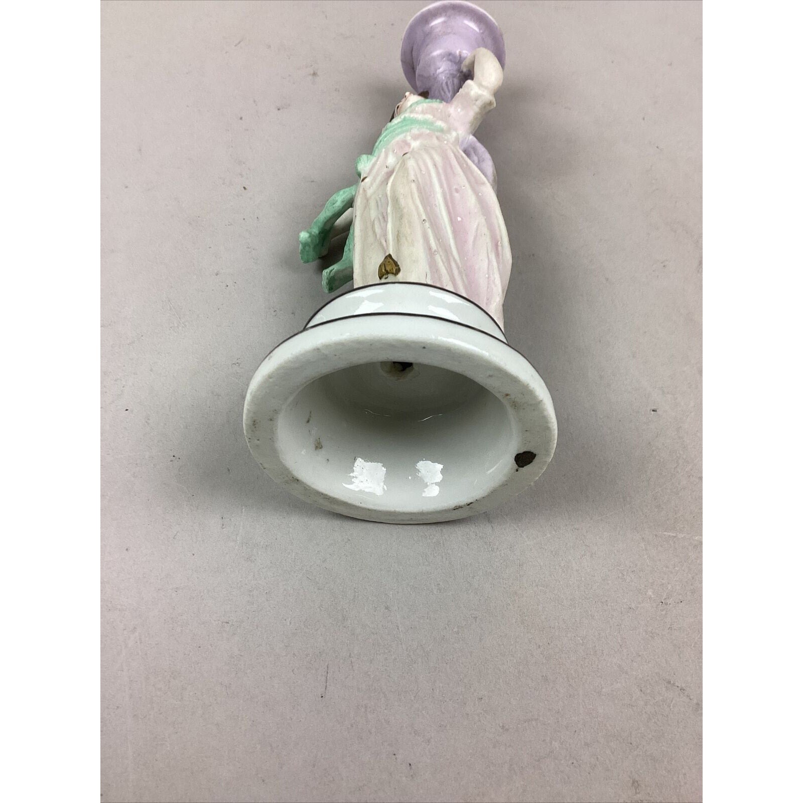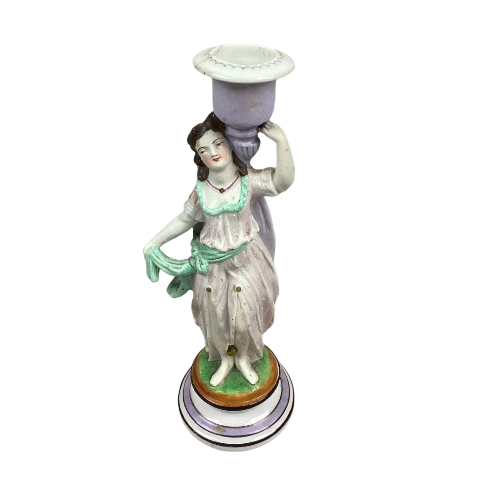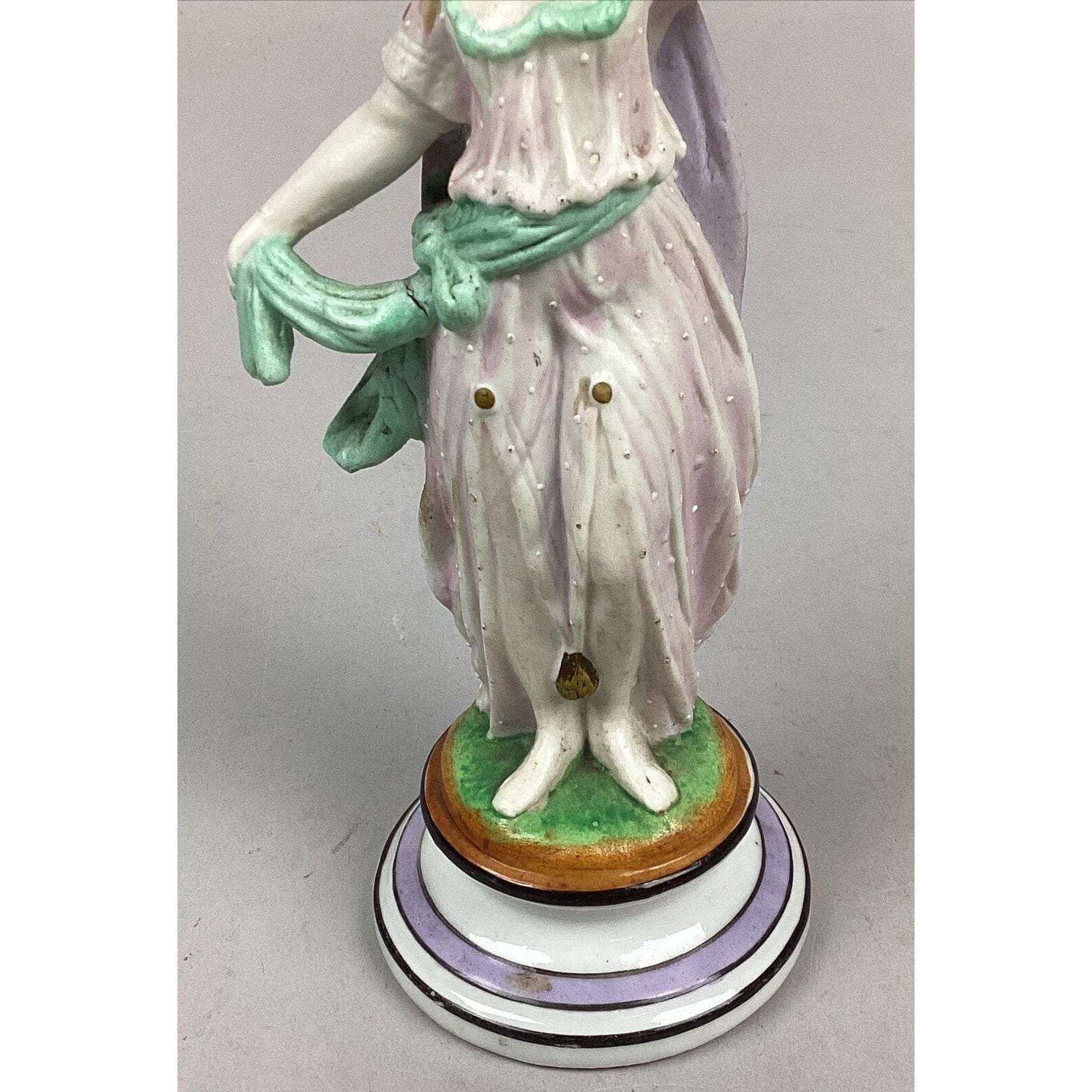 Rare Antique English Derby Hard Paste Porcelain Woman & Candlestick Holder - 8”