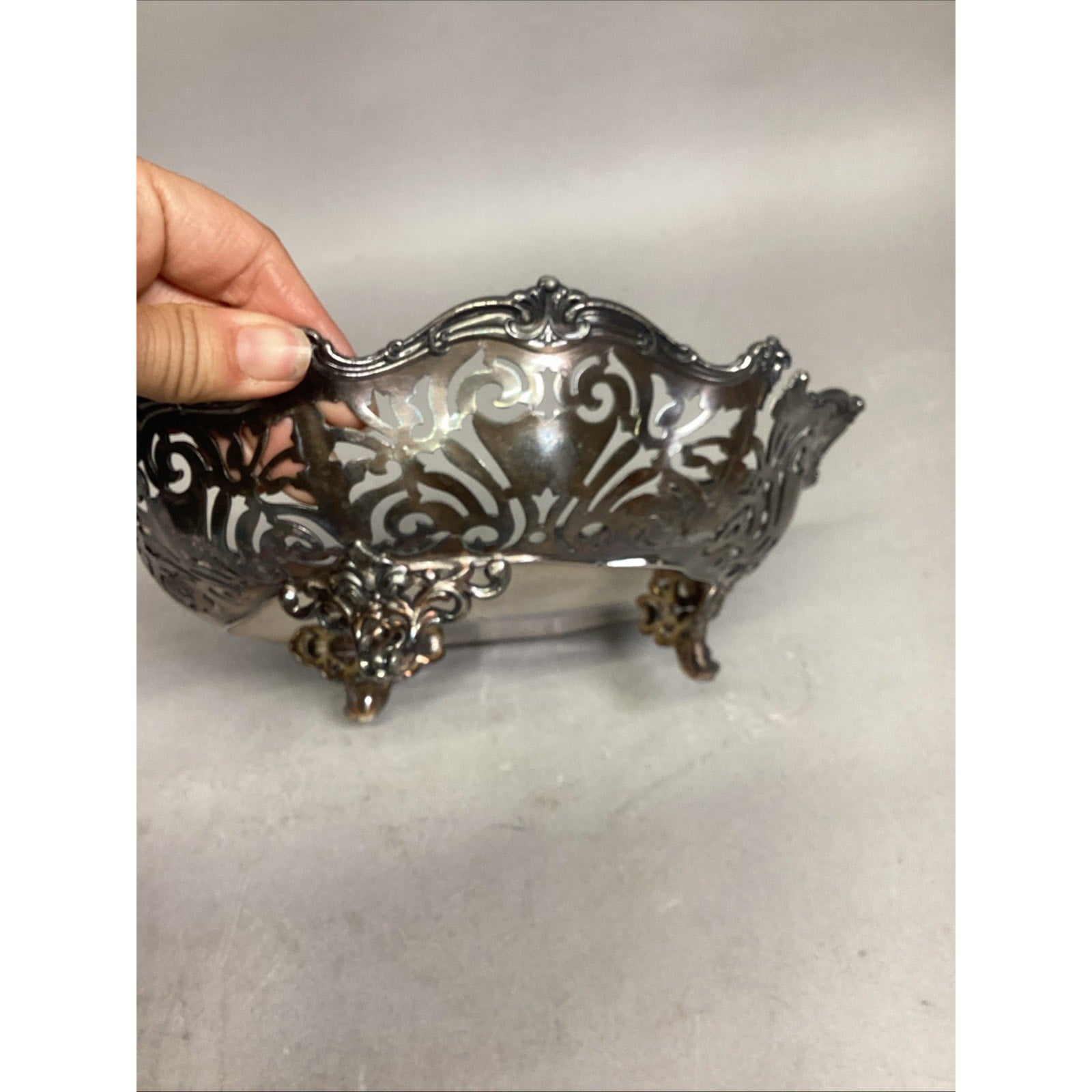 Reed & Barton Silverplate Pierced Footed Fruit Bowl #4865. In good, used condition. Could use a good polishing which will bring the shine to it. This measures 3”Hx9”Dx2.5” Deep