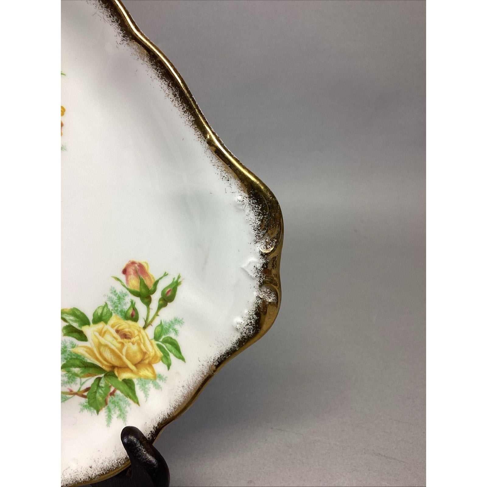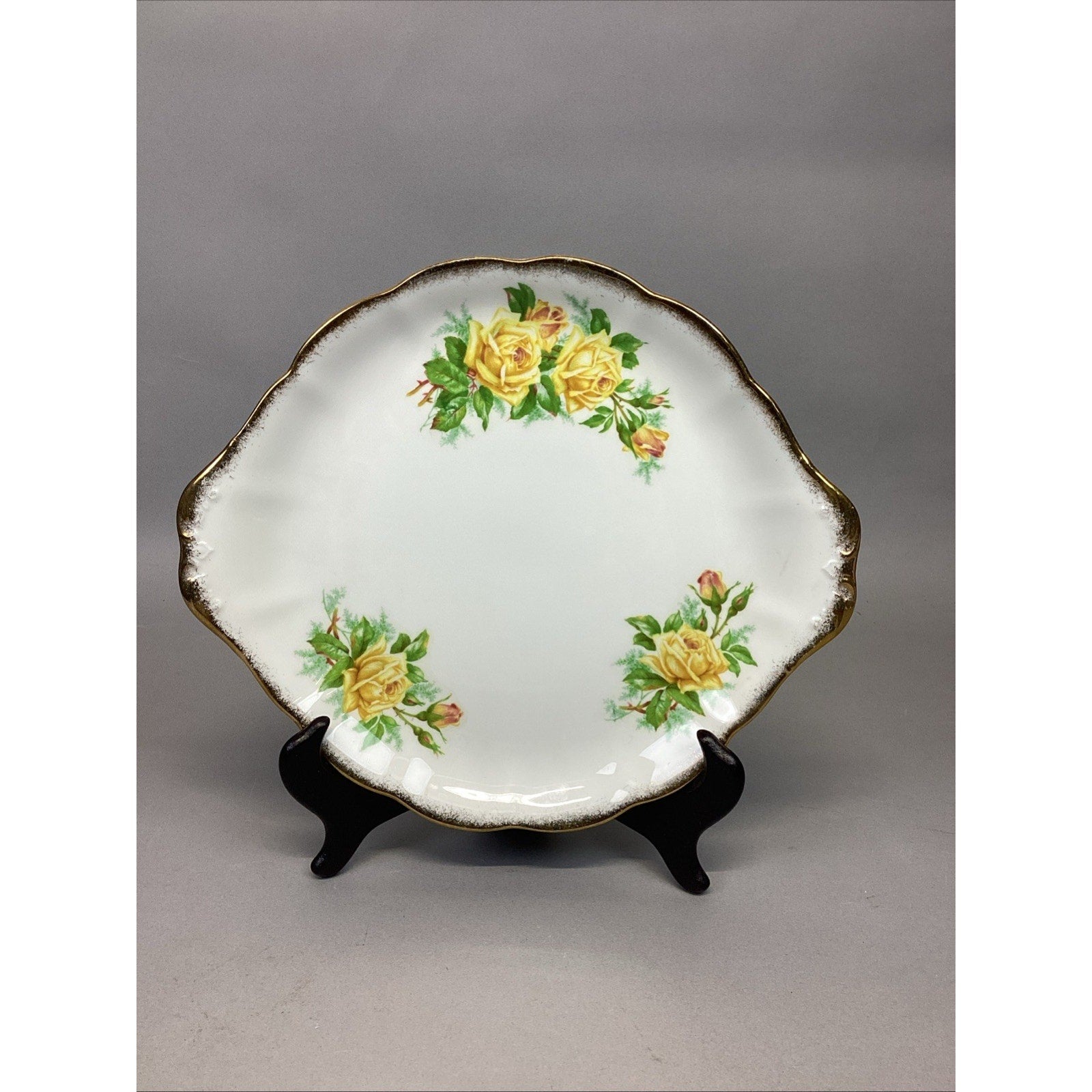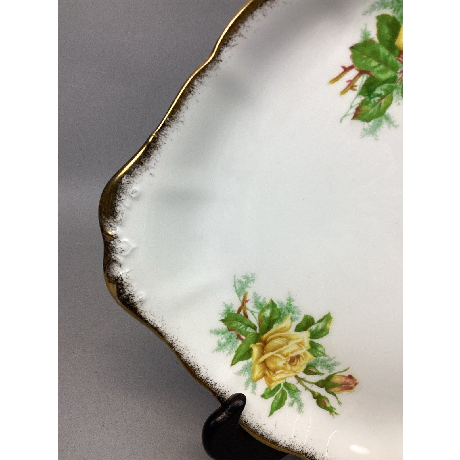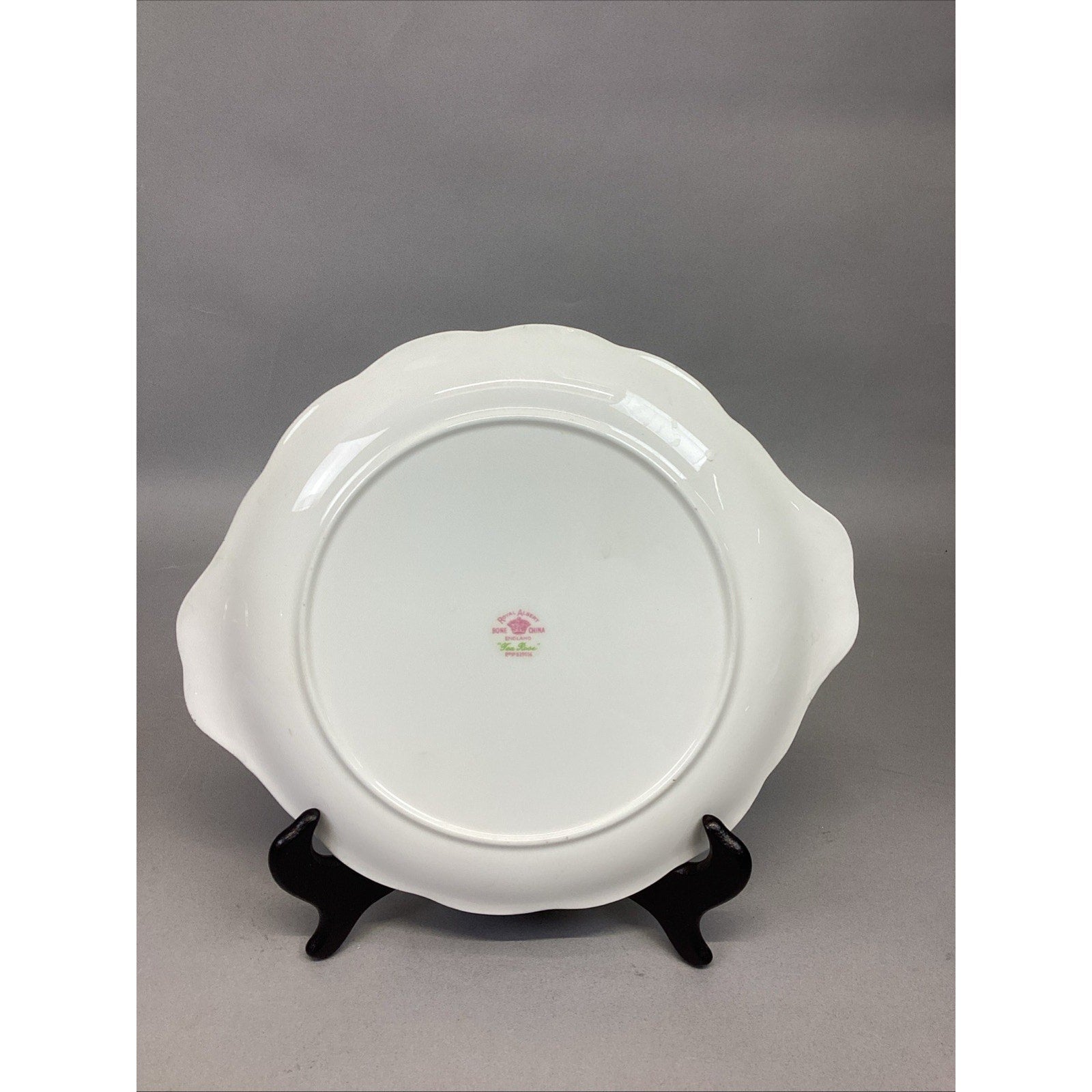 Royal Albert Tea Rose Serving Plate - England - Bone China. In good condition overall. Has a few utensil marks on the bottom from normal use. Measures 10.5x9”. Plate holder is NOT included.