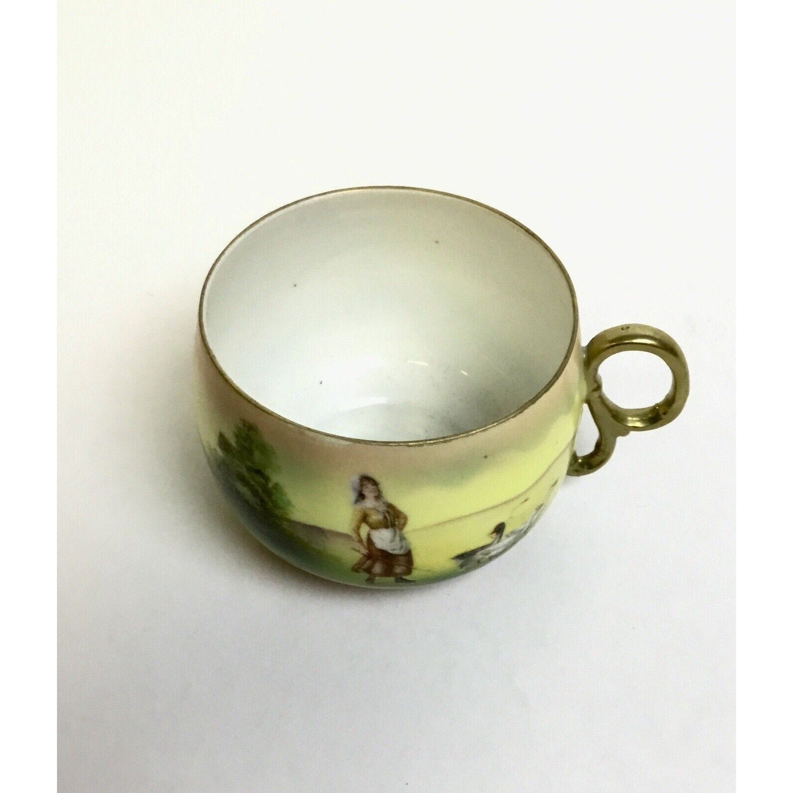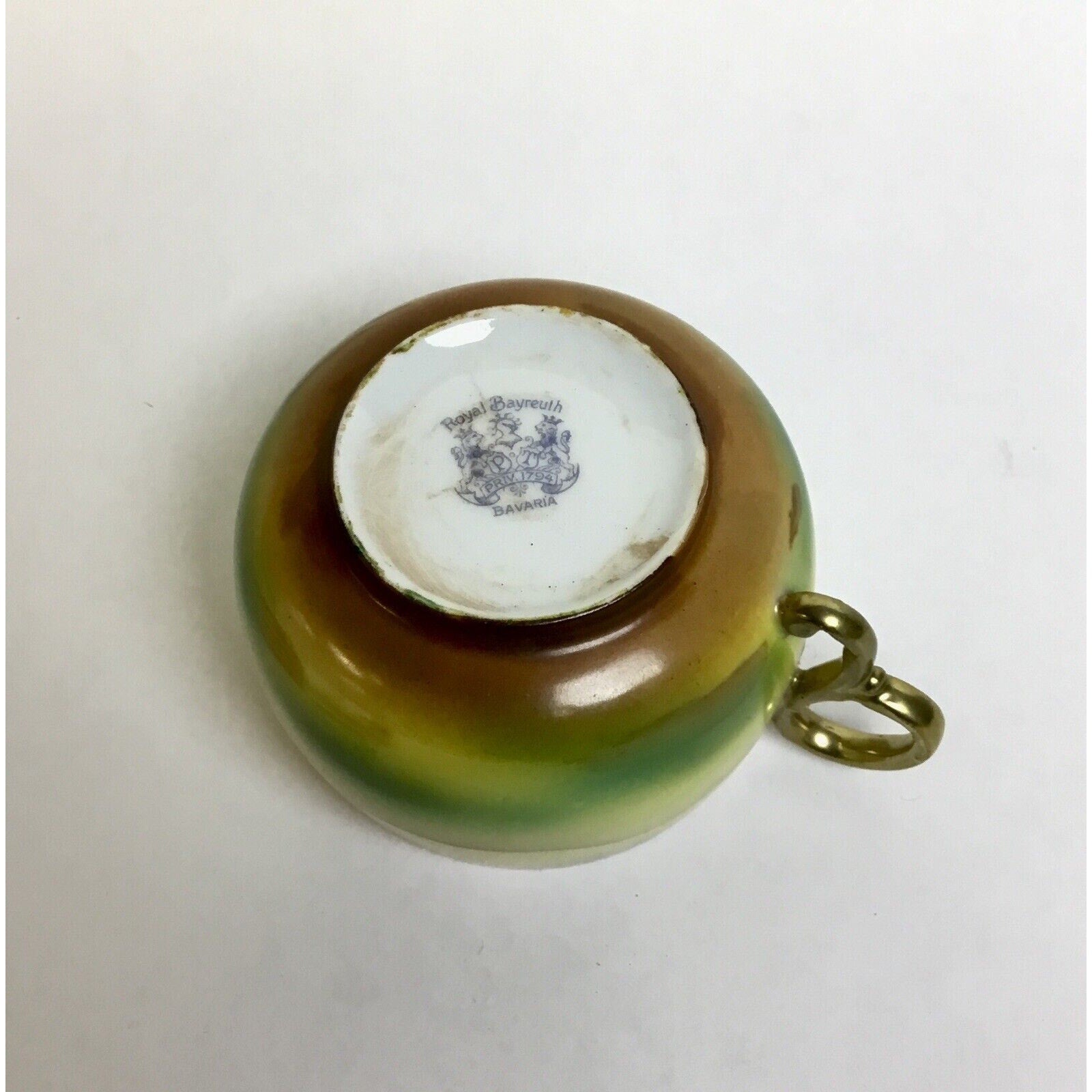 This beautiful Royal Bayreuth cup and saucer set features a charming farm scene pattern with vibrant multicolor accents. Made of high-quality porcelain in Bavaria, Germany, this set includes a cup, saucer and plate perfect for collectors. Its unique design and fine craftsmanship make it a great addition to any collection or an elegant serving option for your favorite beverage.