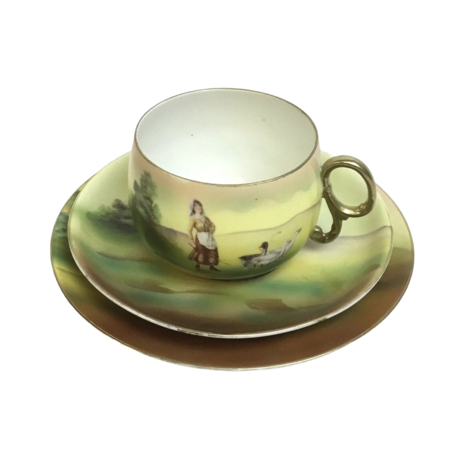 Royal Bayreuth Farm Scene Cup, Saucer And Plate