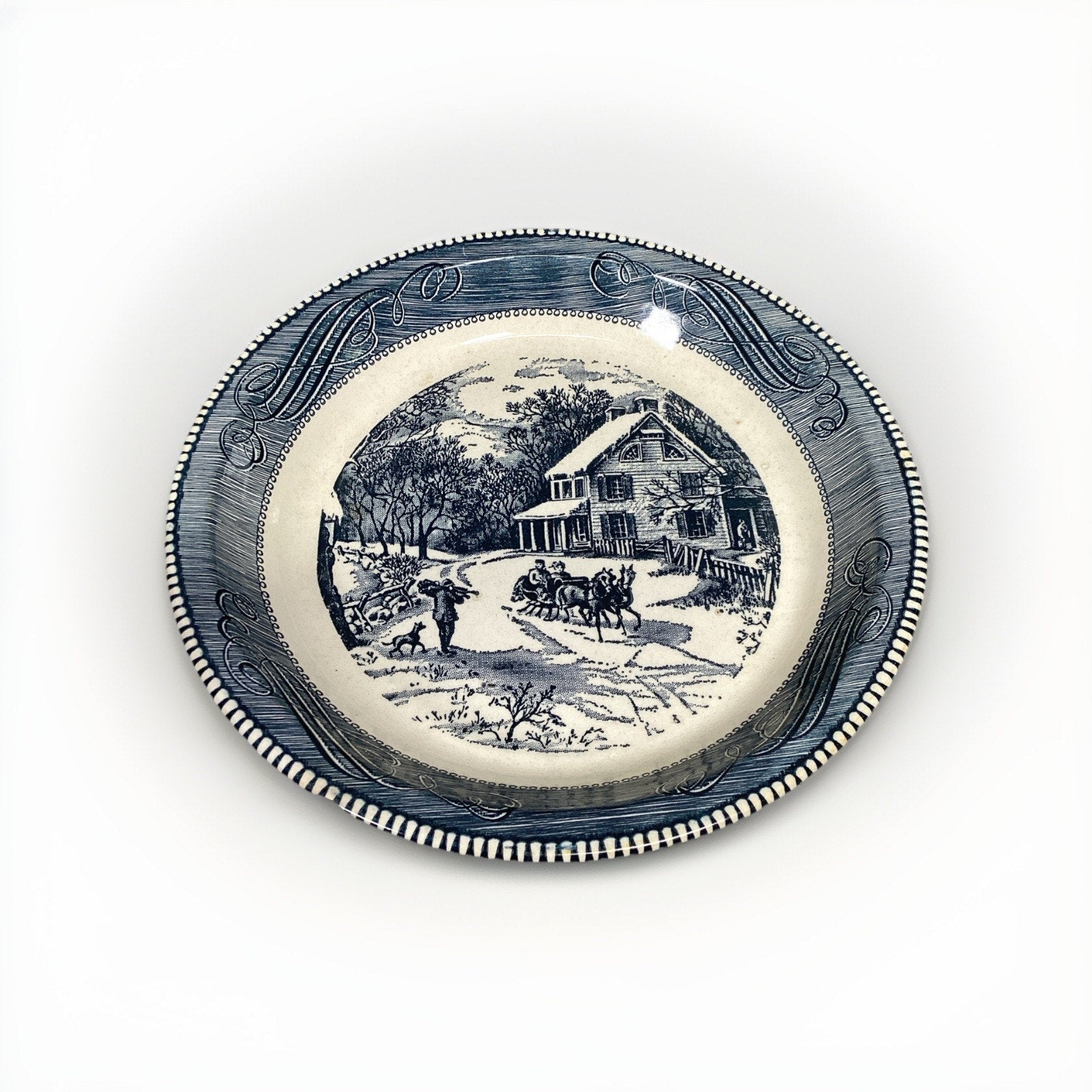 Royal China By Jeanette Blue Currier & Ives "Snowy Morning" 10" Pie Plate