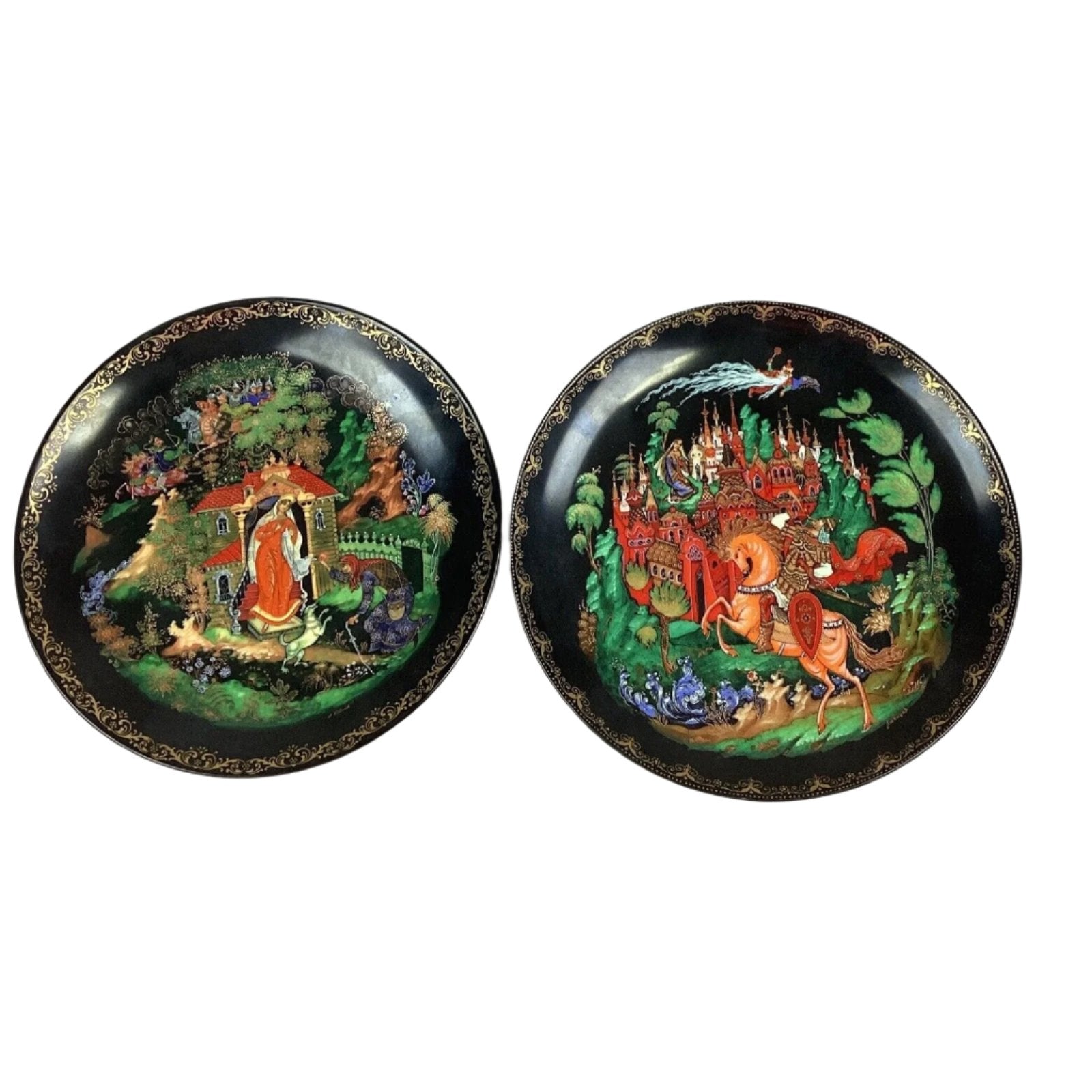 Set Of 2 Bradex 1988 USSR Russian Hand Painted Lacquer Plates