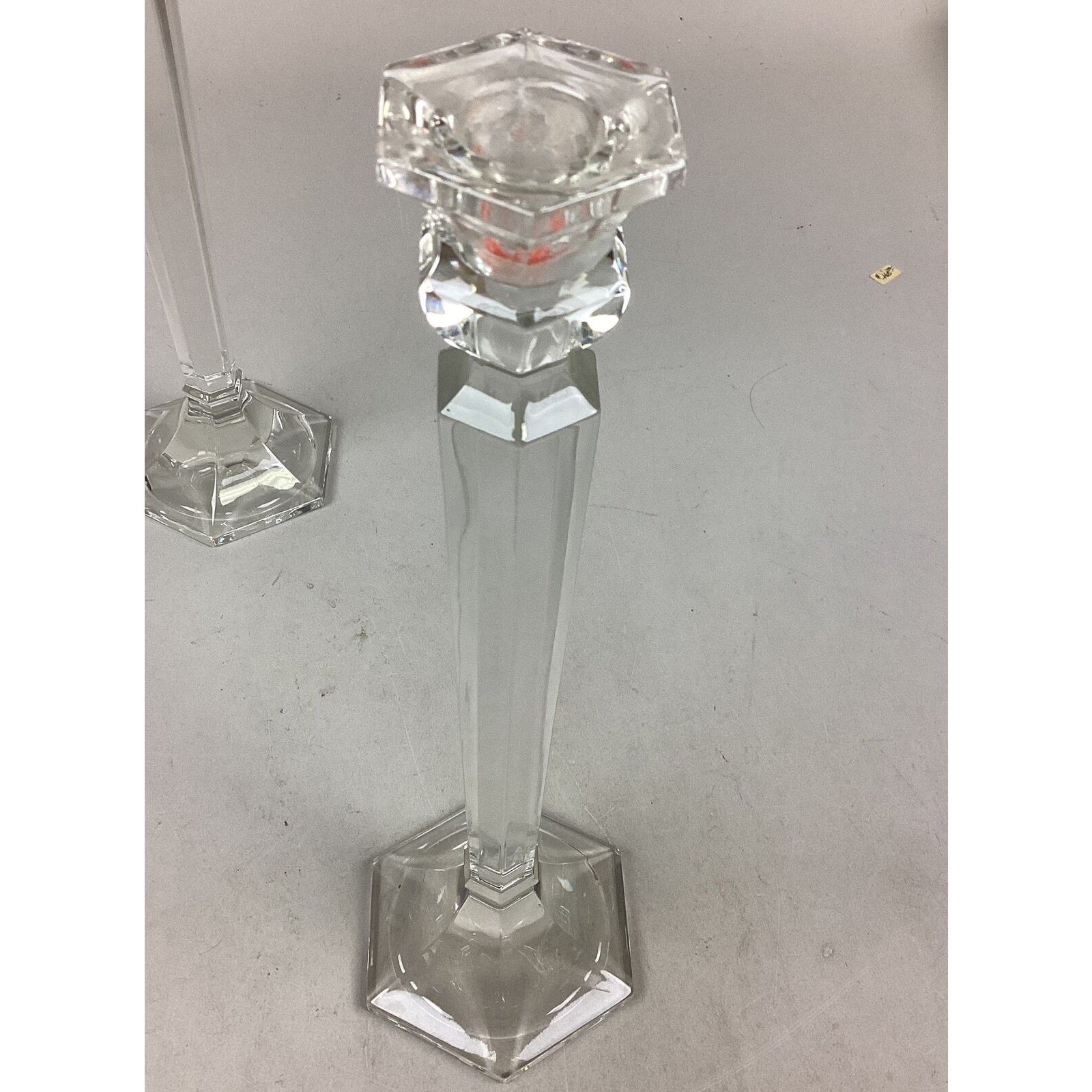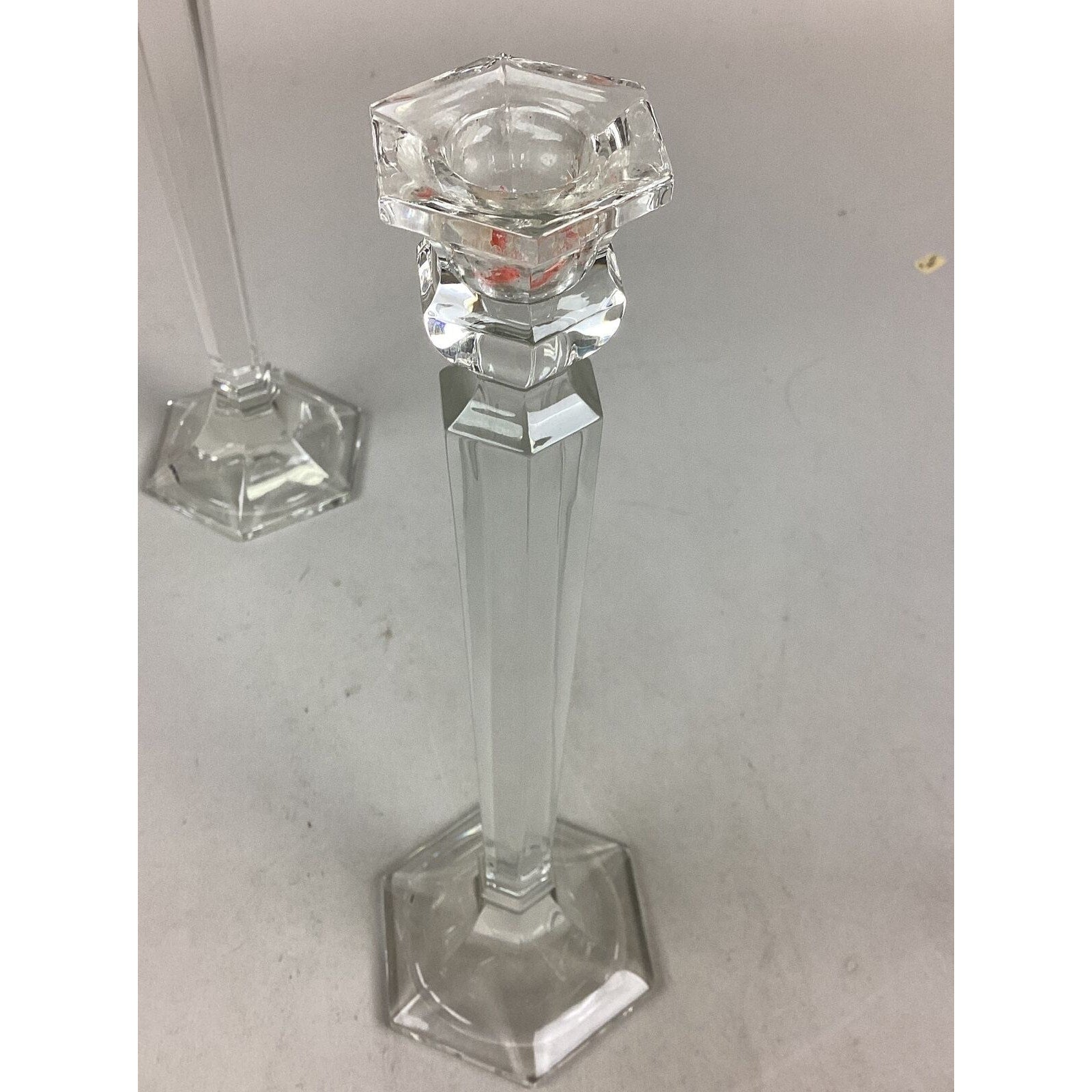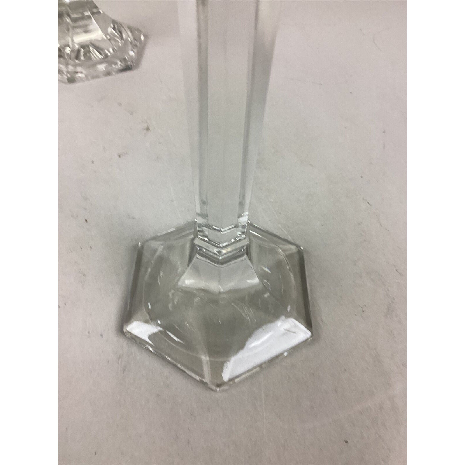 Set Of 2 Elegant Clear Glass Candlestick Holders With Hexagon Base - 11.5”