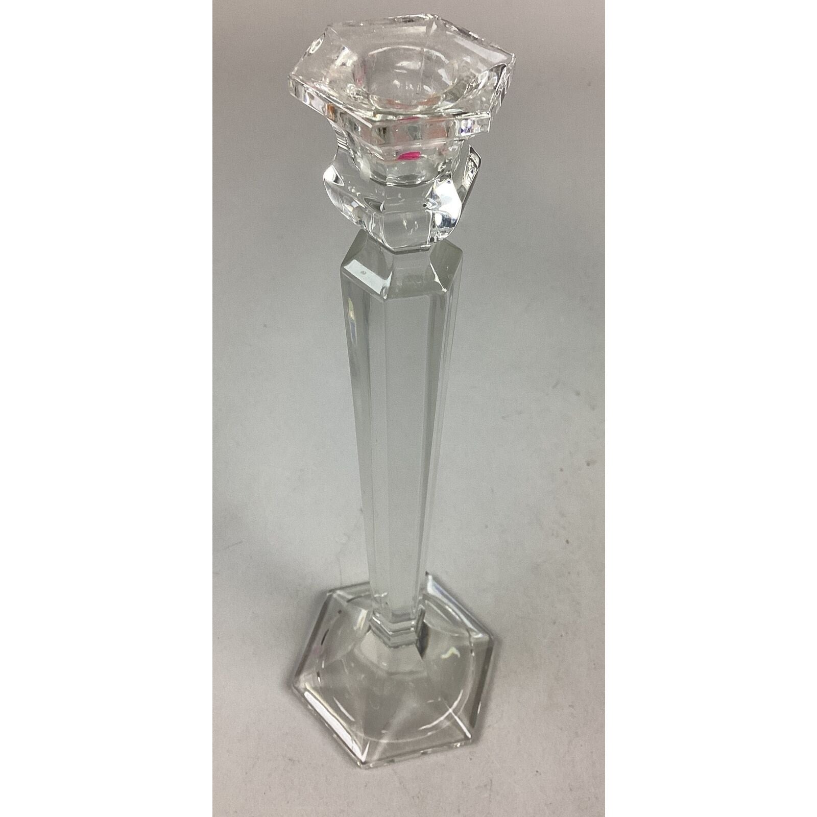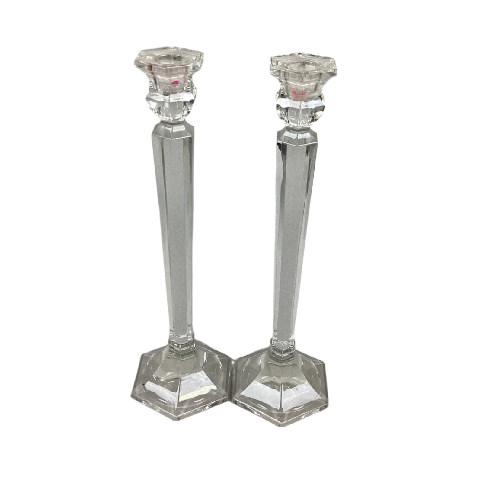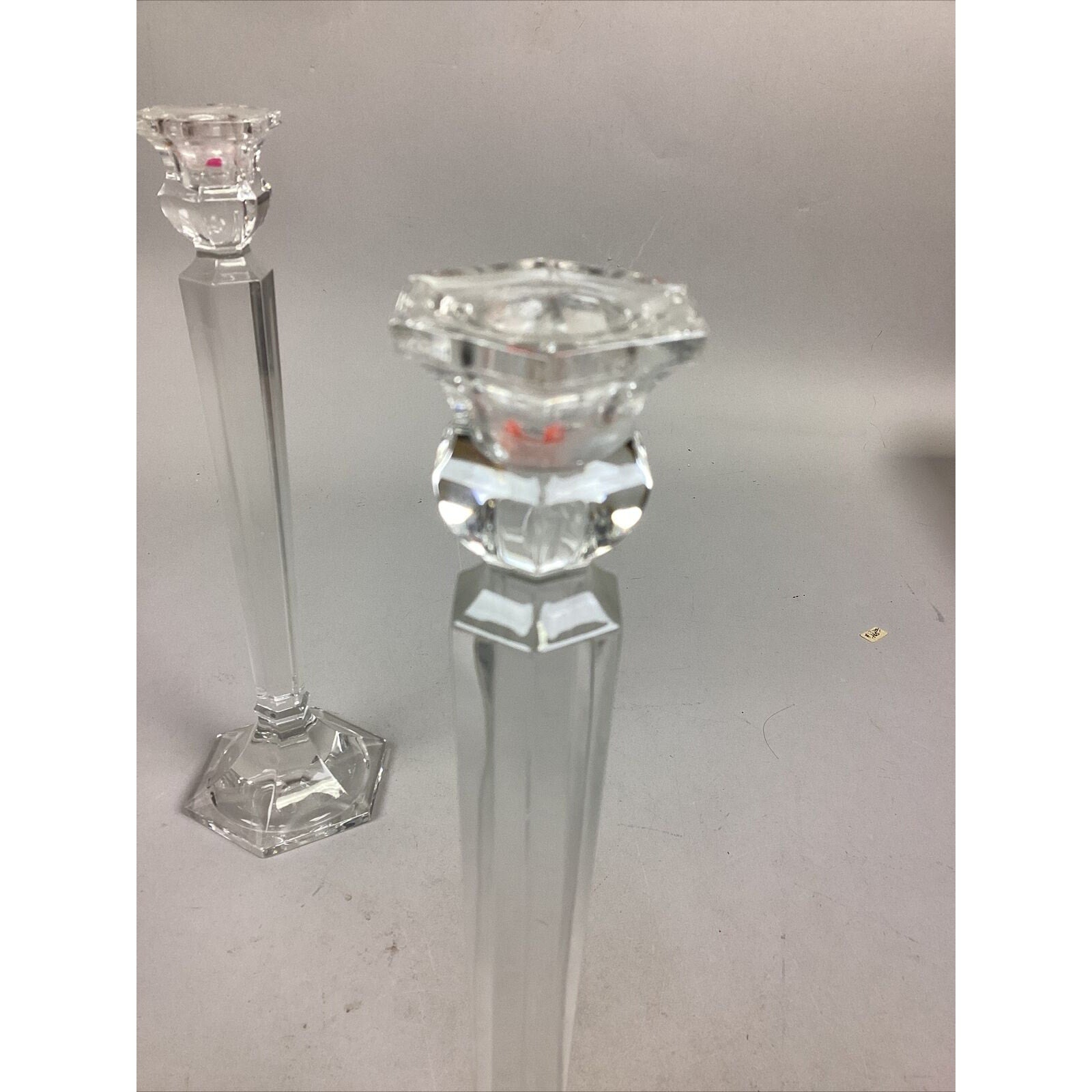 Set Of 2 Elegant Clear Glass Candlestick Holders With Hexagon Base - 11.5”