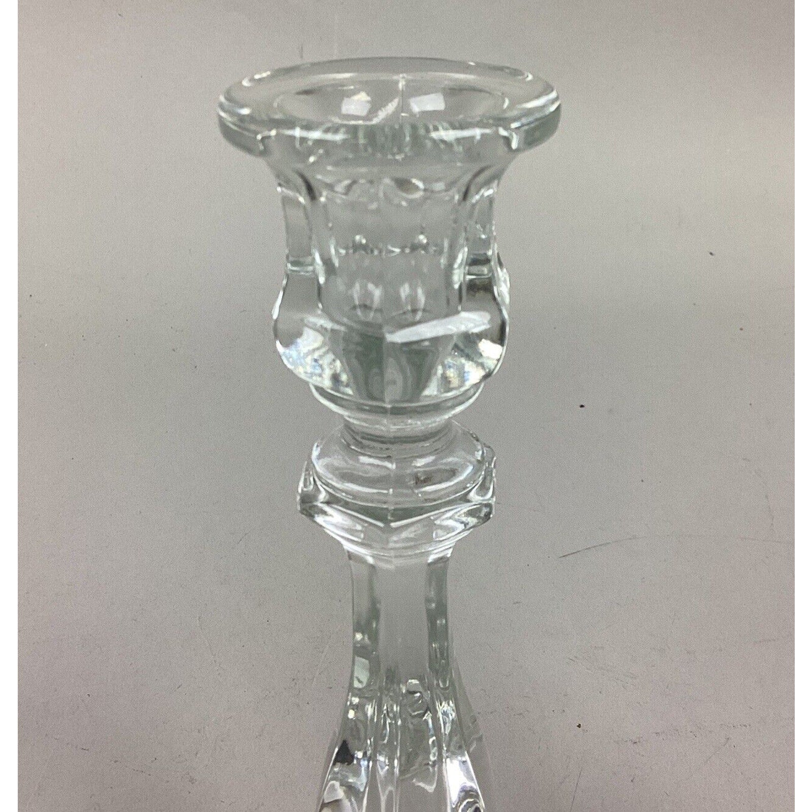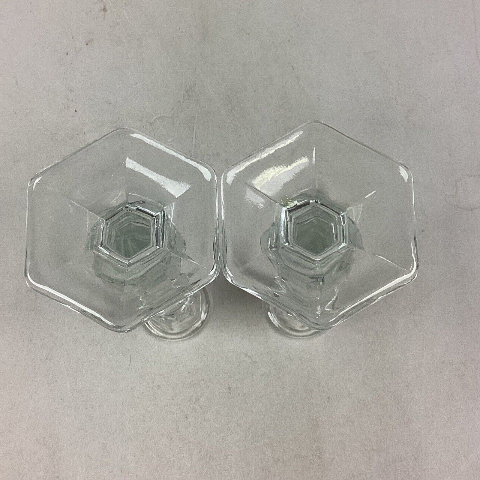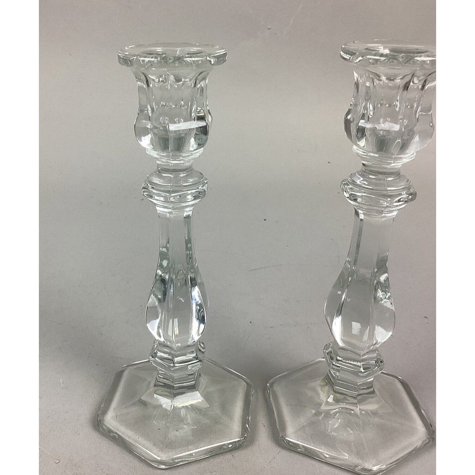 You are bidding on a pair of 2 candlestick holders. They are clear glass and measure 7.5”H