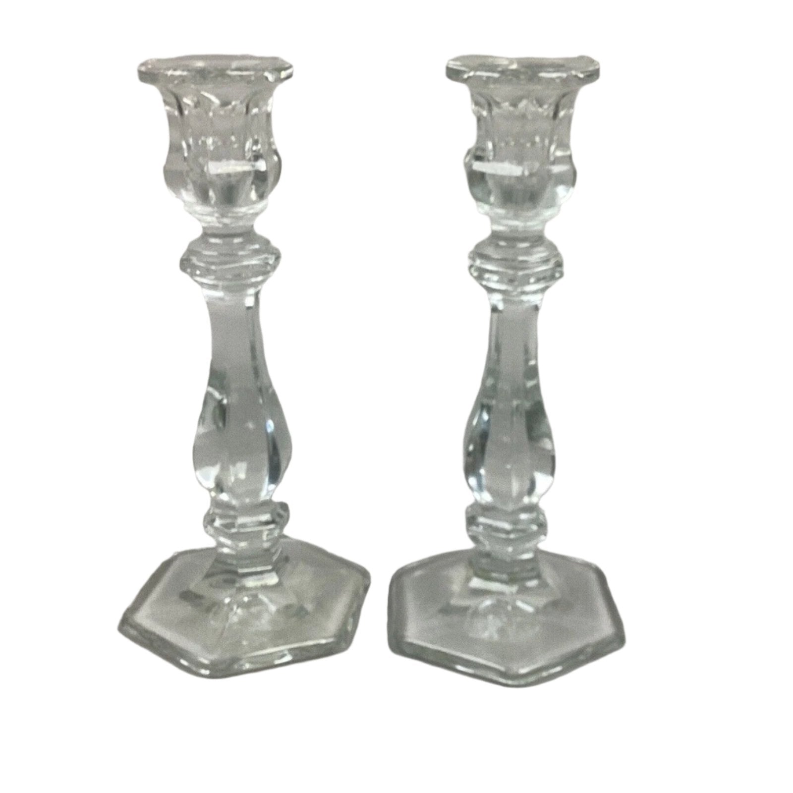Set Of 2 Glass Candlestick Holders - 7.5”H