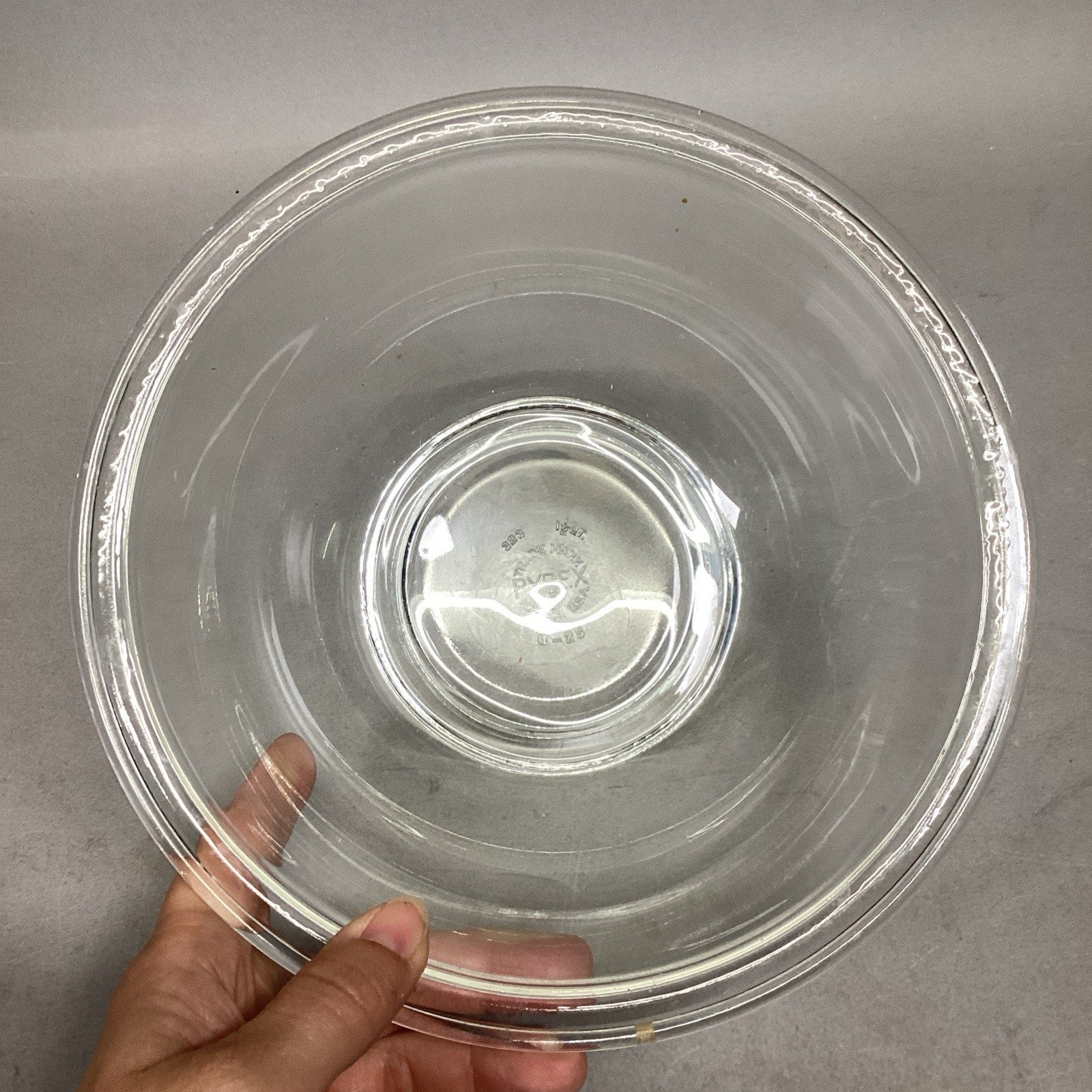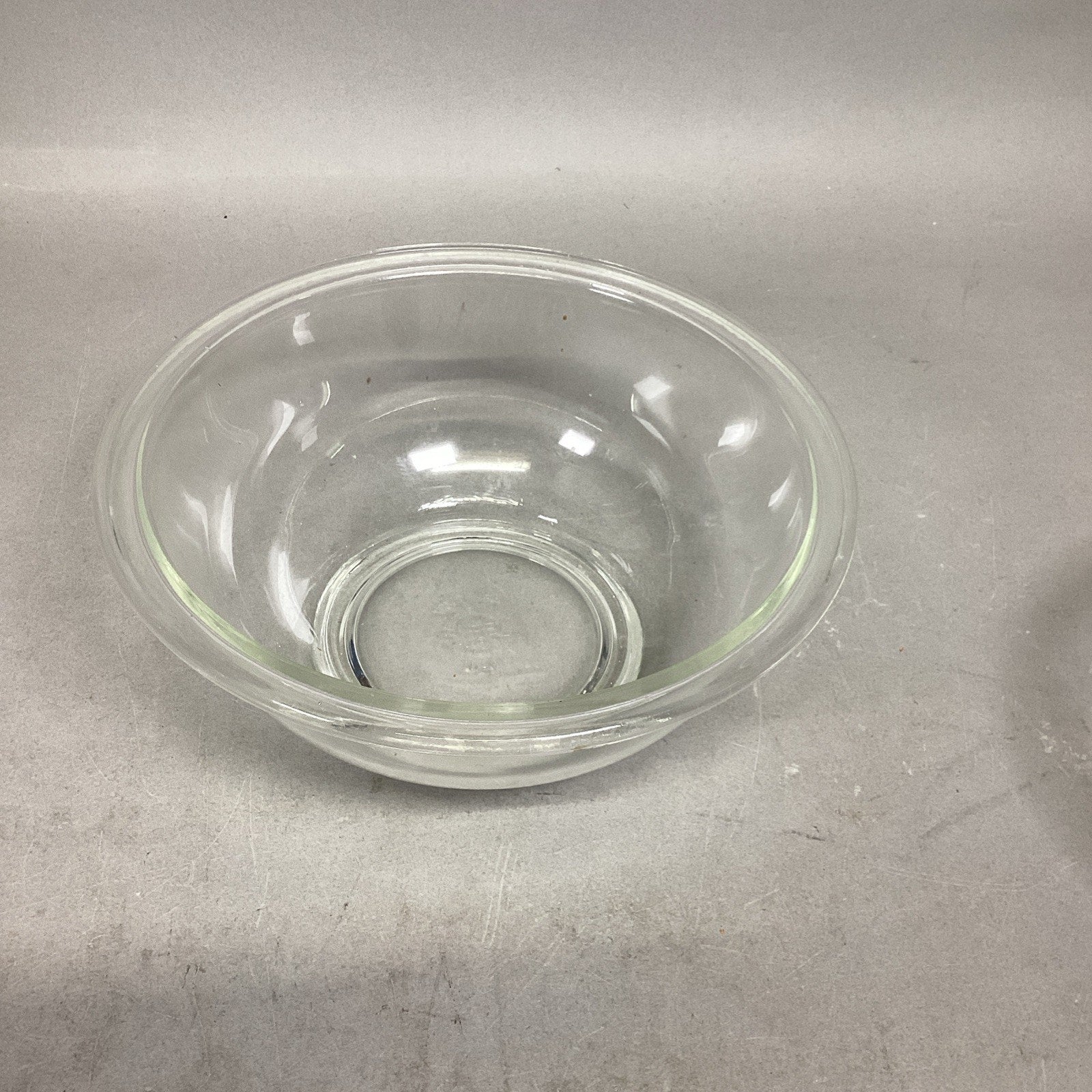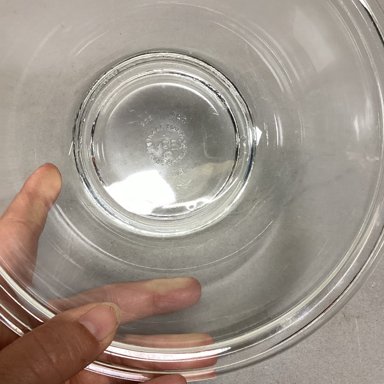 Set Of 2 Glass Pyrex-R Nesting Mixing Bowls Set - 1 QT & 1.5 QT. In good condition overall I didn’t notice any cracks or chips in the glass.