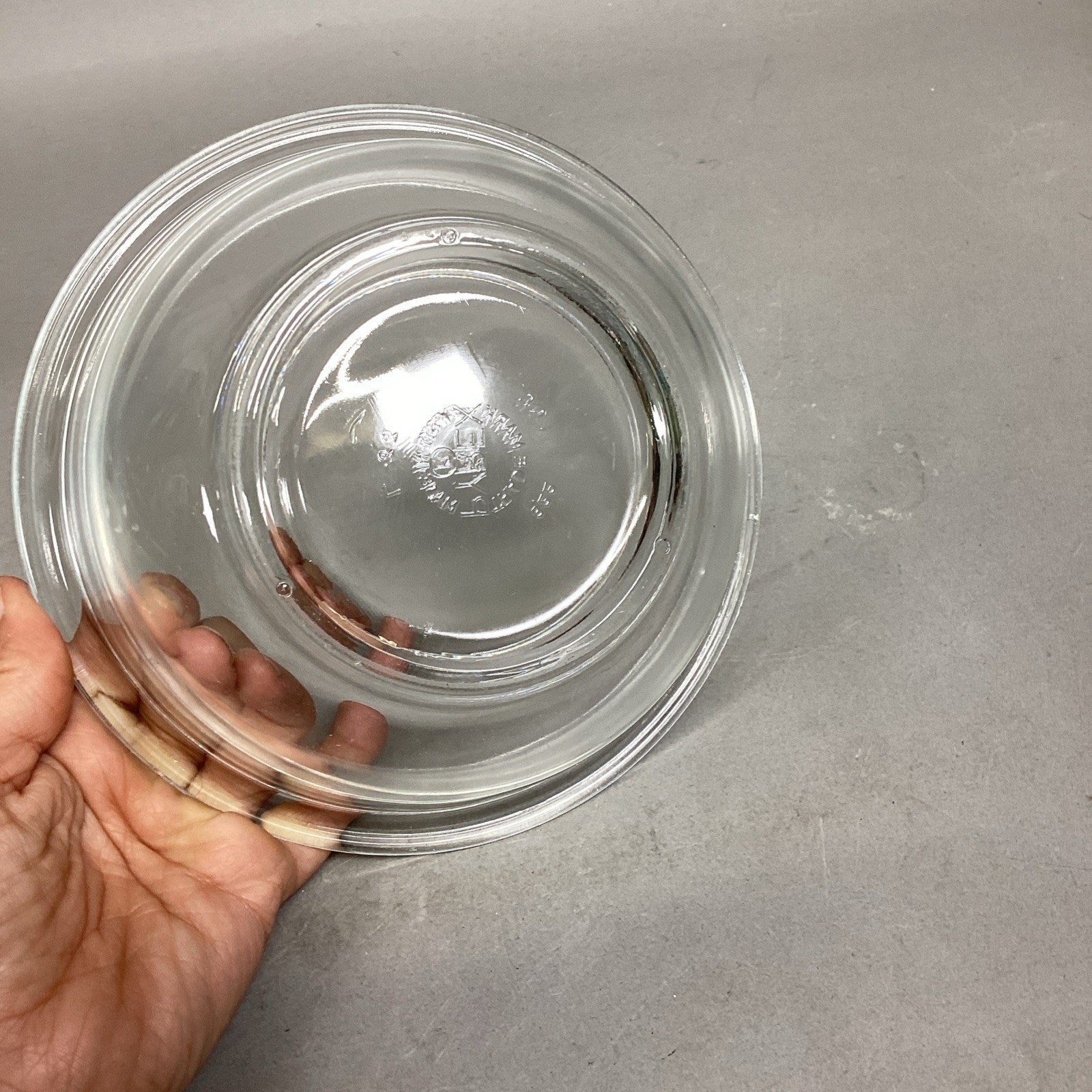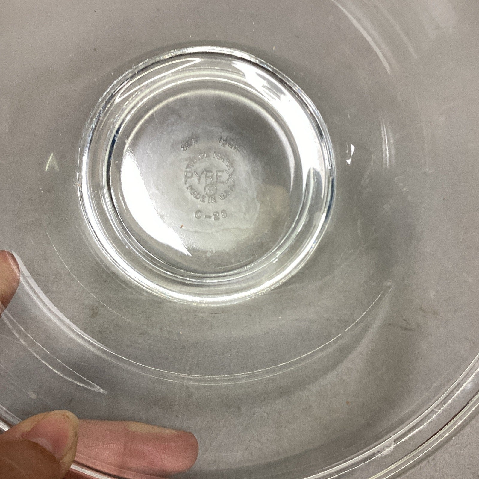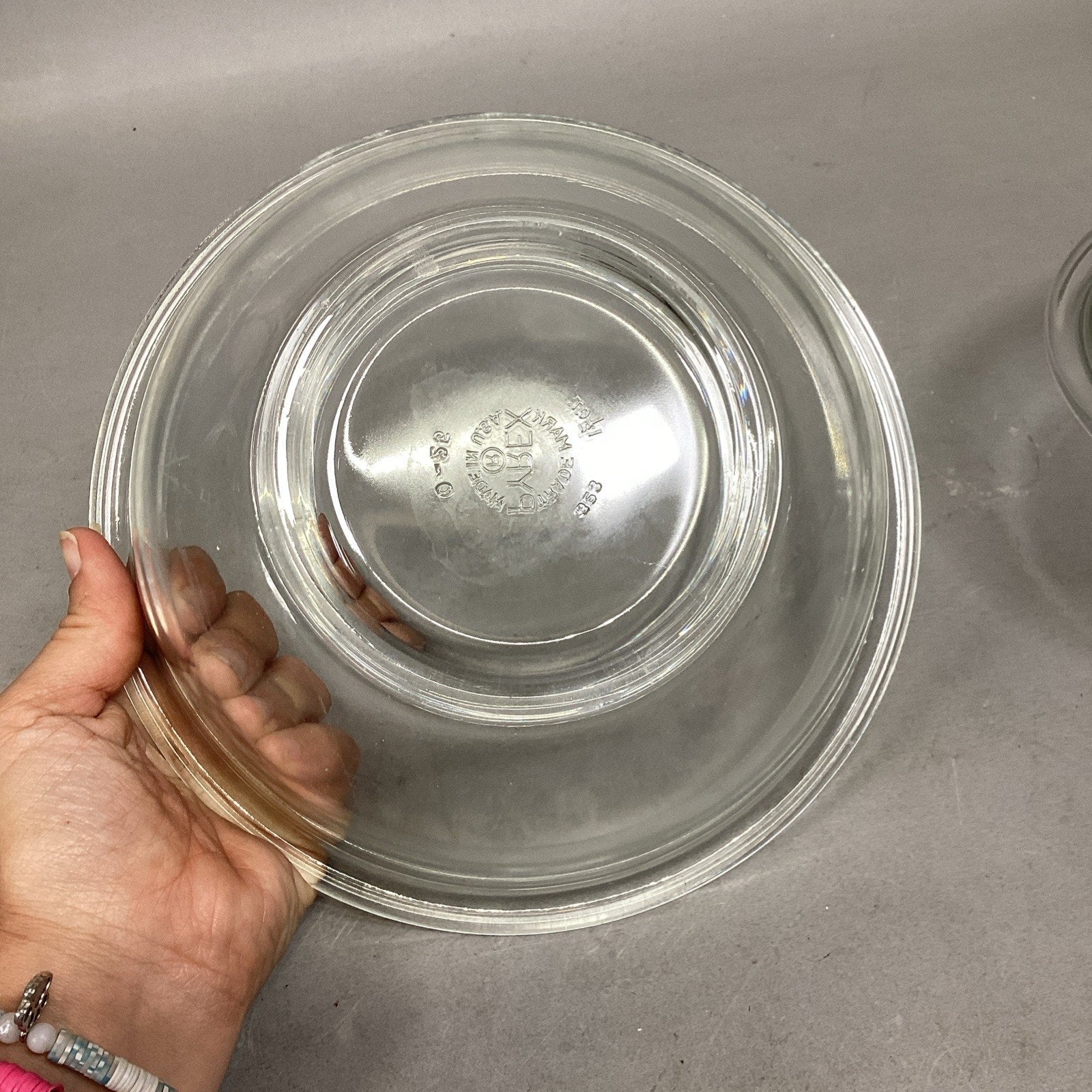 Set Of 2 Glass Pyrex-R Nesting Mixing Bowls Set - 1 QT & 1.5 QT. In good condition overall I didn’t notice any cracks or chips in the glass.