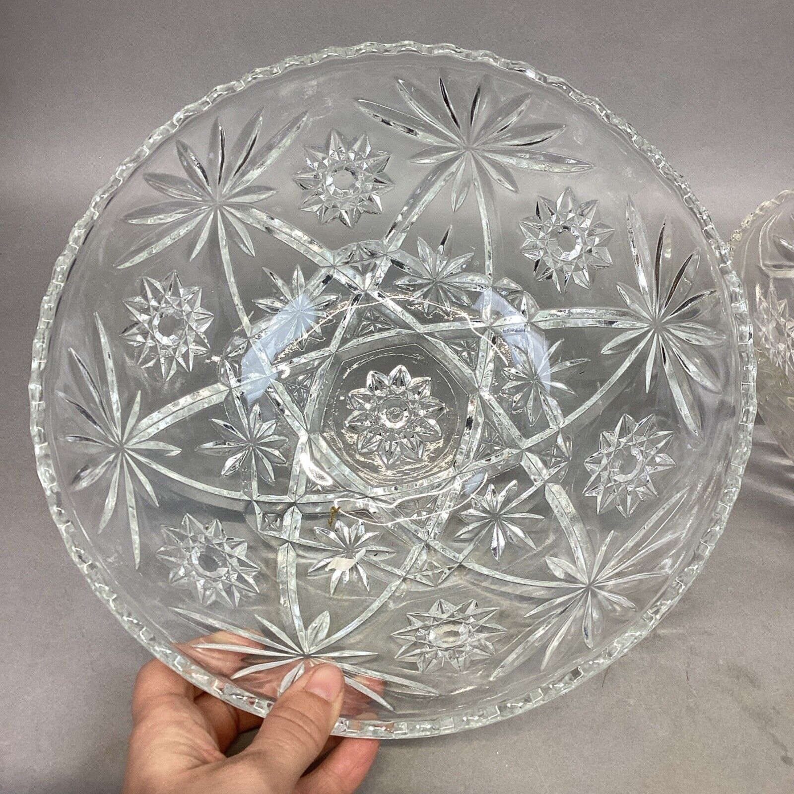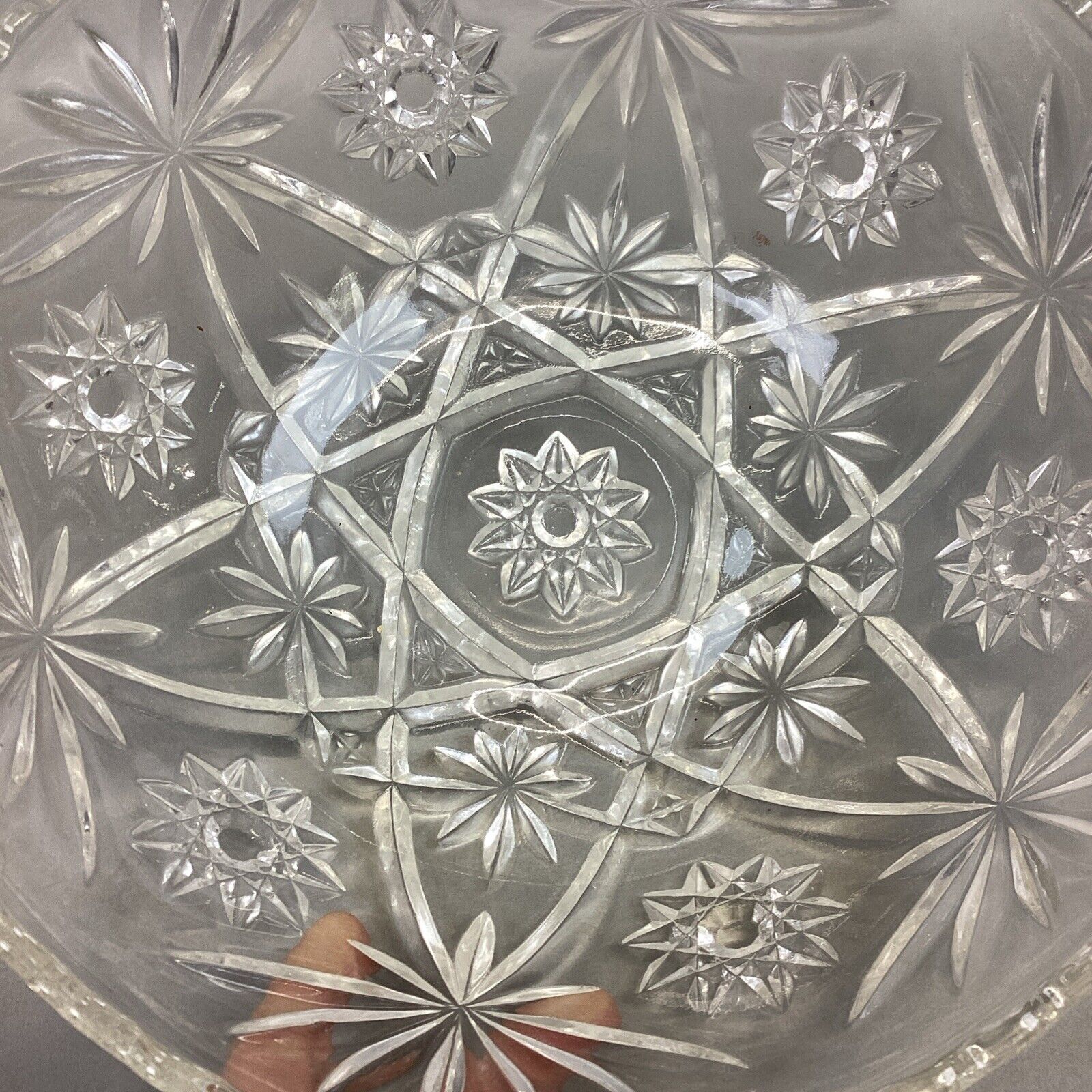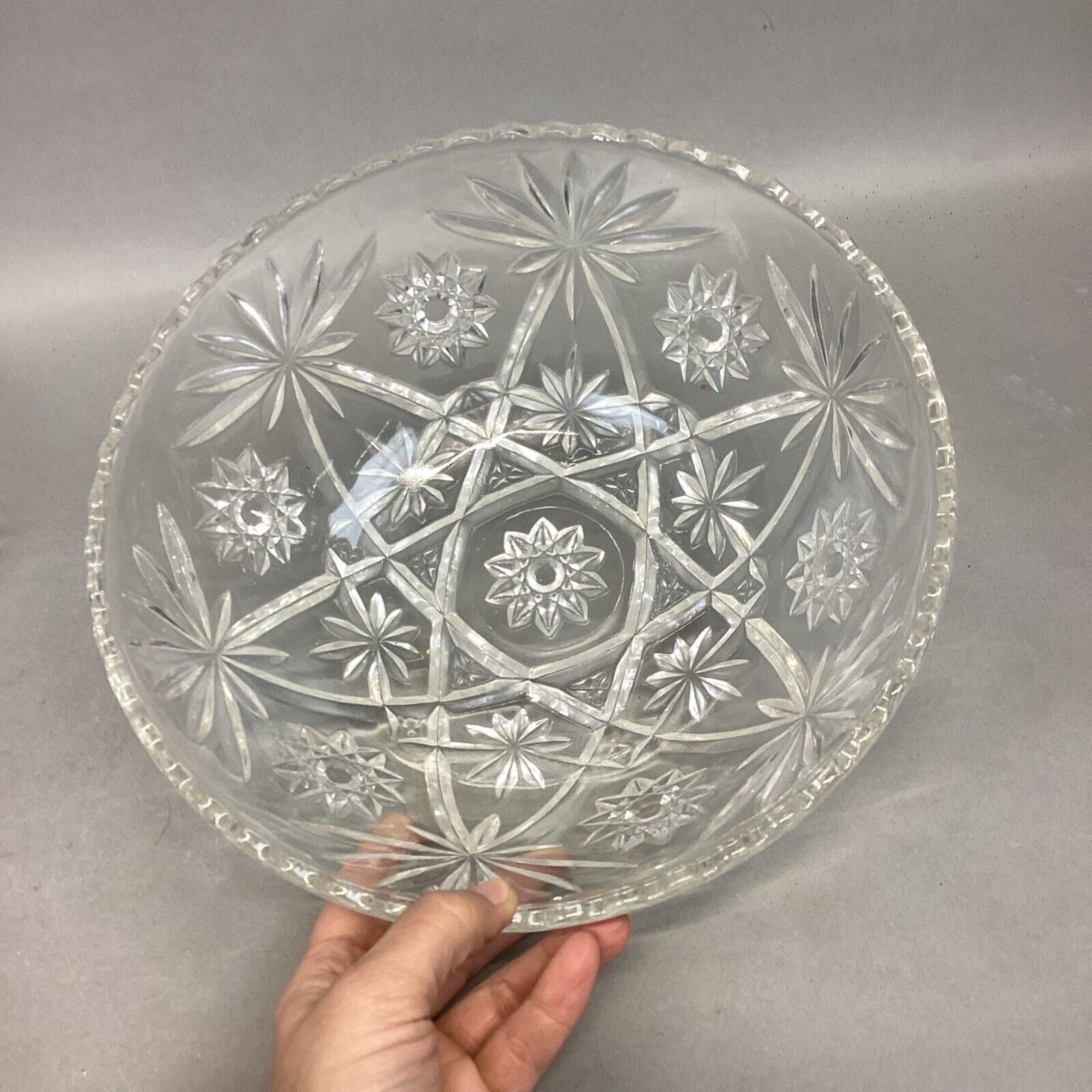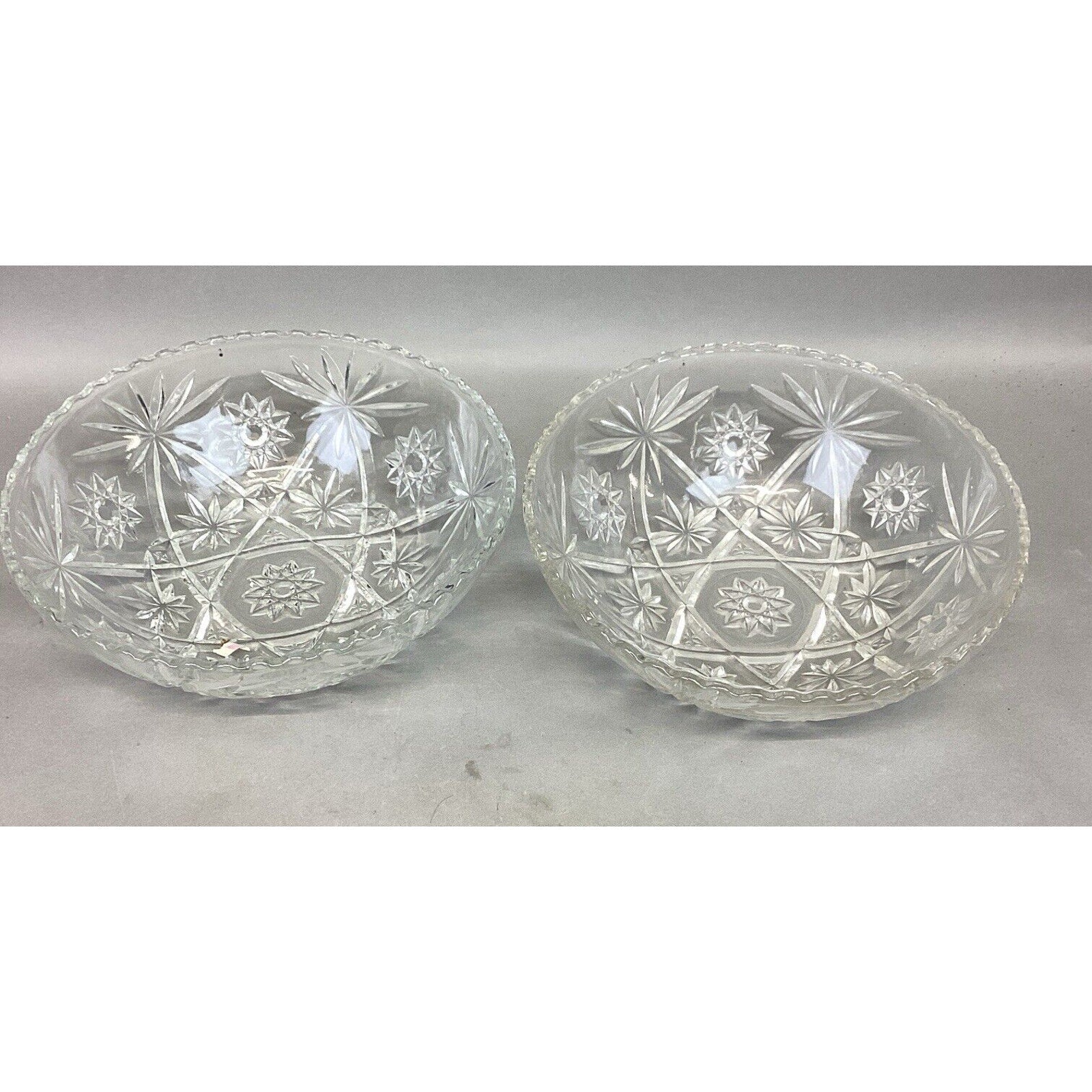 Set Of 2 Vintage Anchor Hocking Star Of David Glass Salad Fruit Bowl.
