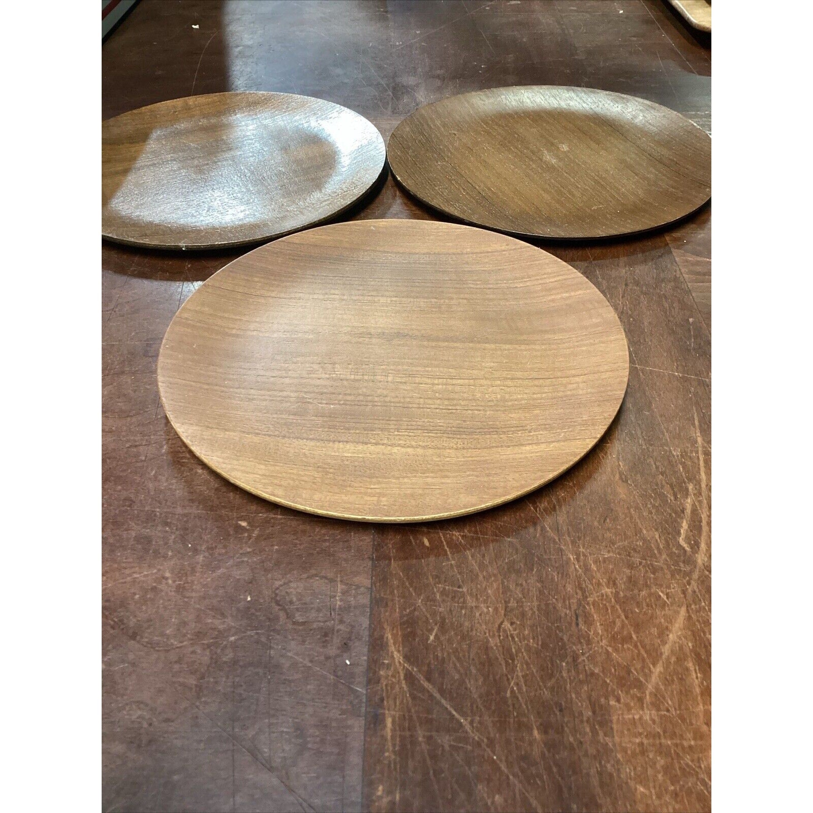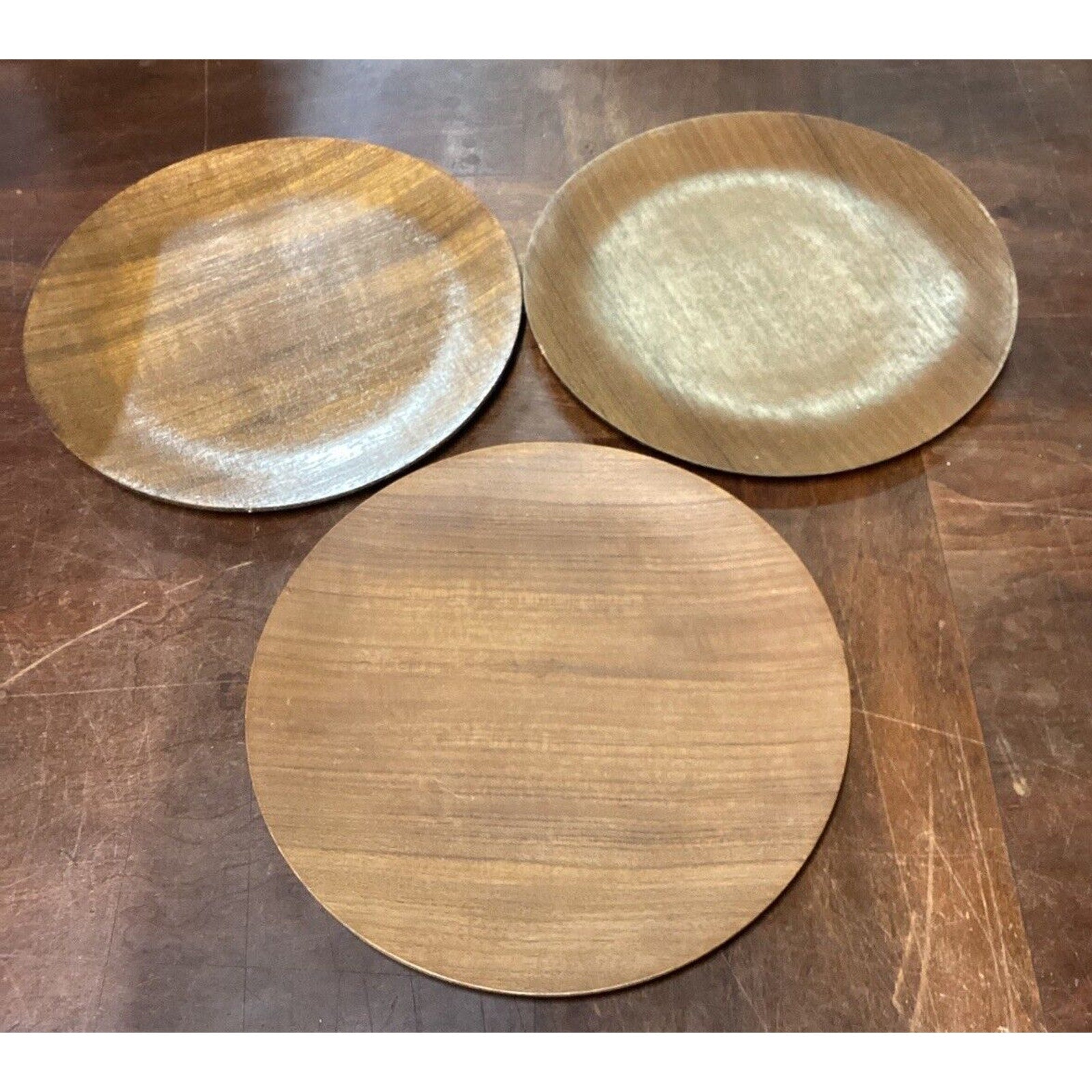 Set Of 3 Coronet Genuine Laminated Thailand Teakwood Plates - 8”D