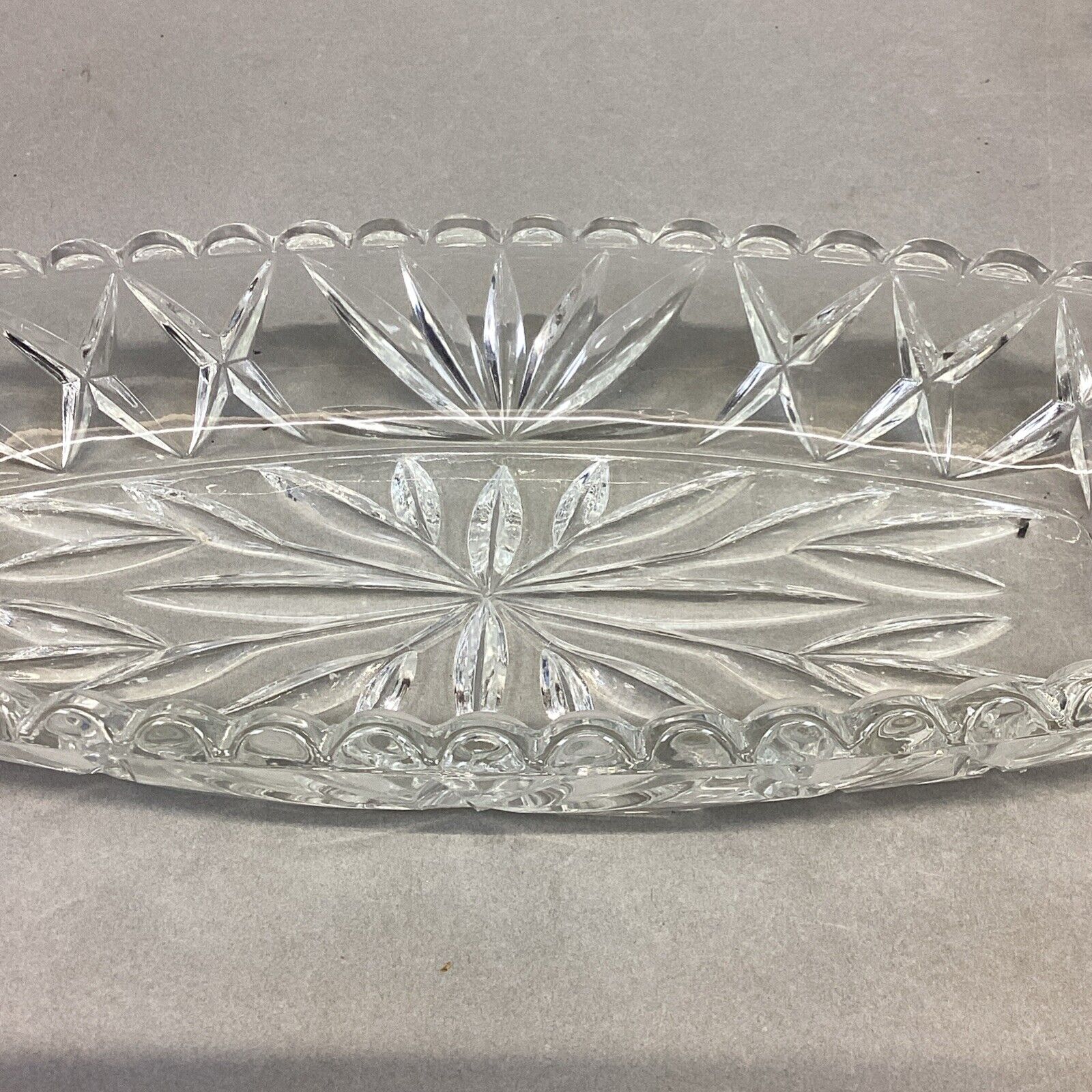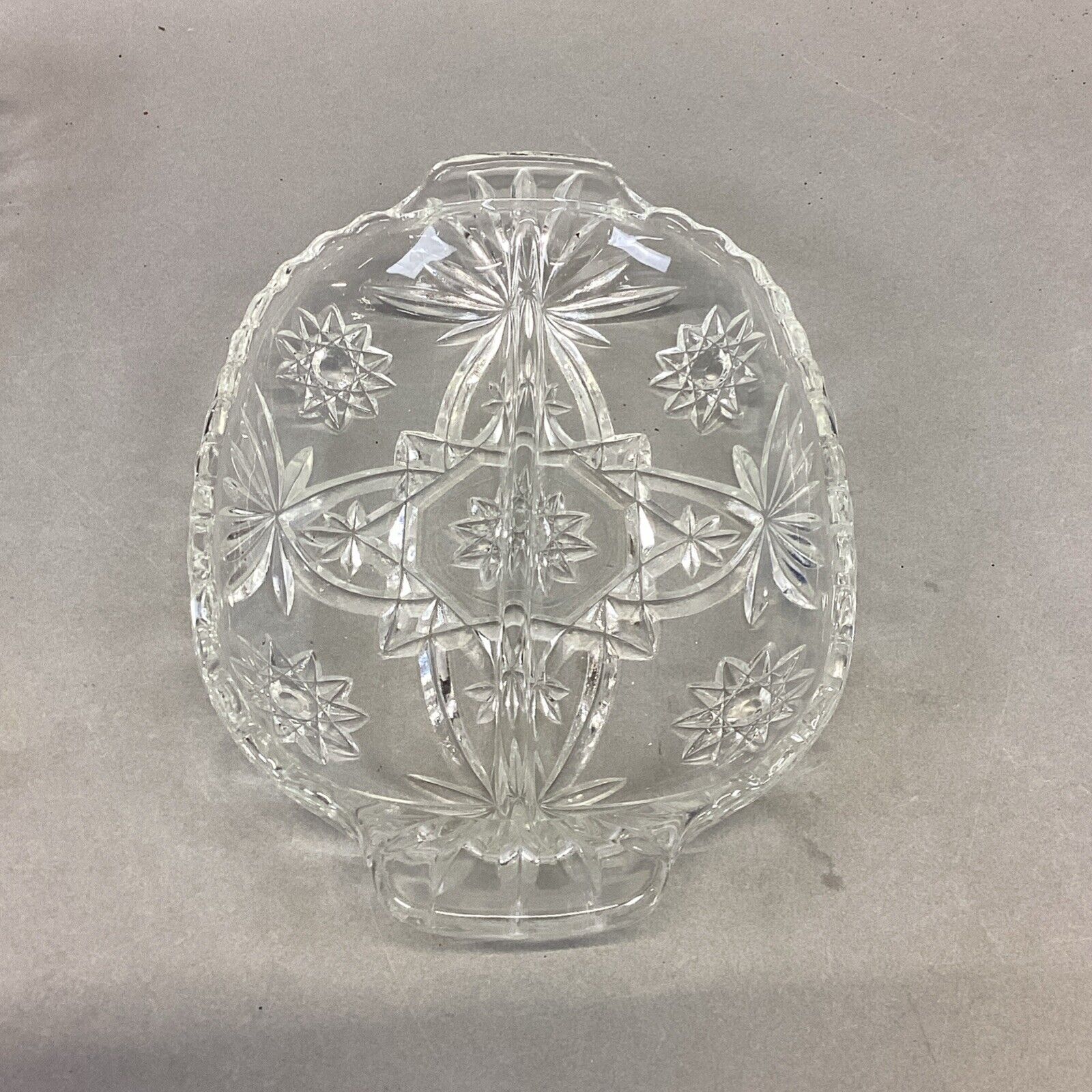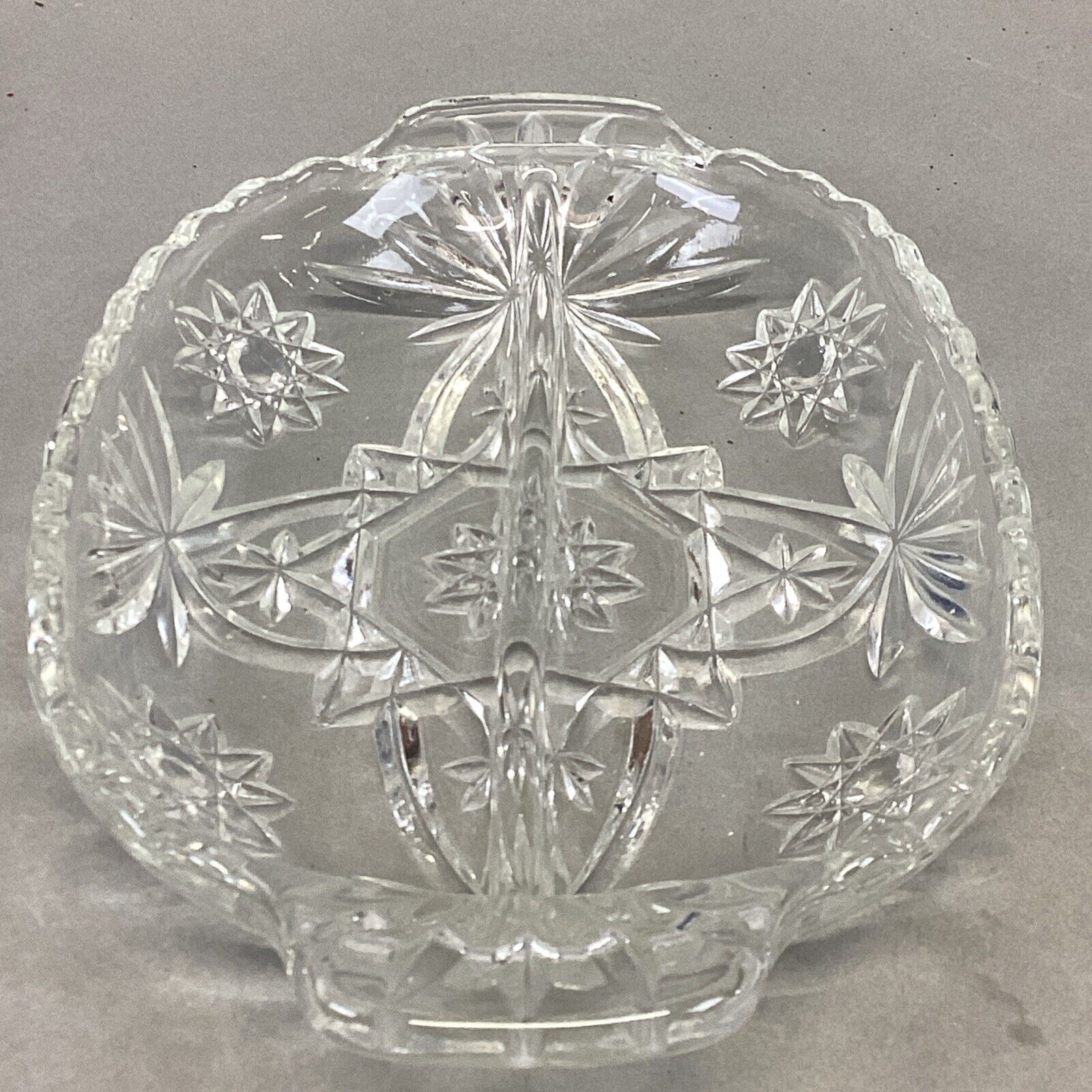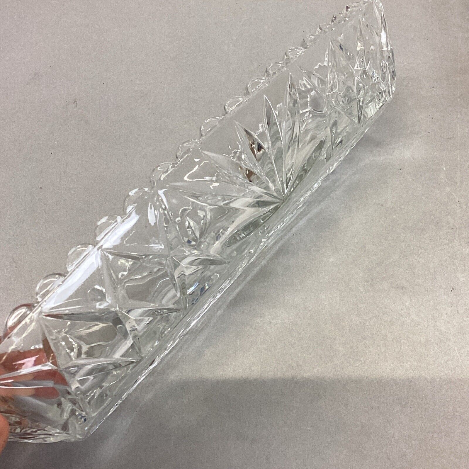 3. Has 3 compartments. Has a few scratches, nicks and stains in the glass. Measures 1.5”Hx9.5”Lx7.5”W