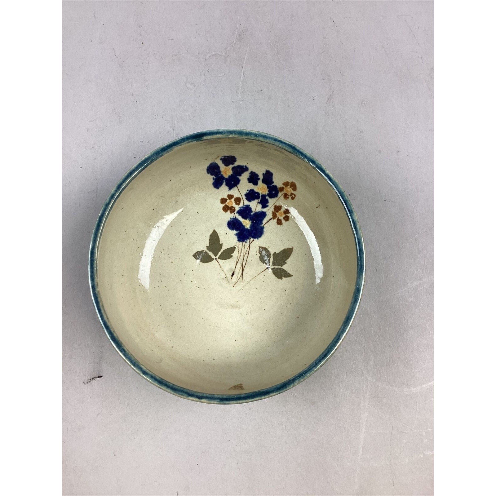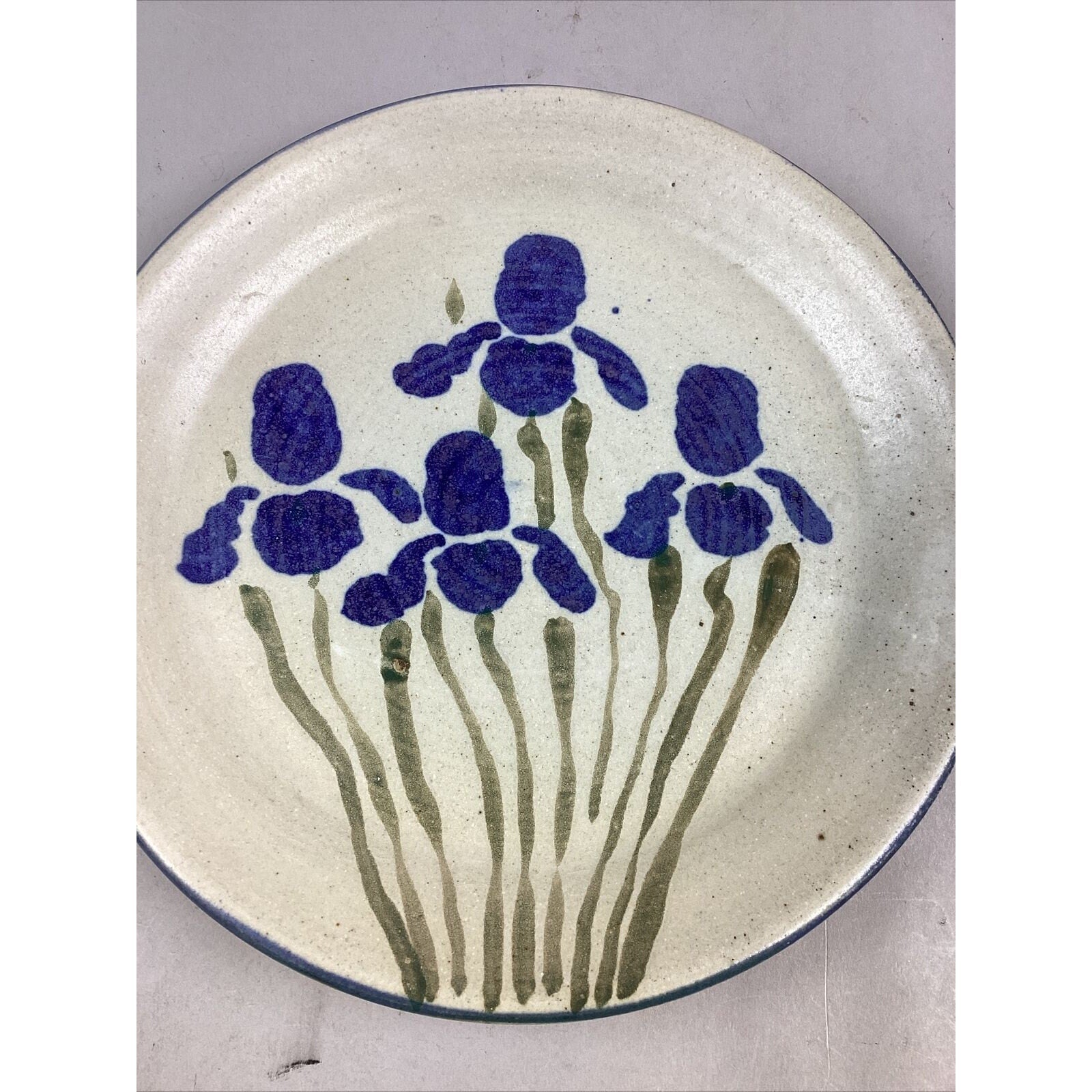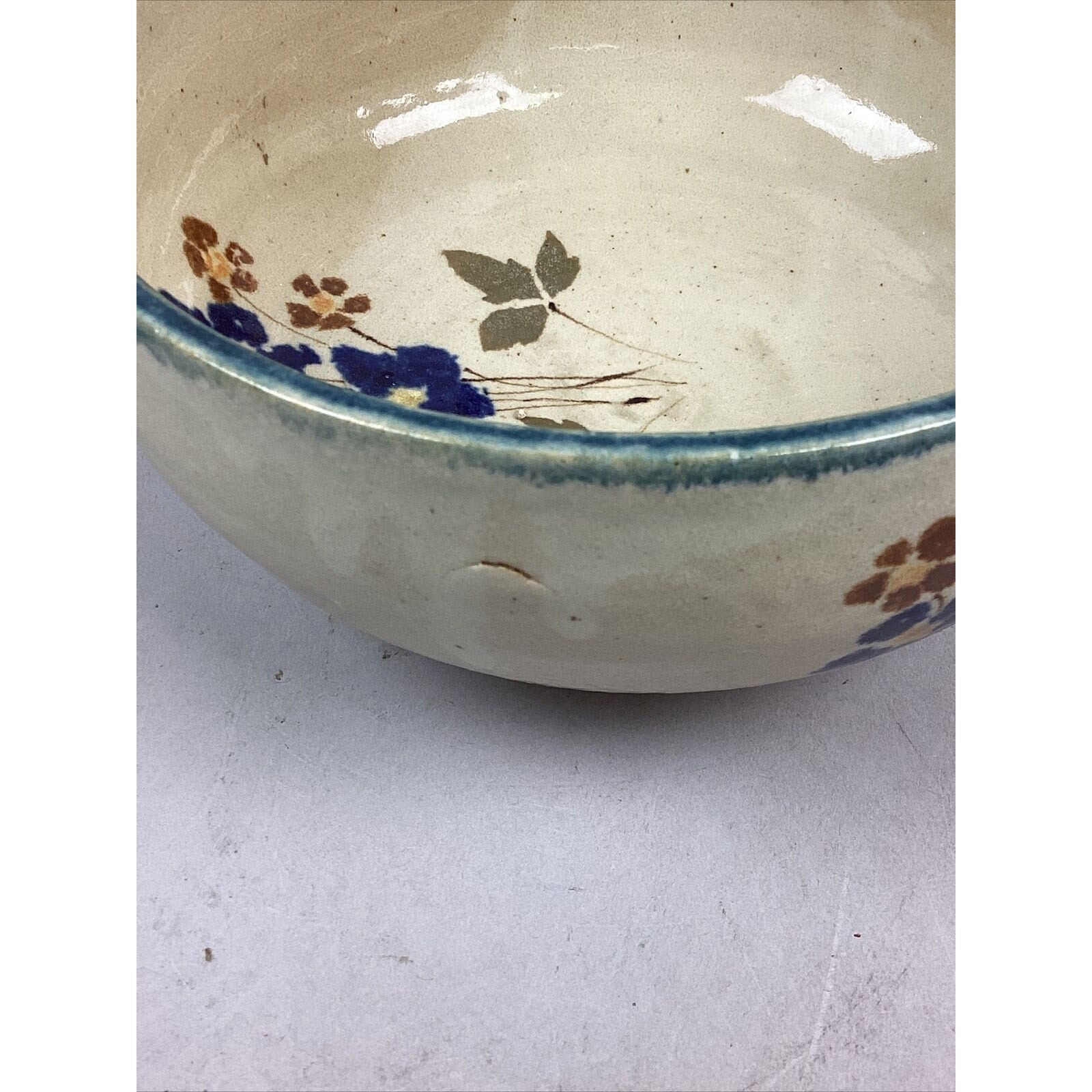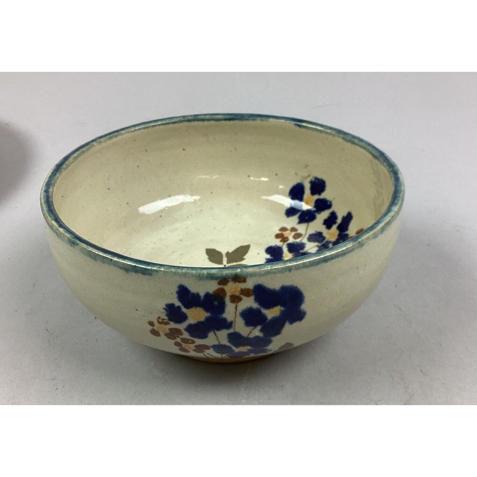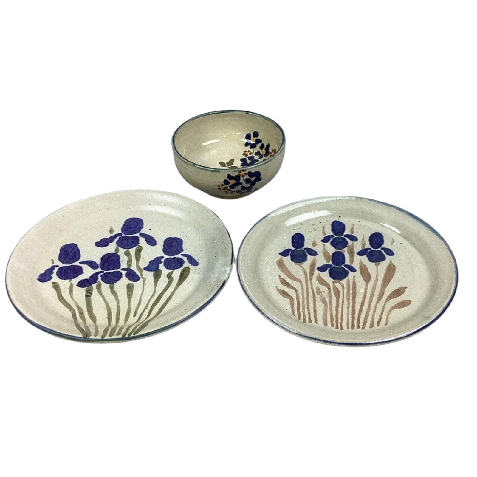 Set Of 3 Handmade Art Pottery Floral Bowl And 2 Plates