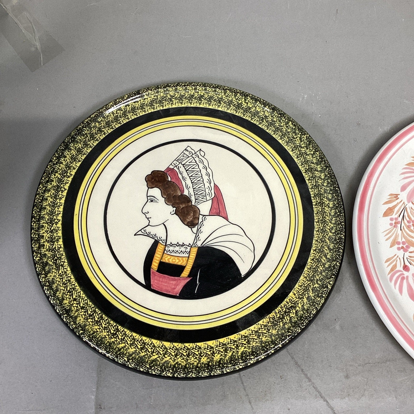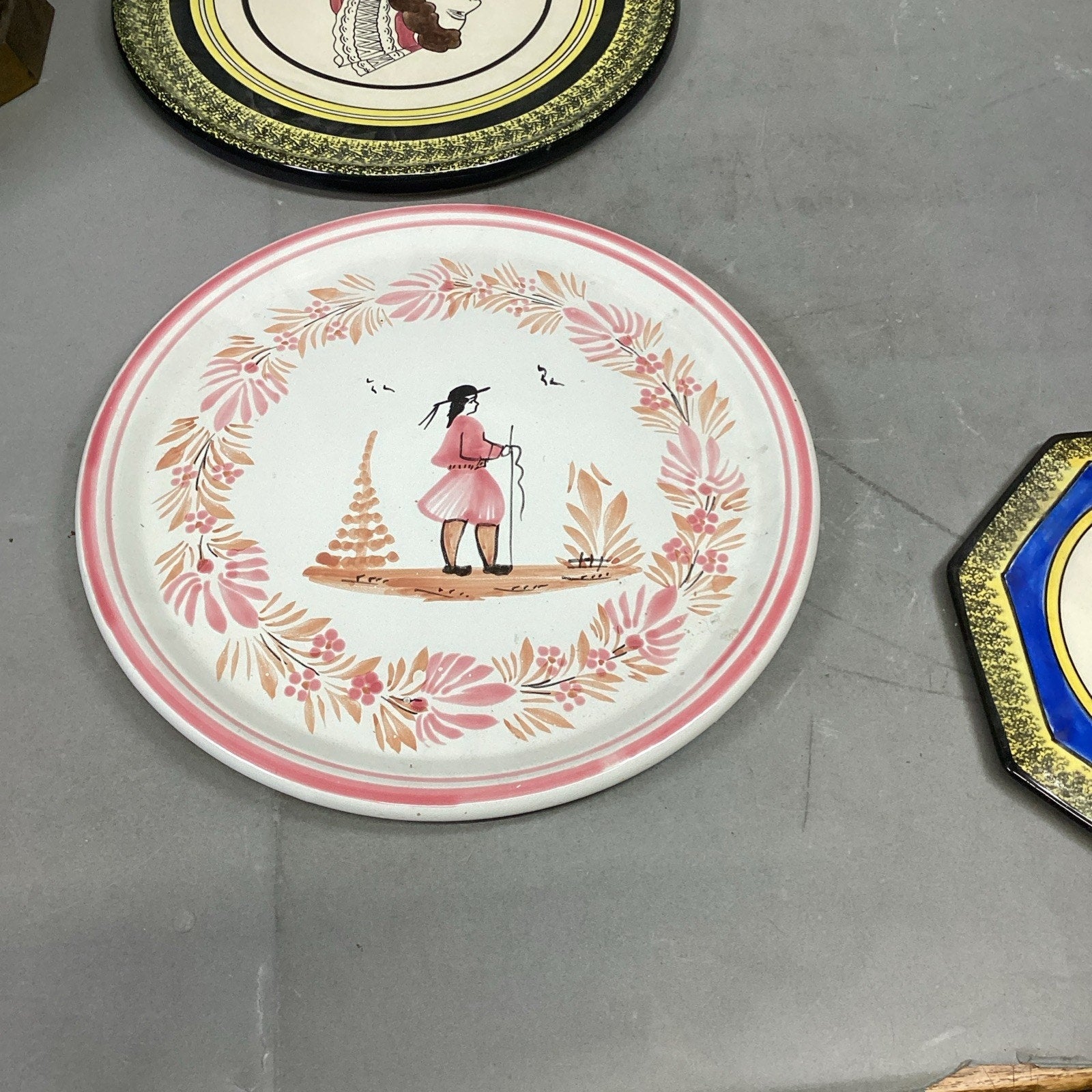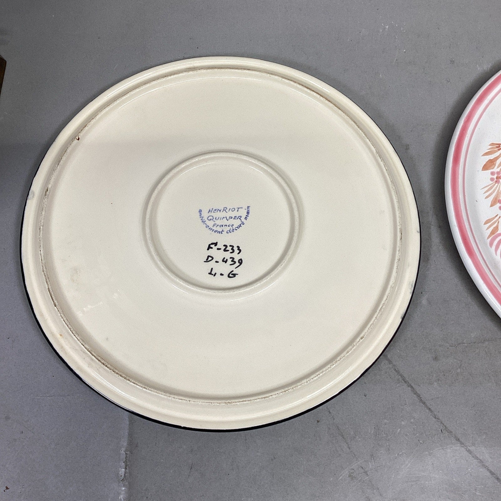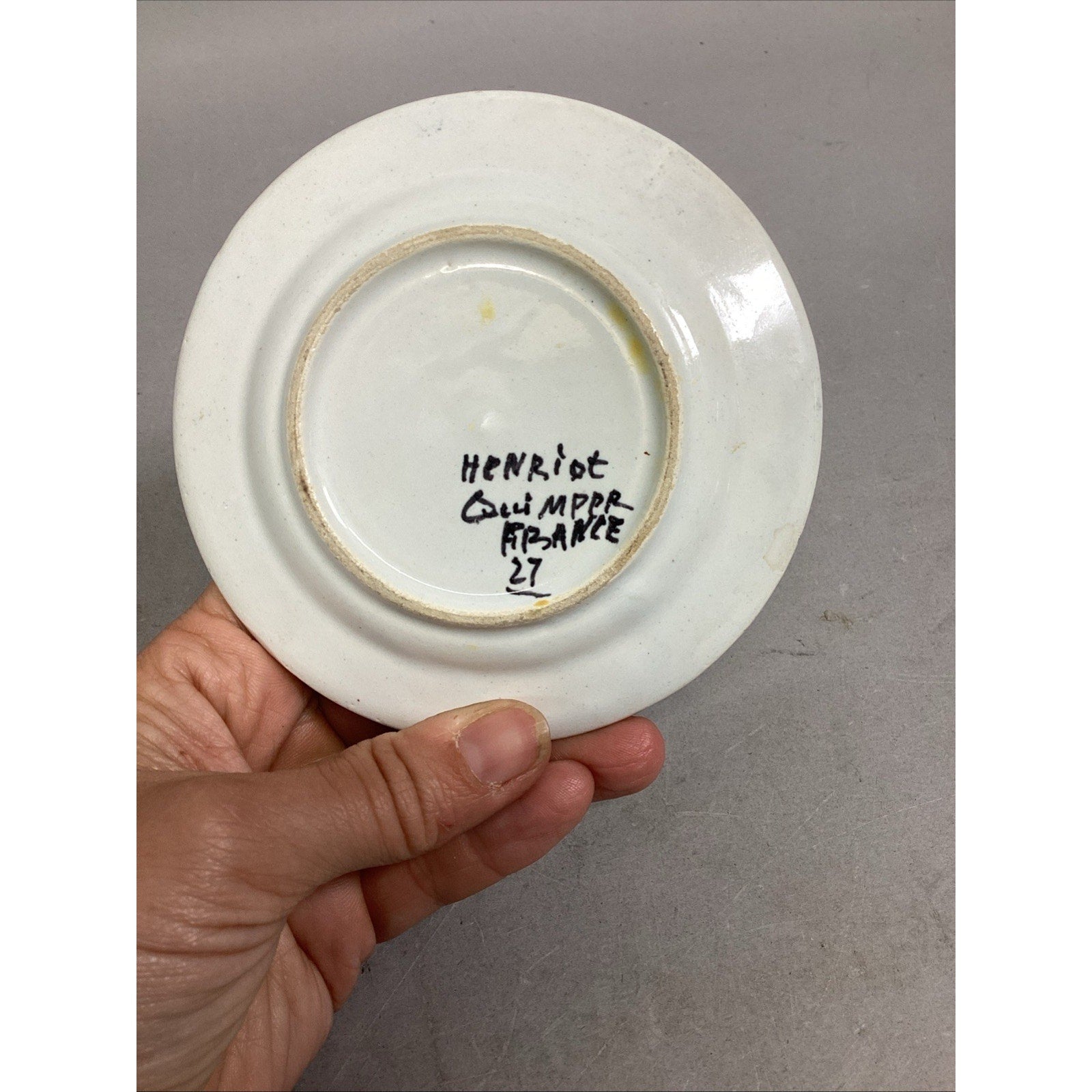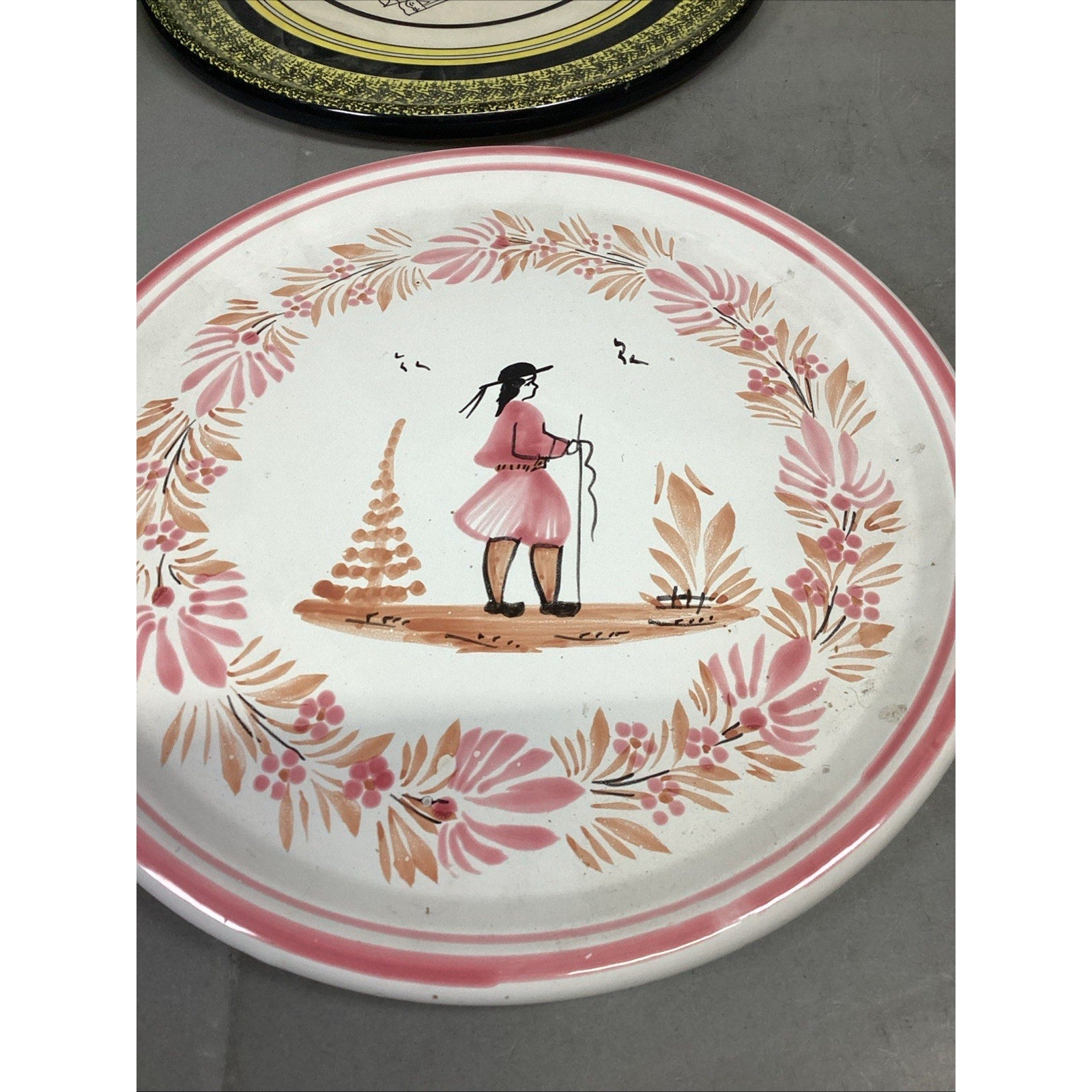 Set Of 3 Henriot Quimper Ceramic Decorative Wall Plates W/ 1 Coaster - France
