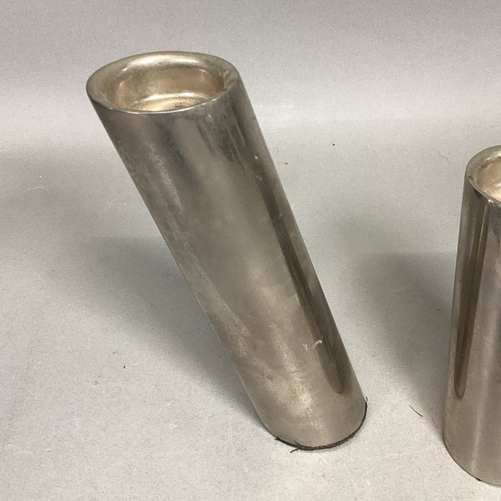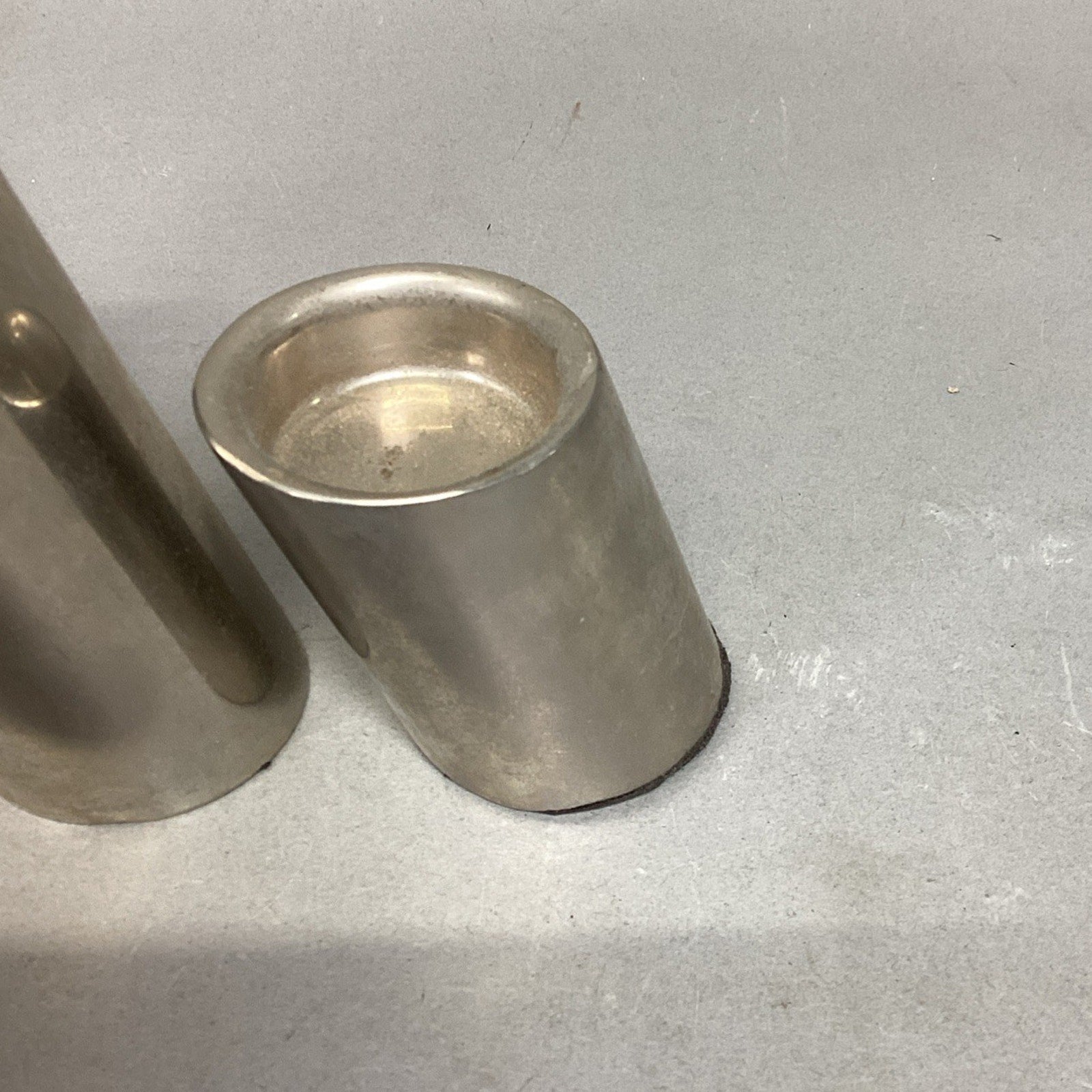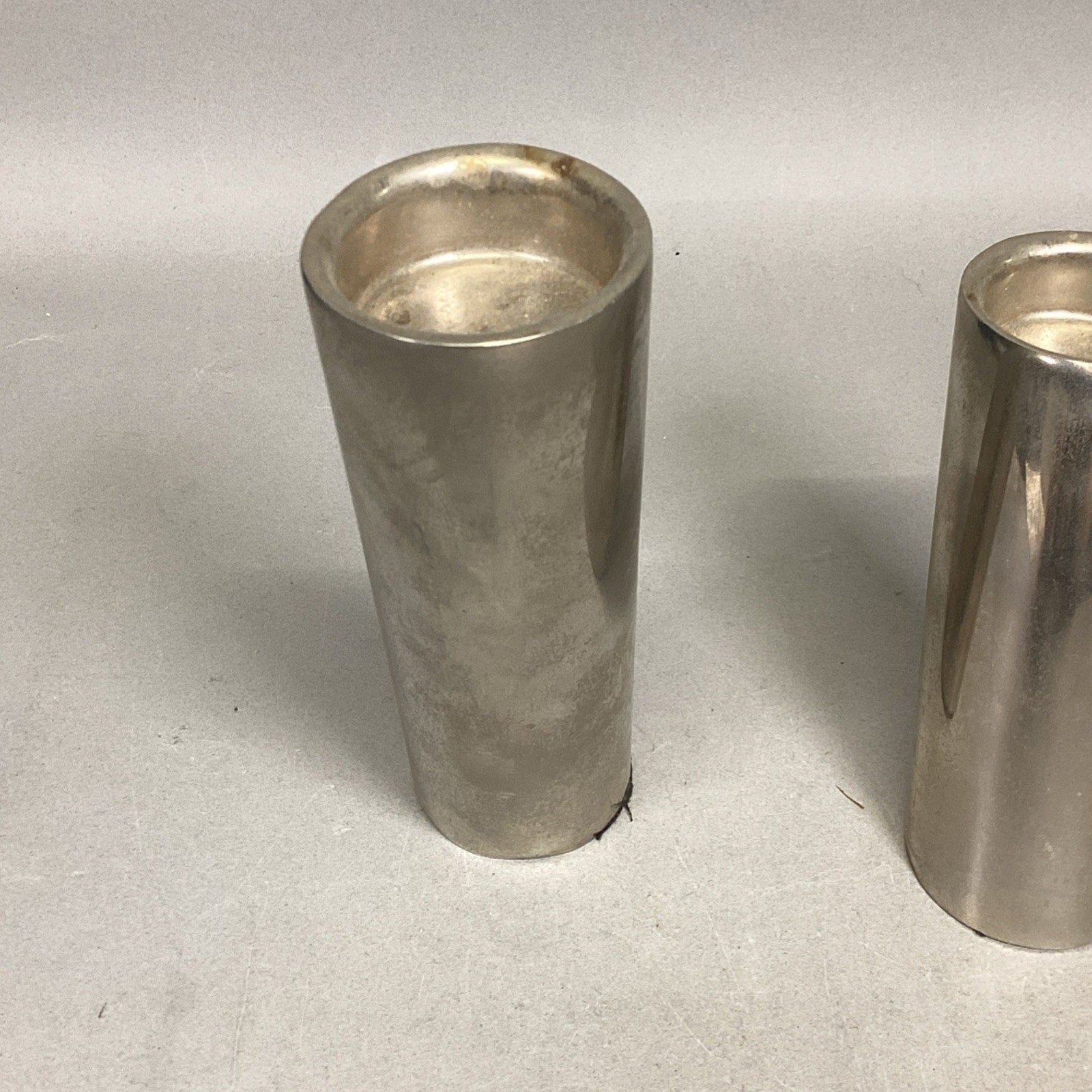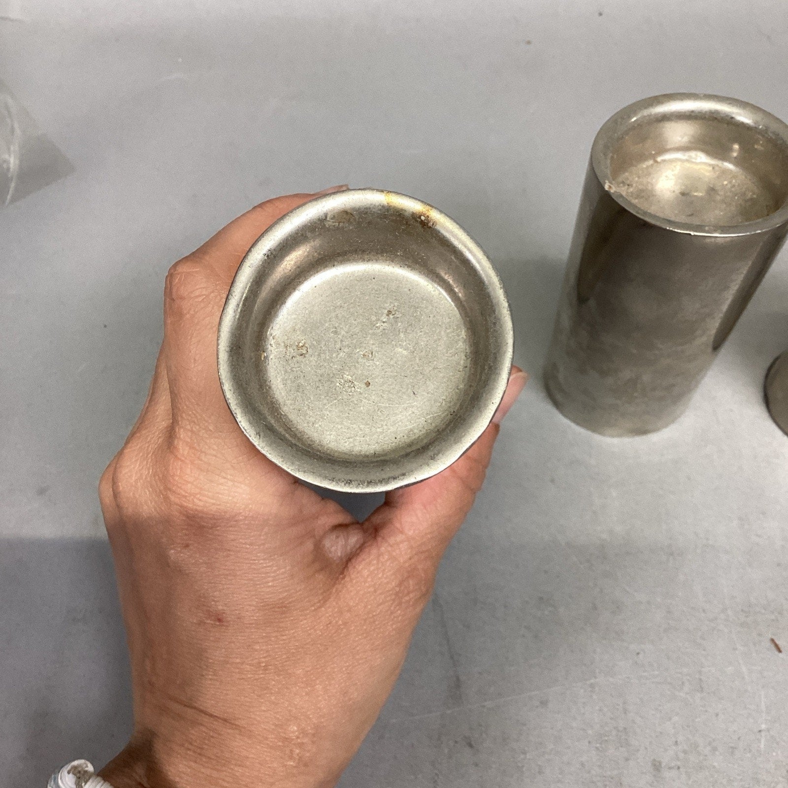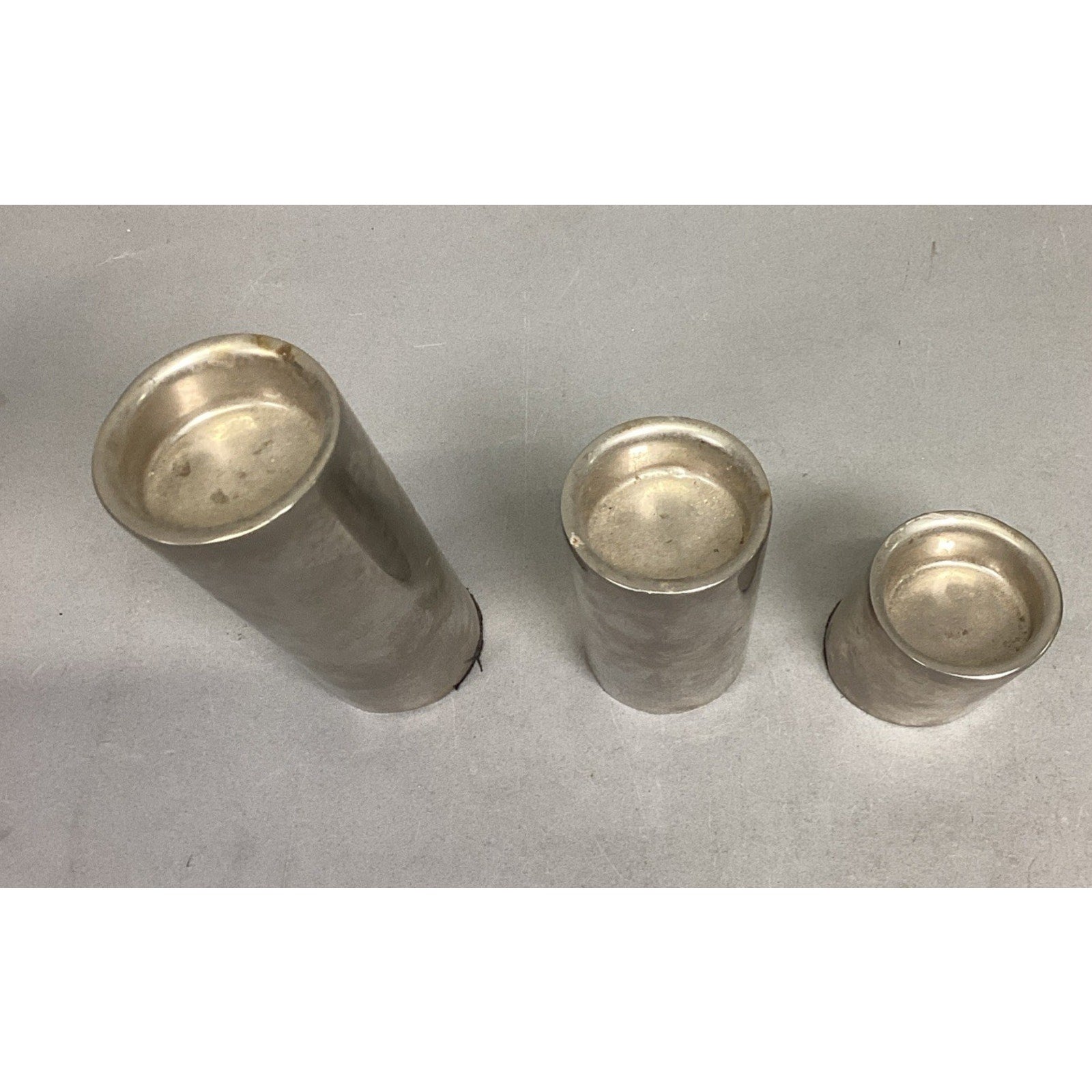 Set Of 3 Silver Plated Candle Holders - 7.5, 5, & 2.75”H. In used condition. Could use a good cleaning and polishing. These weigh in at 6.7 pounds as is.